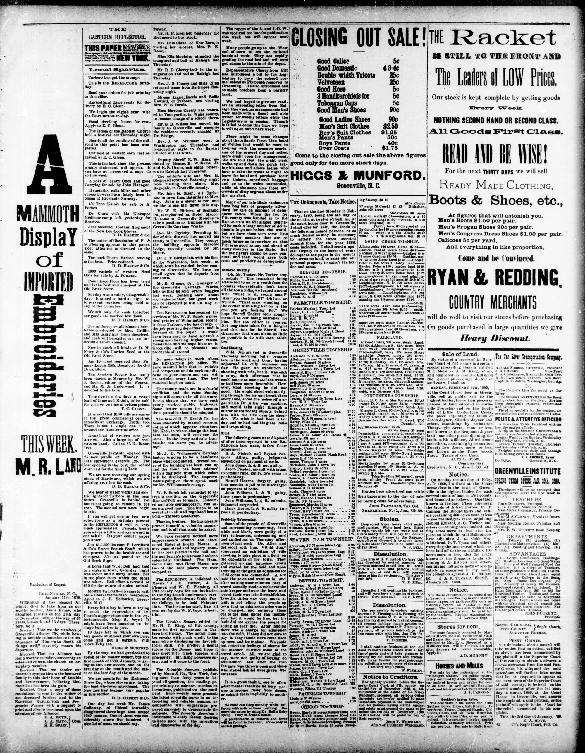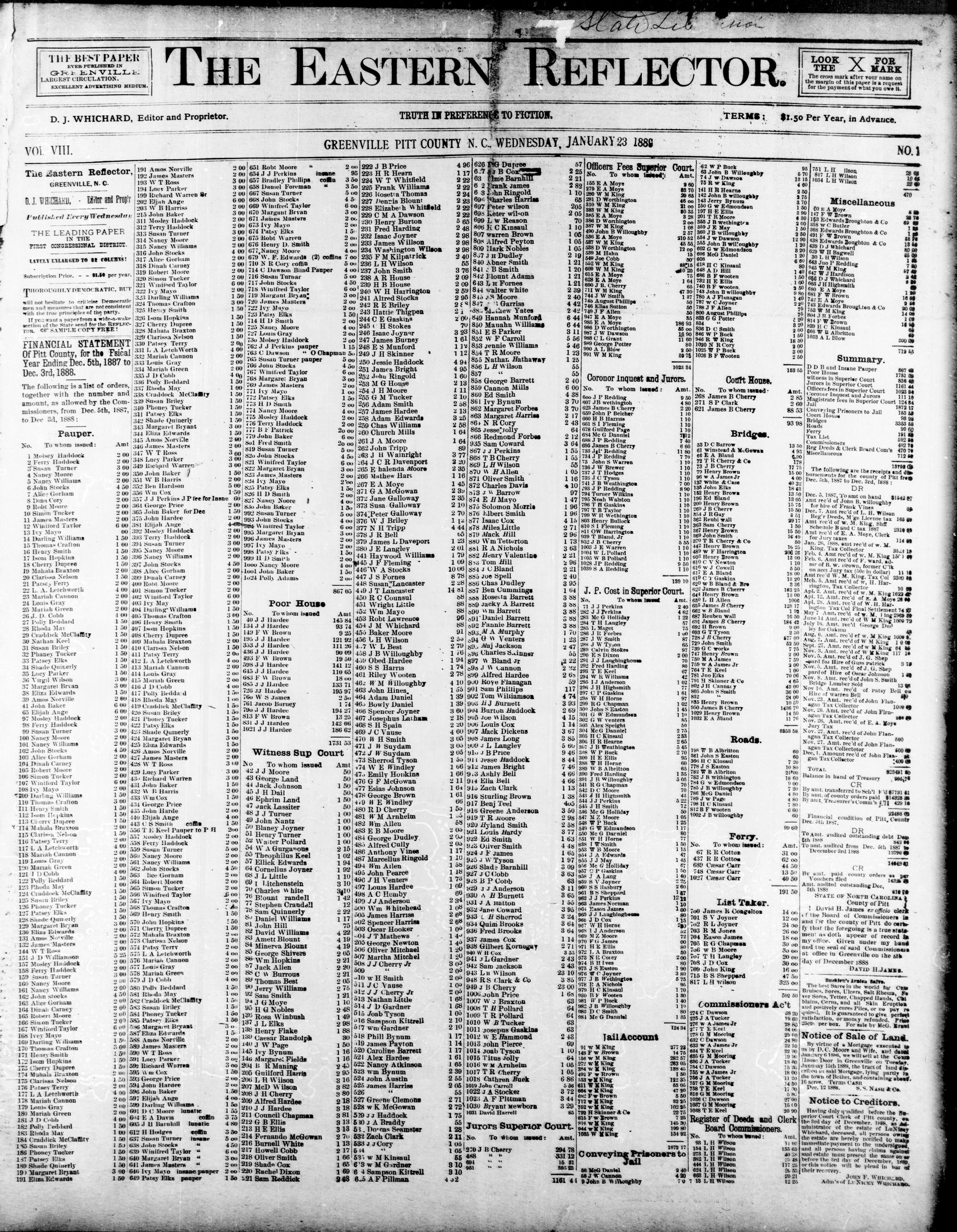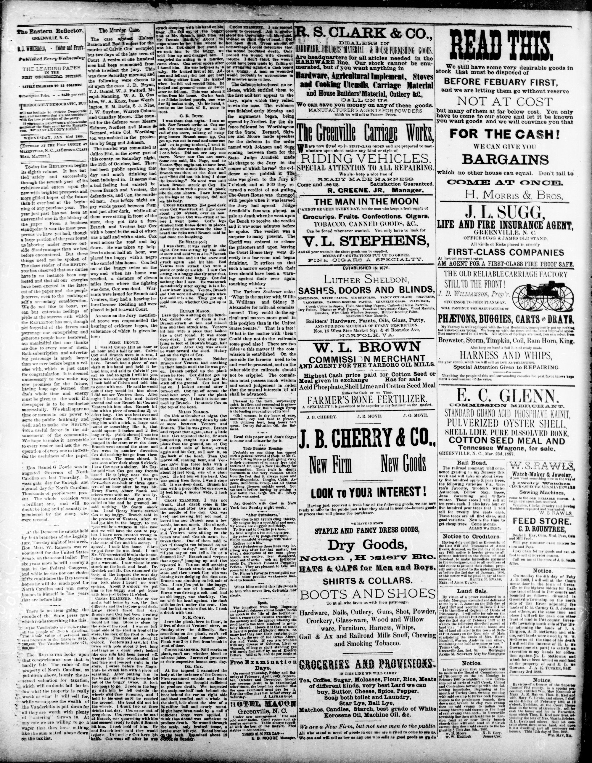 GREENVILLE PITT COUNTY N. JANUARY 1888