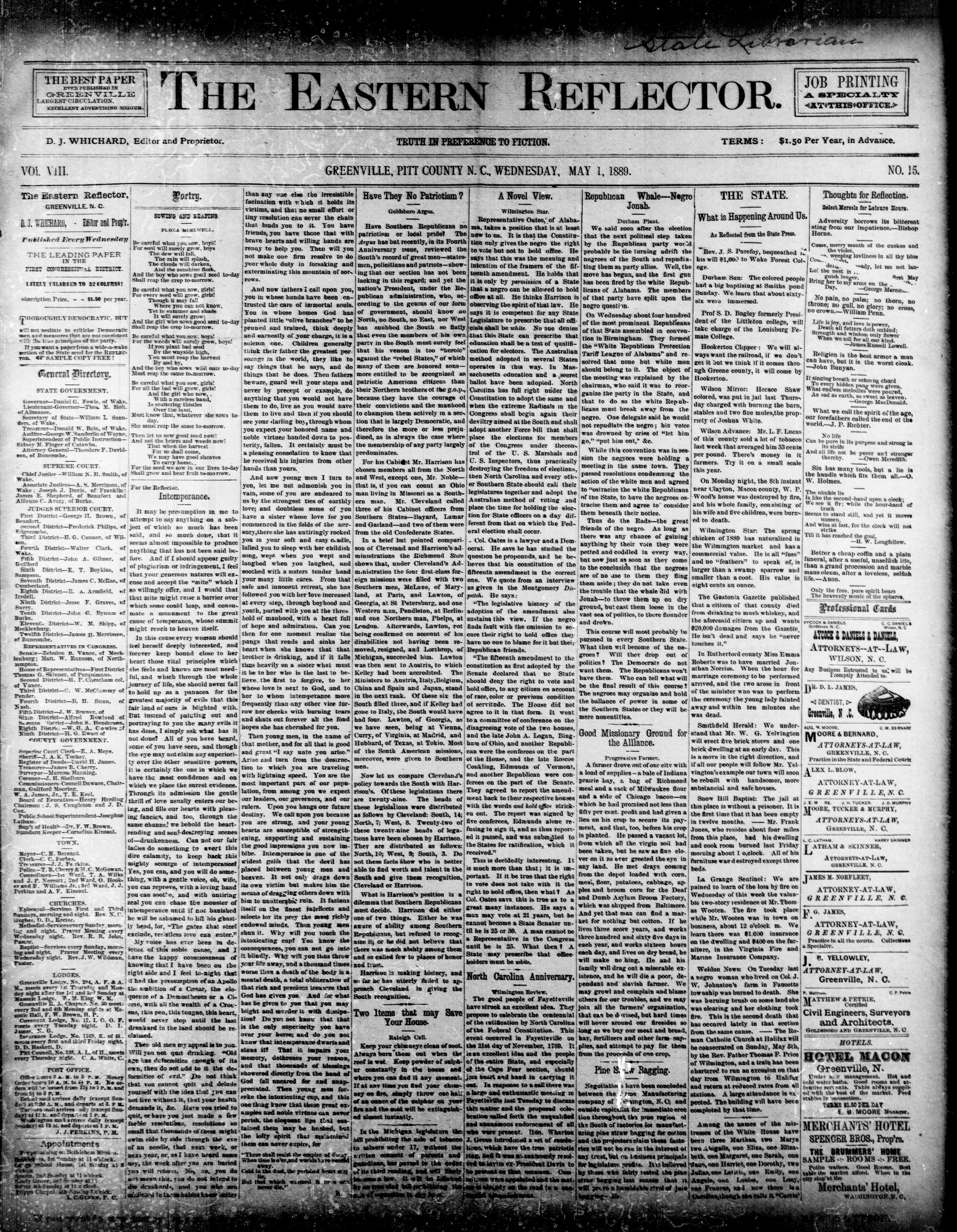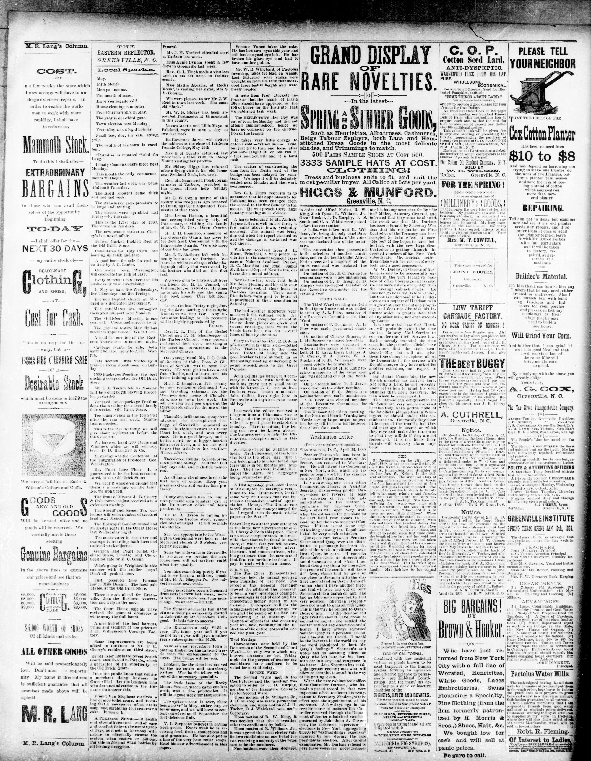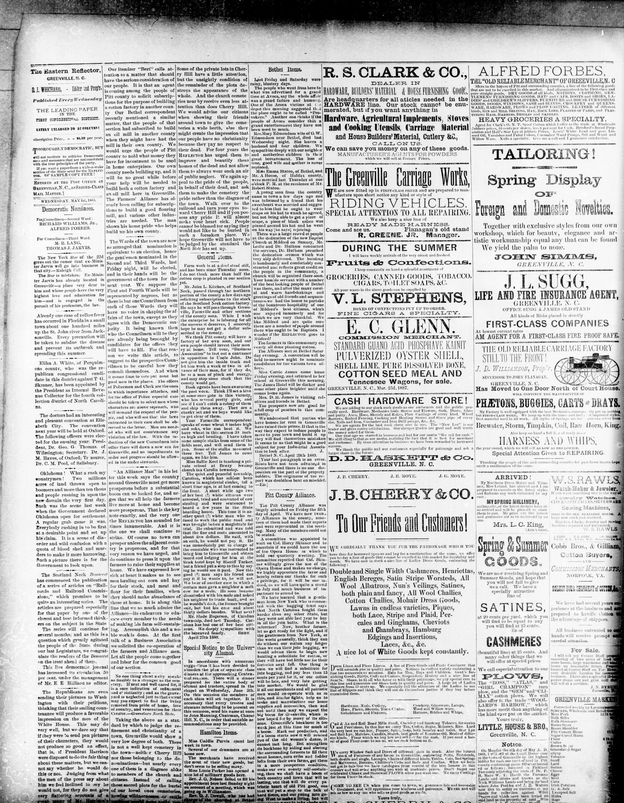 GREENVILLE, PITT COUNTY N. C, WEDNESDAY, MAY 1889.