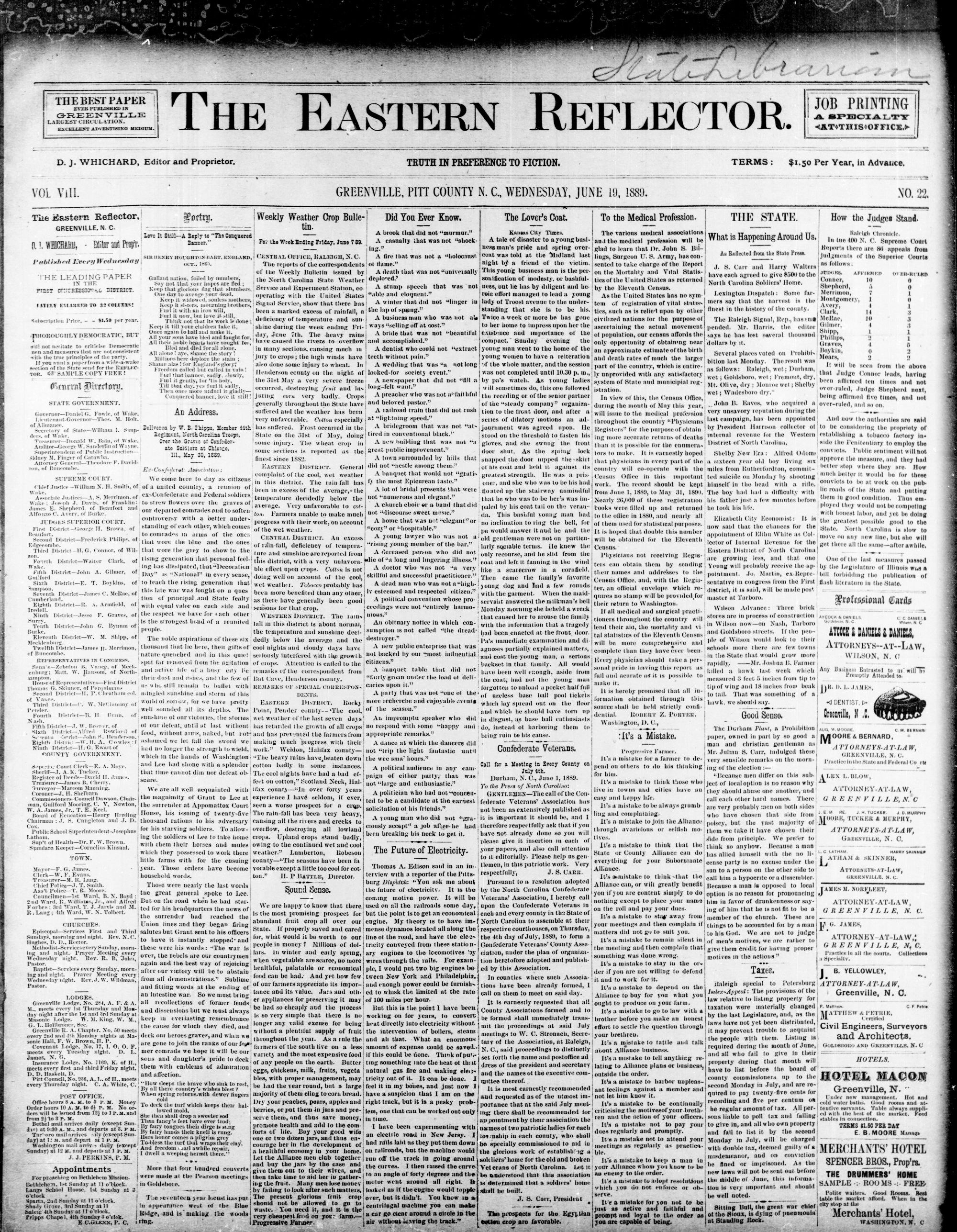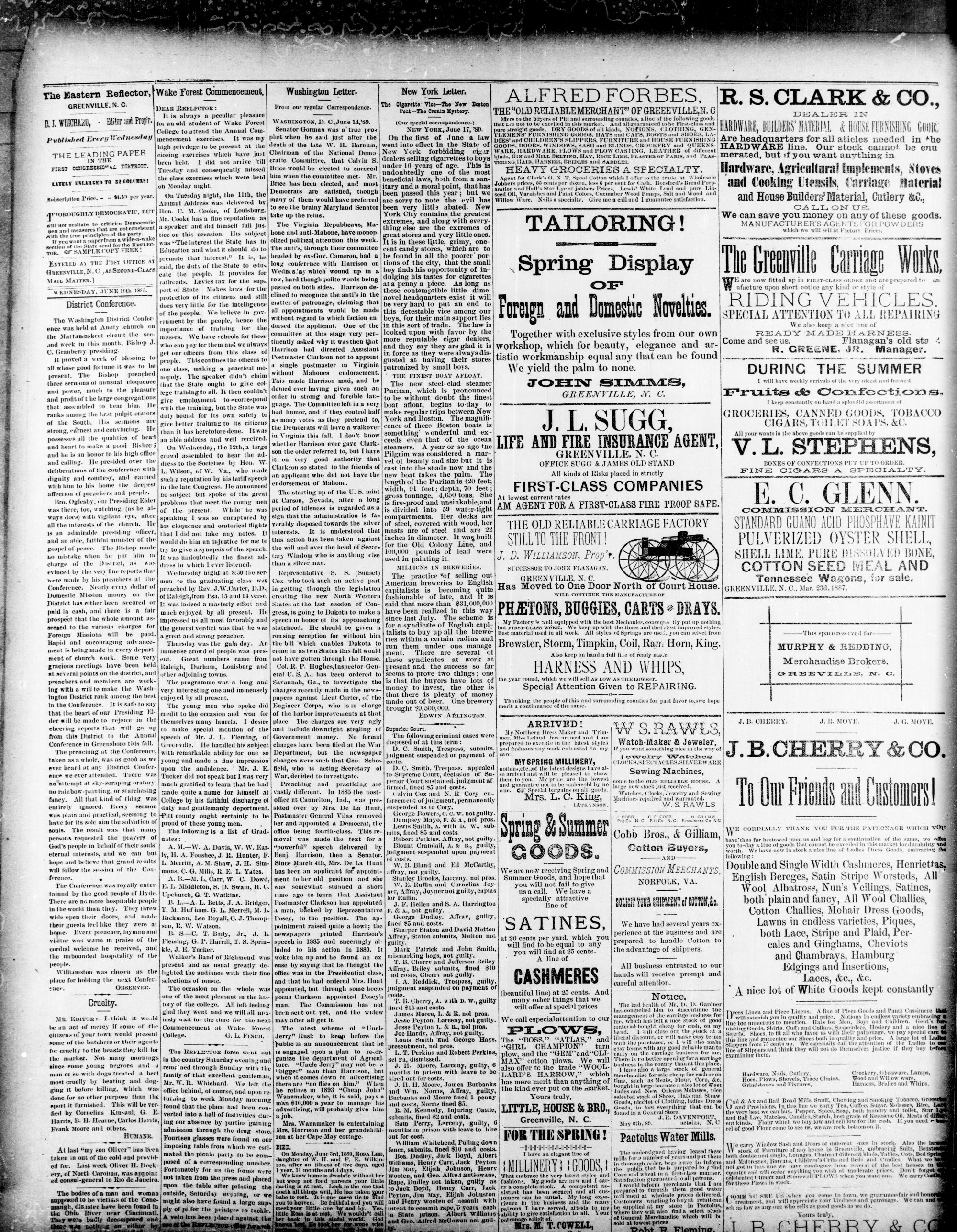 GREENVILLE, PITT COUNTY N. C, WEDNESDAY, JUNE 1889.