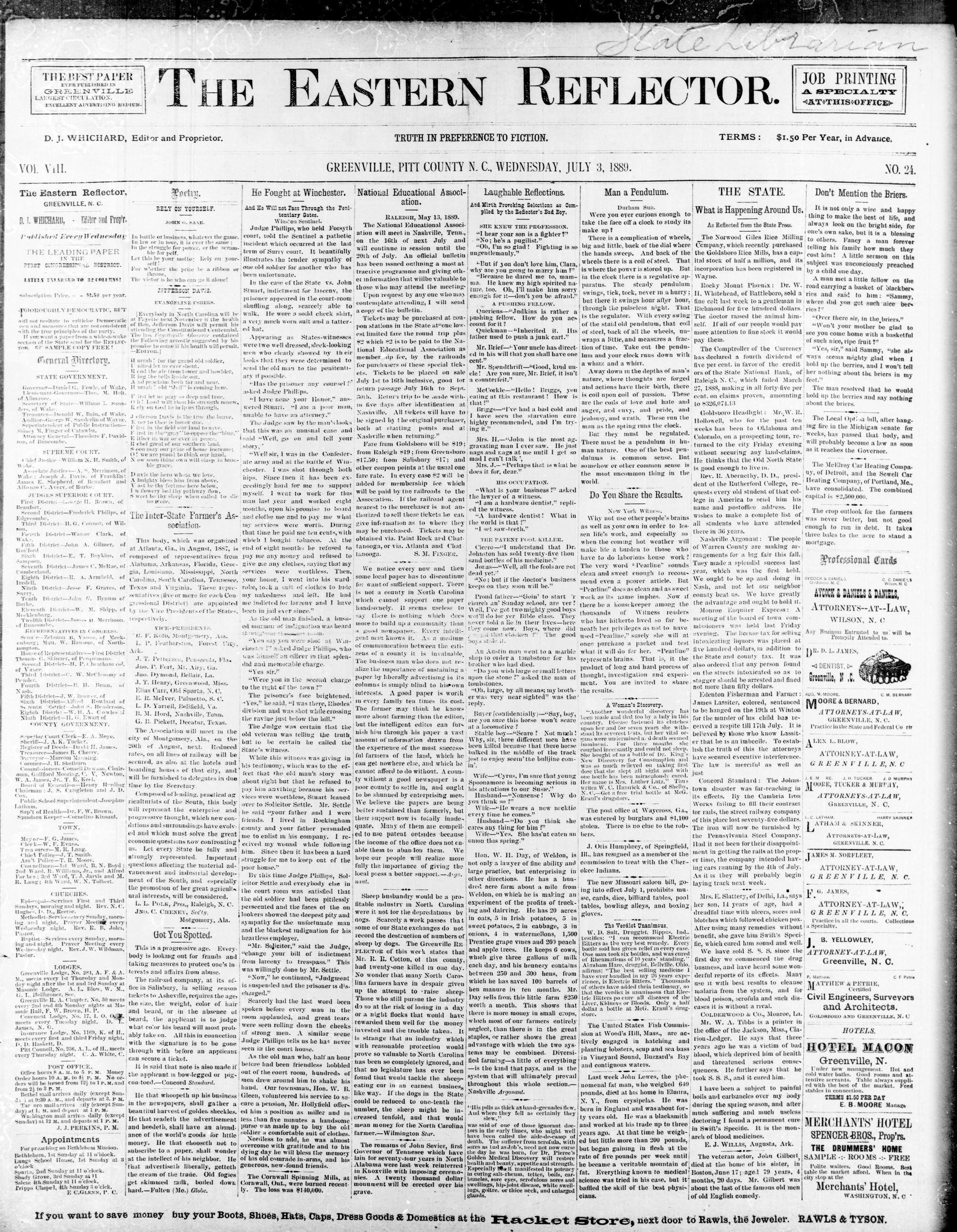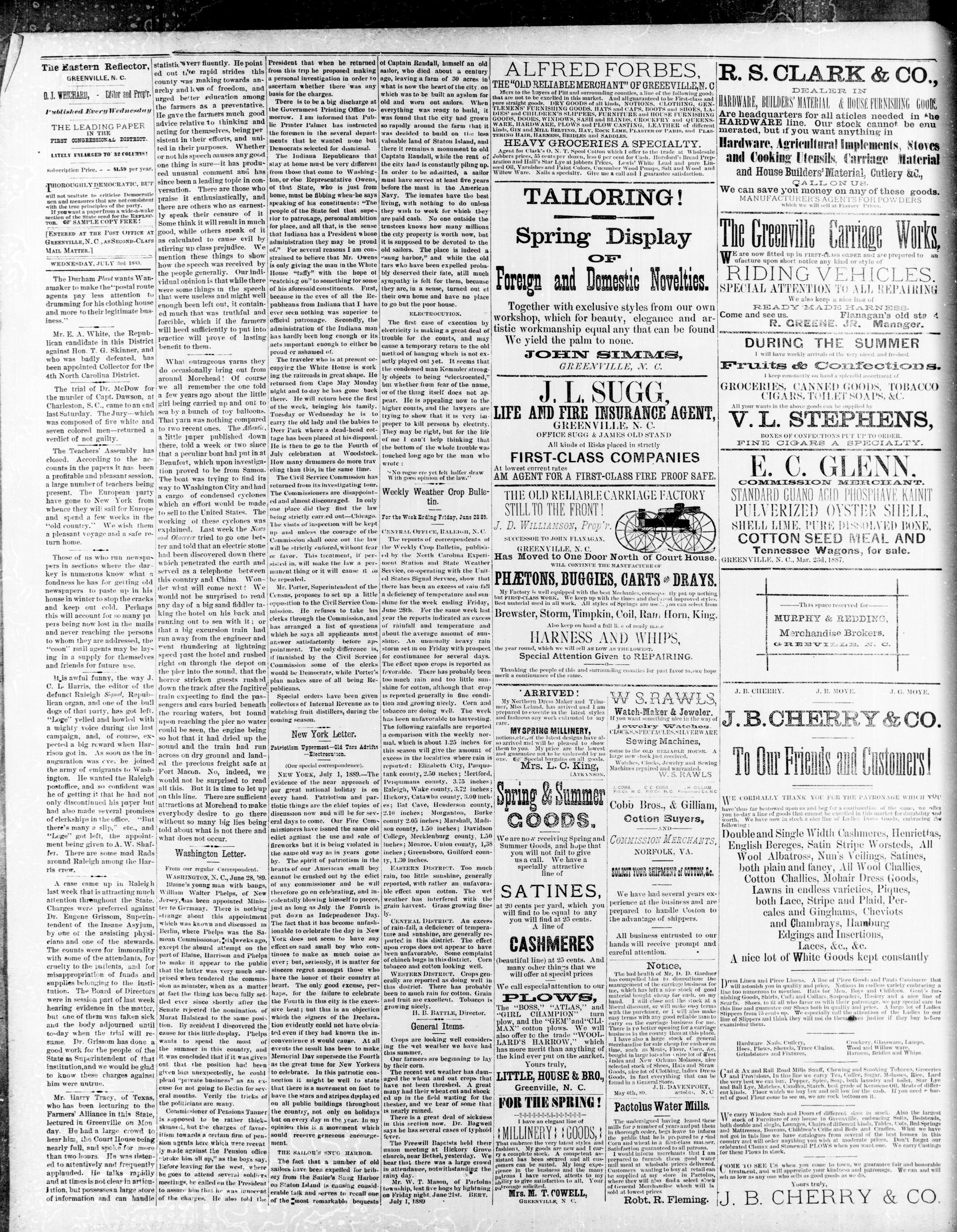 GREENVILLE, PITT COUNTY N. C, WEDNESDAY, JULY 1889.