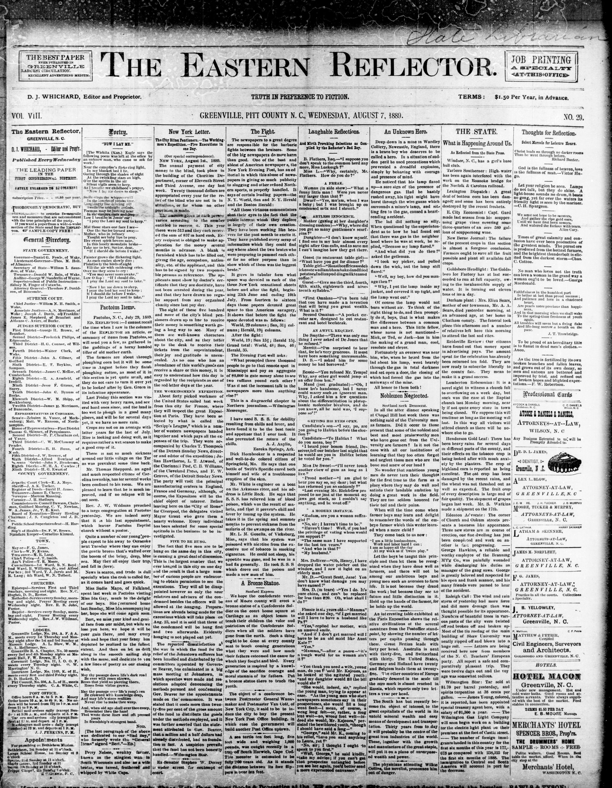 GREENVILLE, PITT COUNTY N. C, WEDNESDAY, AUGUST 1889.