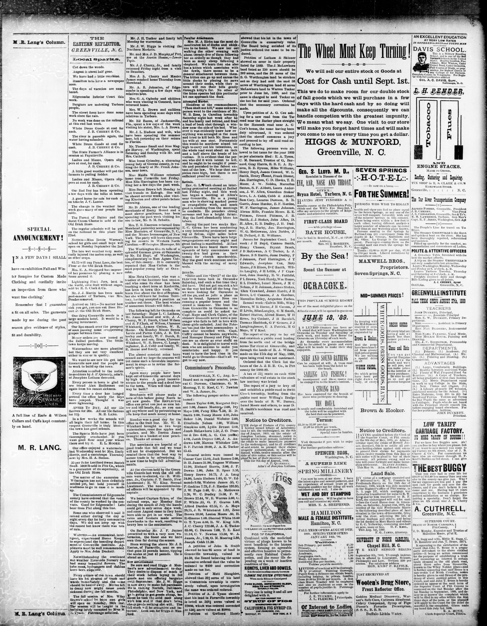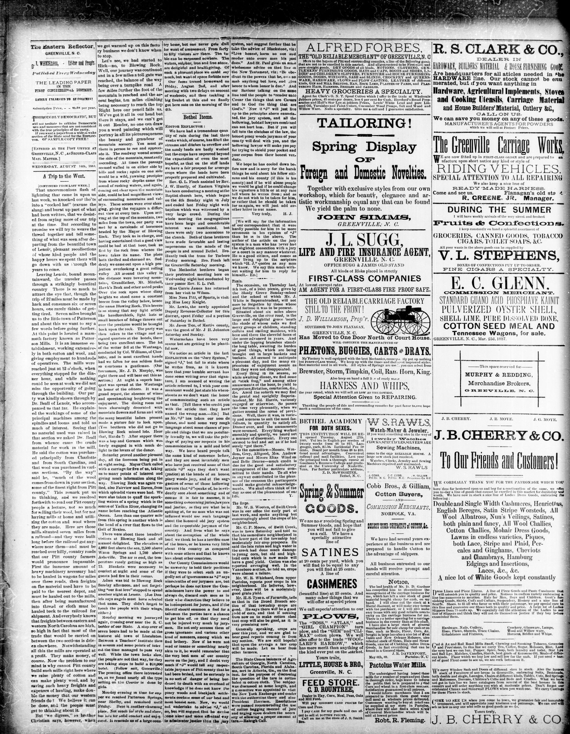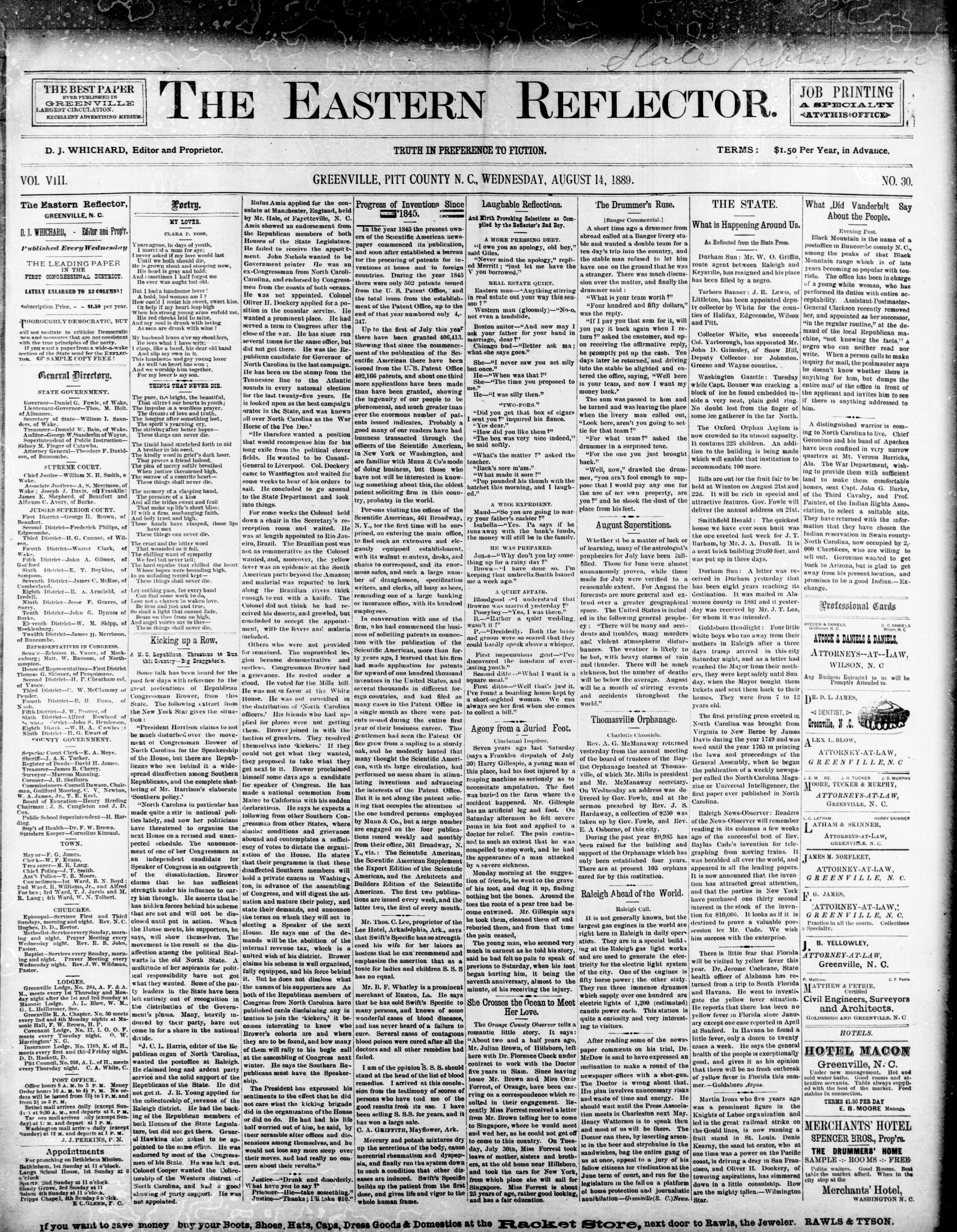 GREENVILLE, Pin COUNTY N. C, WEDNESDAY, AUGUST 1889.