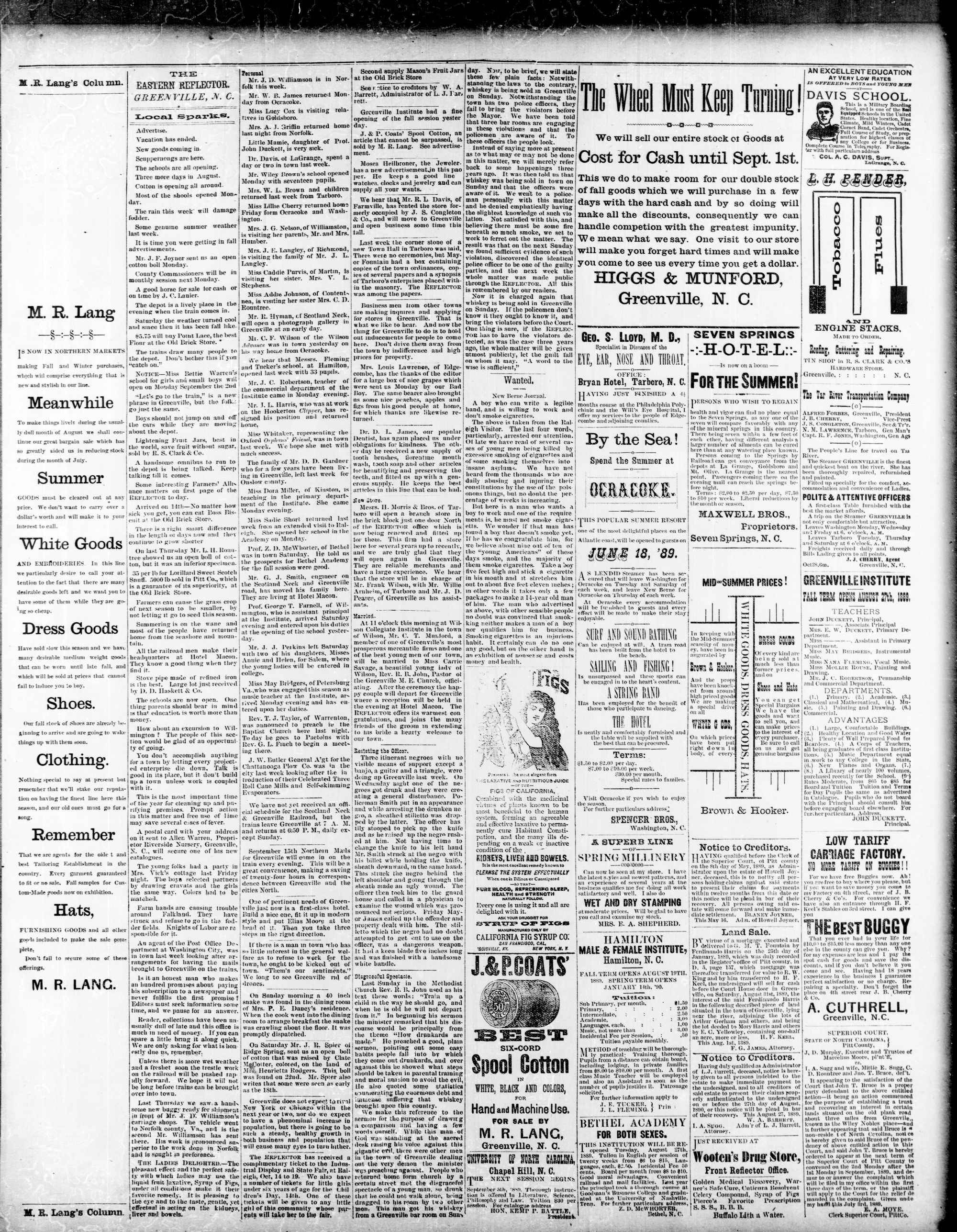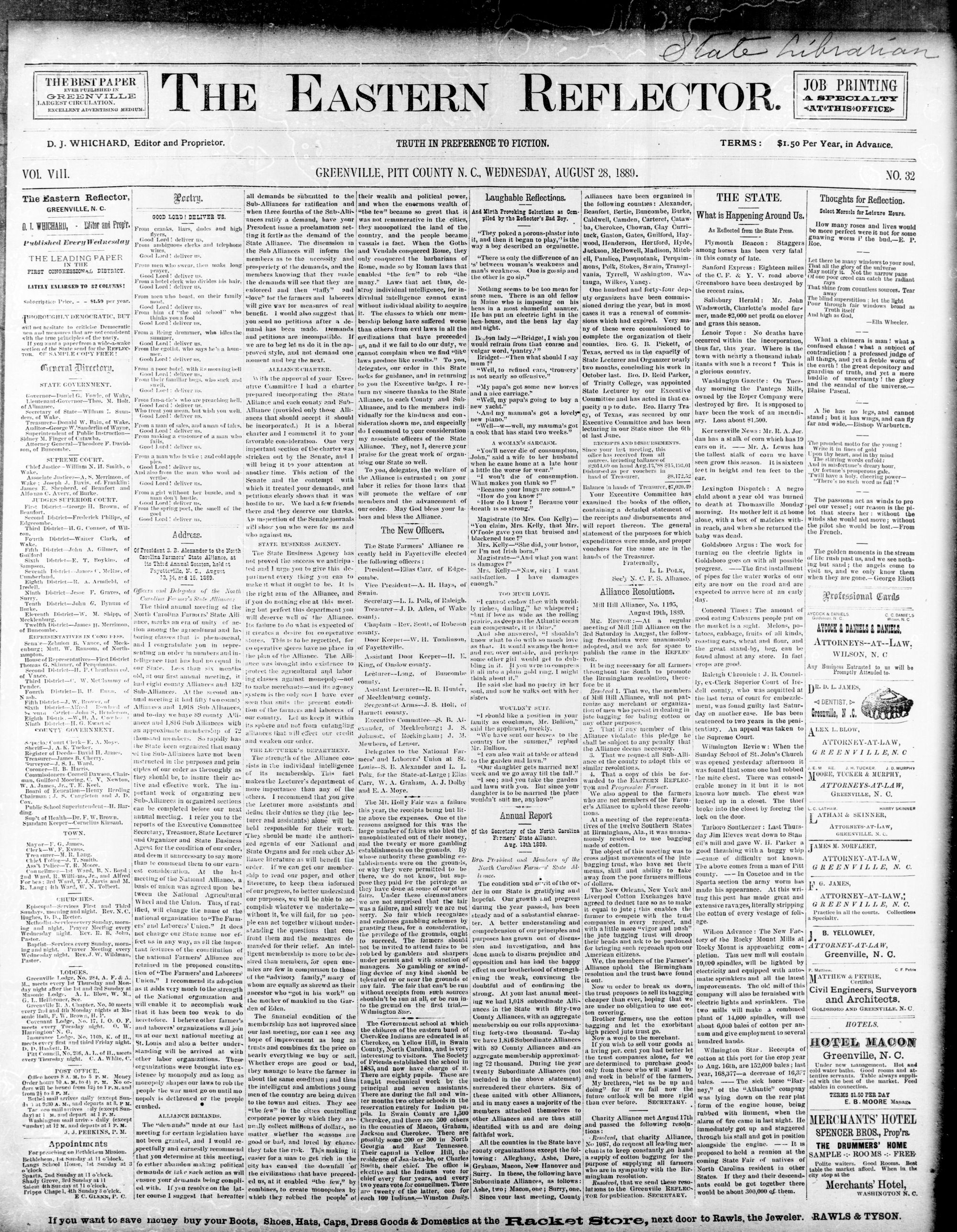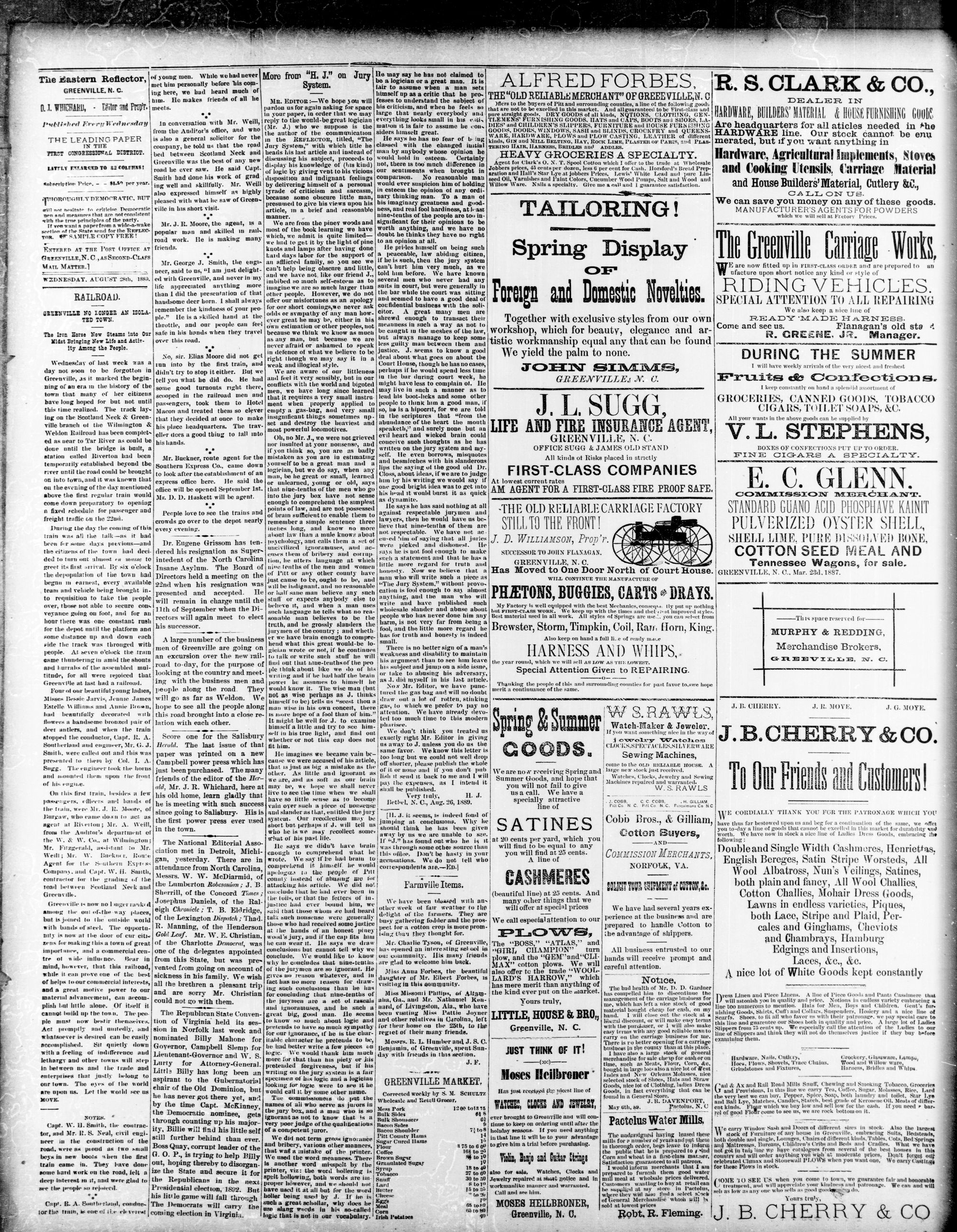 GREENVILLE, PITT COUNTY N. C, WEDNESDAY, AUGUST 1889.