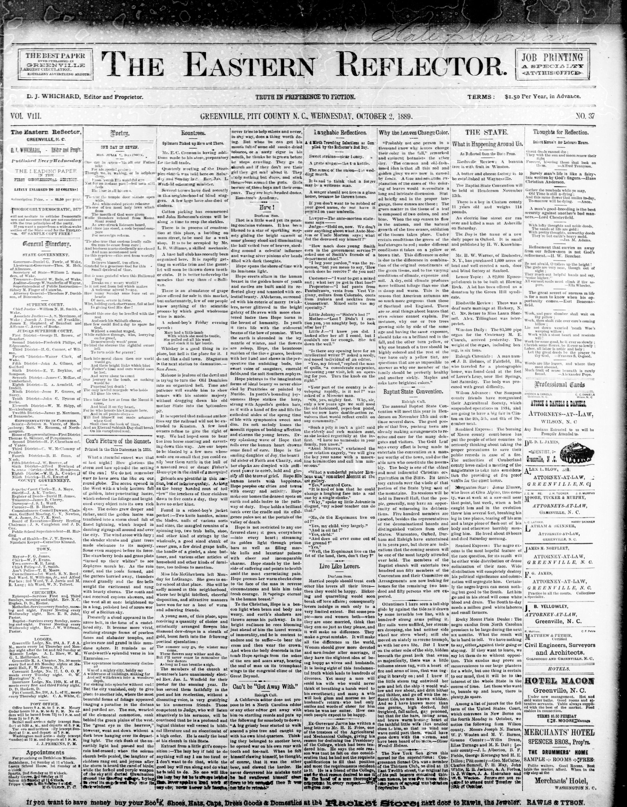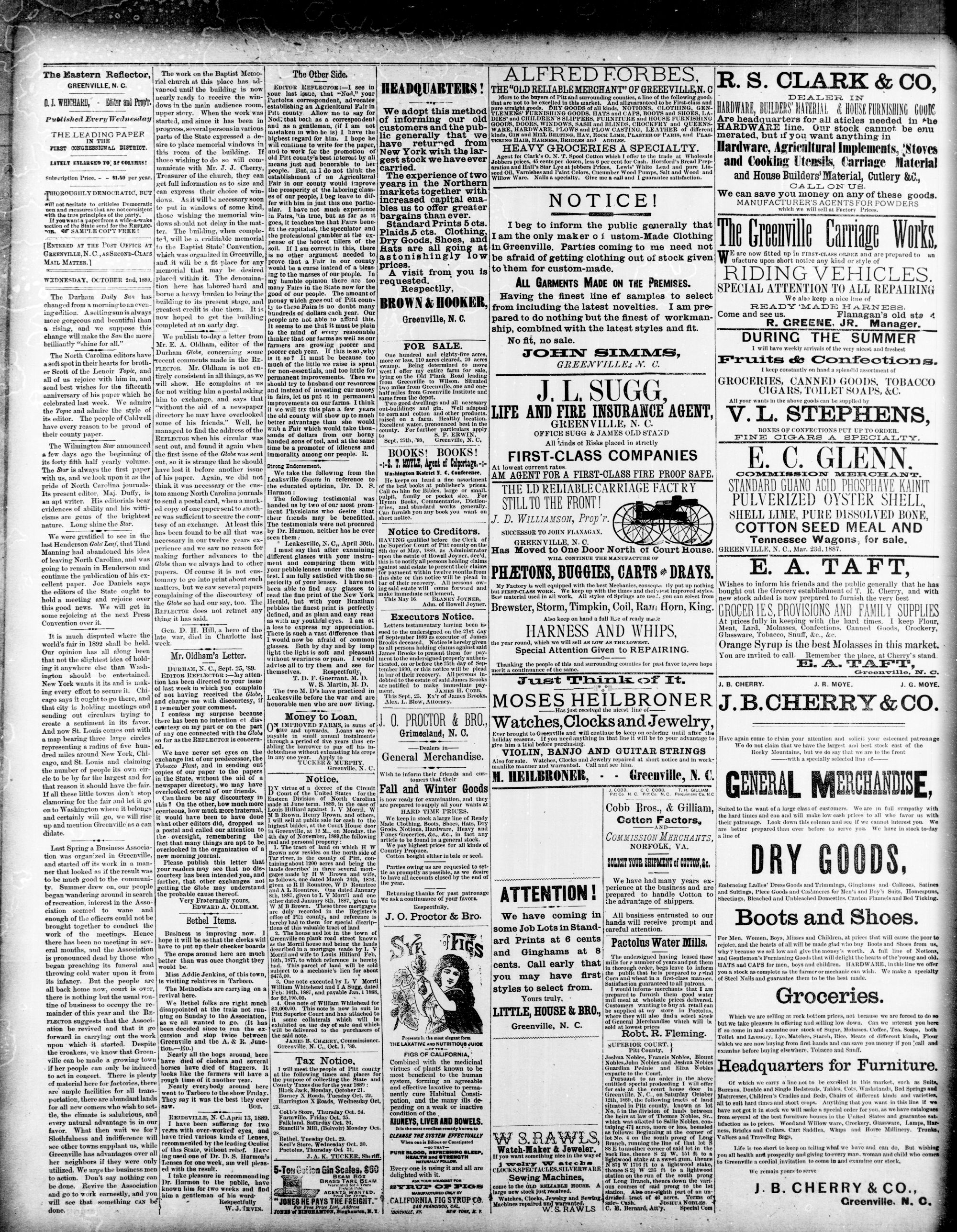 GREENVILLE, PITT COUNTY N. C, WEDNESDAY, OCTOBER 1889.