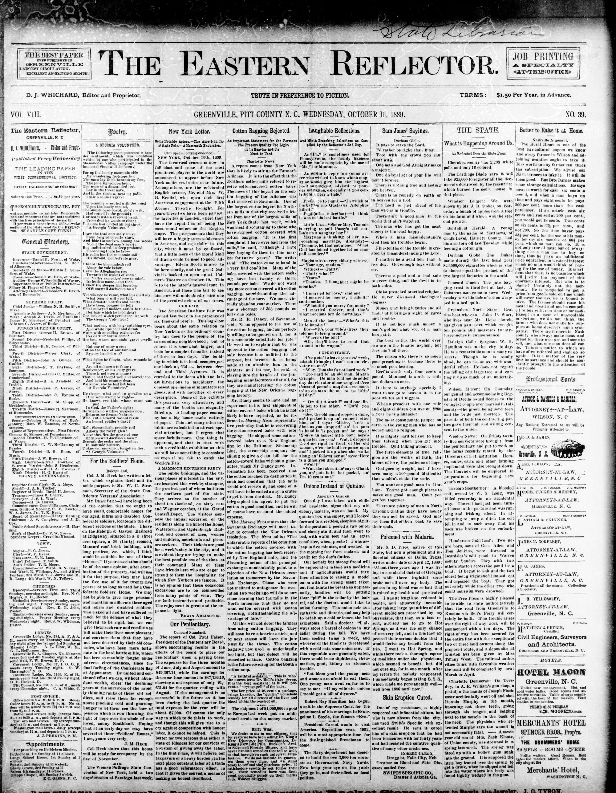 The Eastern Reflector was a newspaper published in Greenville, N.C. It later became known as the Daily Reflector.