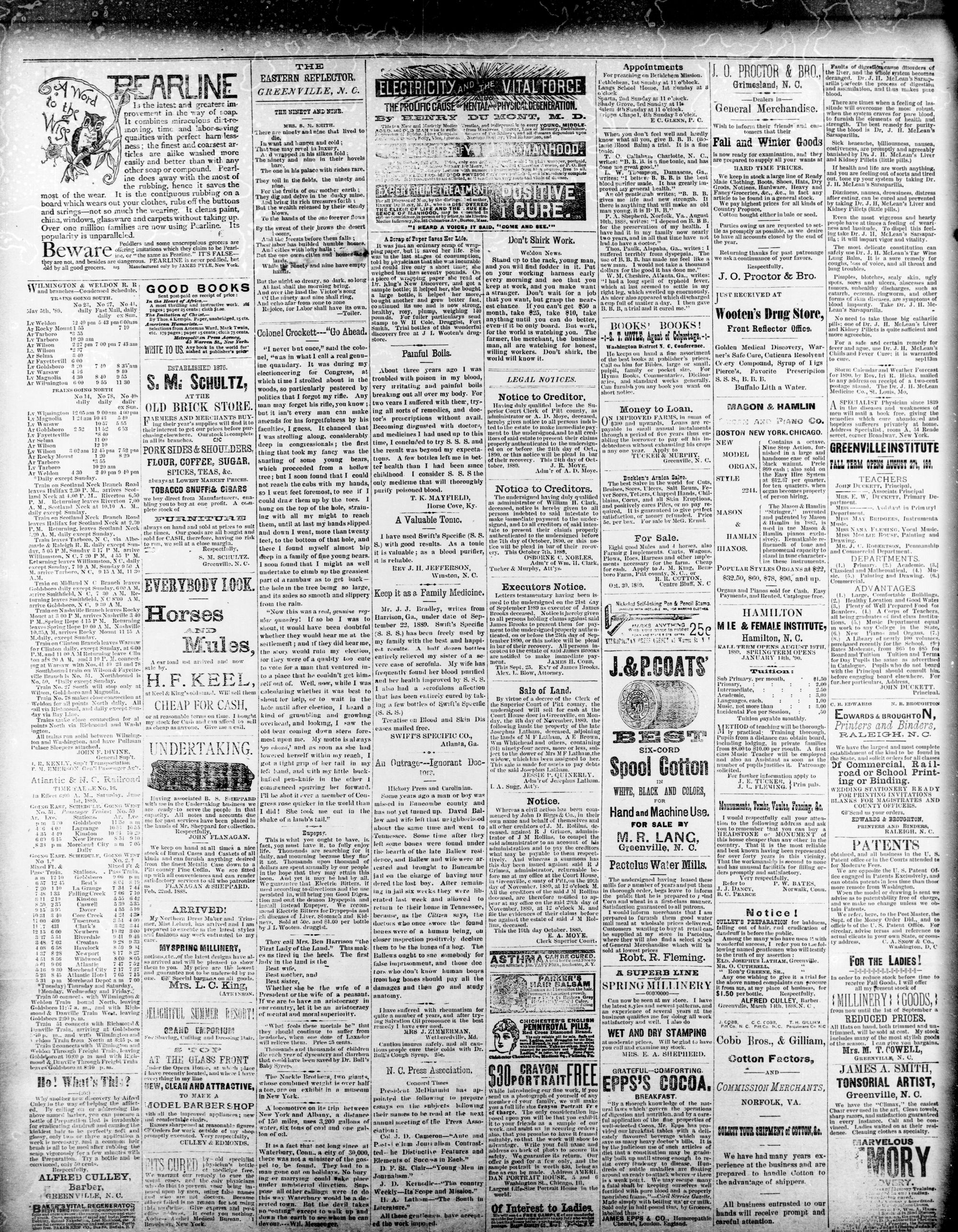 GREENVILLE, PITT COUNTY N. WEDNESDAY, NOVEMBER 1889,
