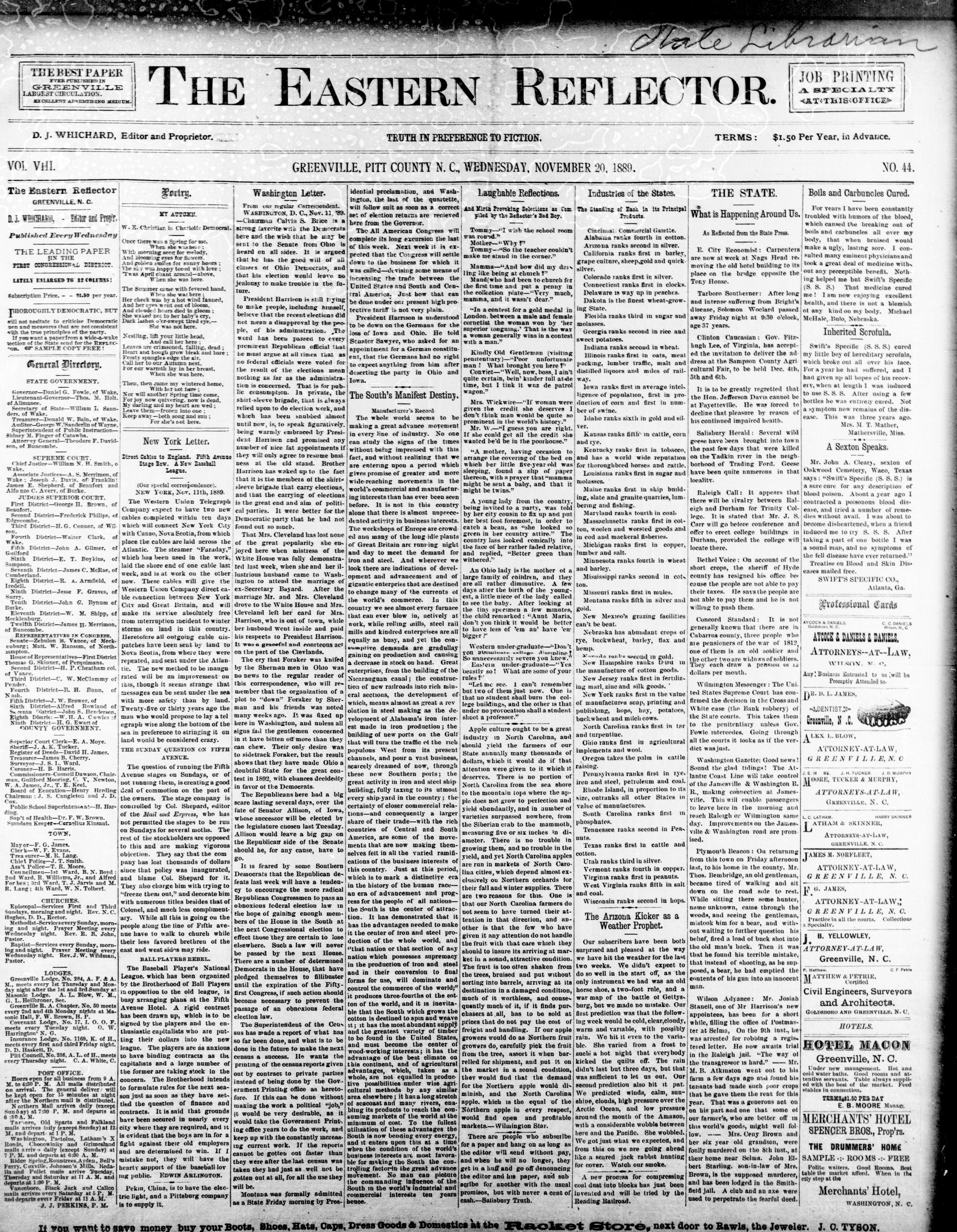 GREENVILLE, Pin COUNTY N. C, WEDNESDAY. NOVEMBER 1889.
