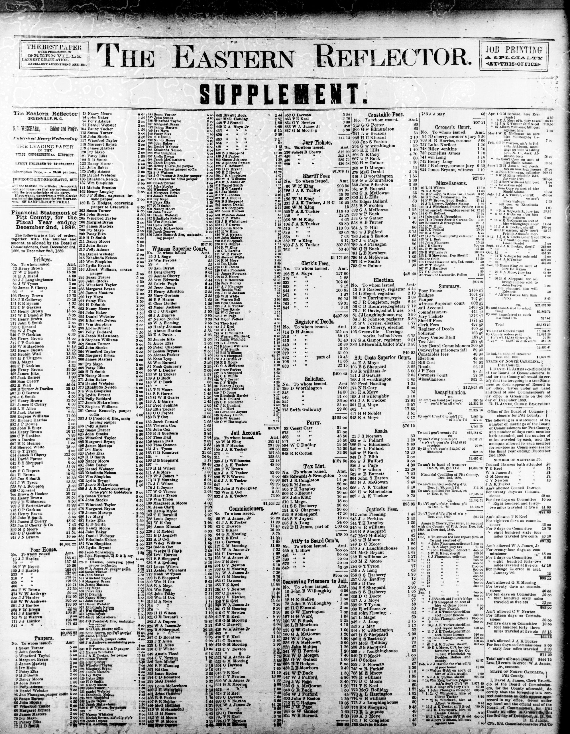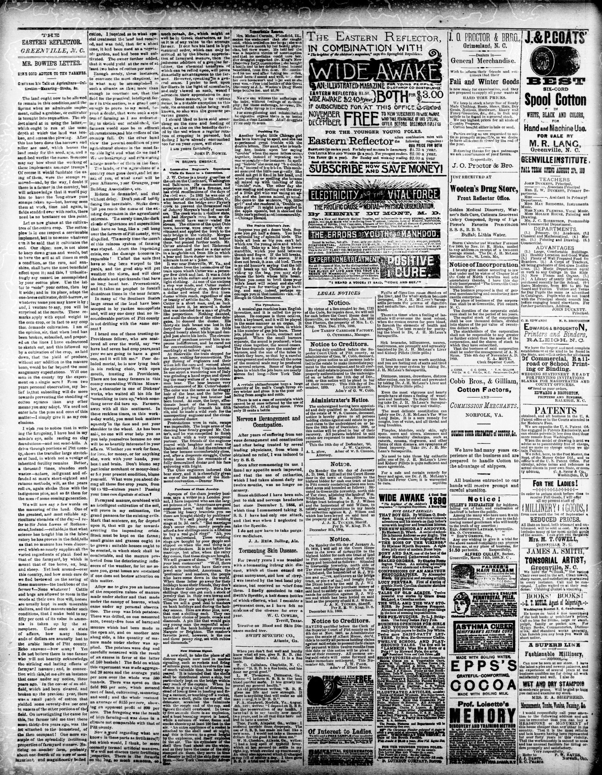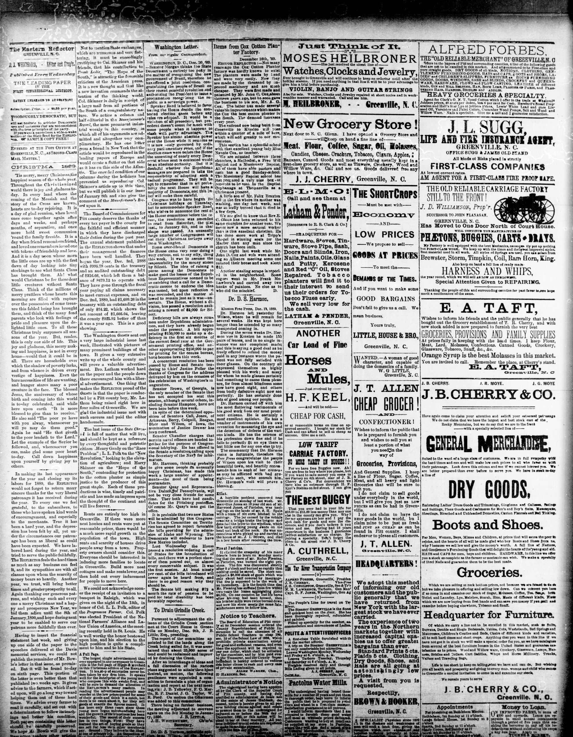 GREENVILLE, PITT N. C, WEDNESDAY, DECEMBER 1889.