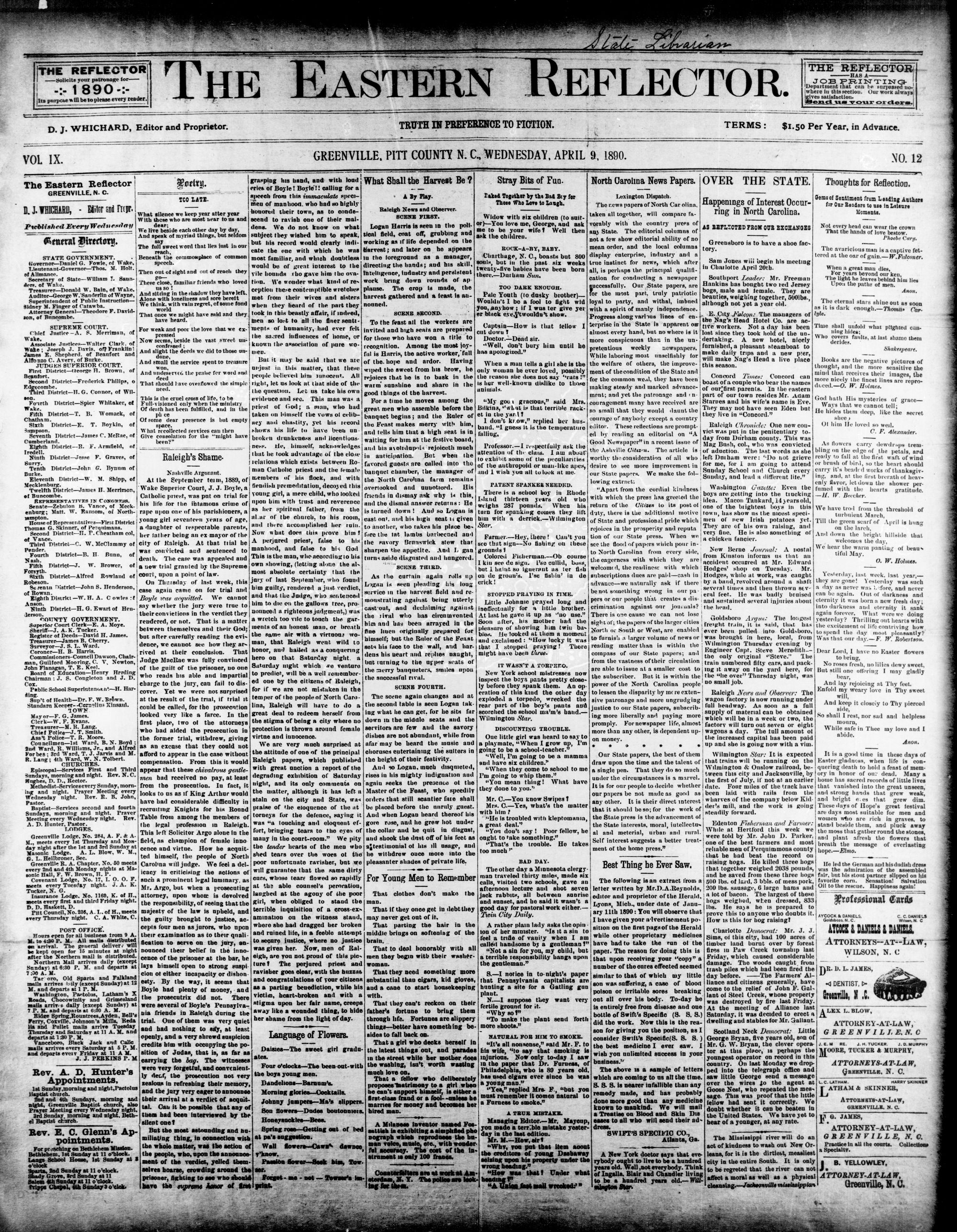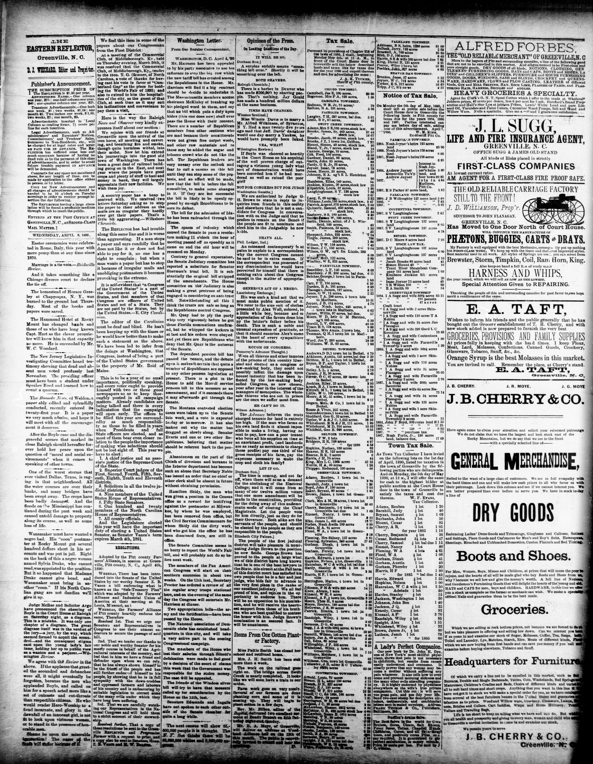 GREENVILLE. PITT COUNTY N. WEDNESDAY, APRIL 1890.
