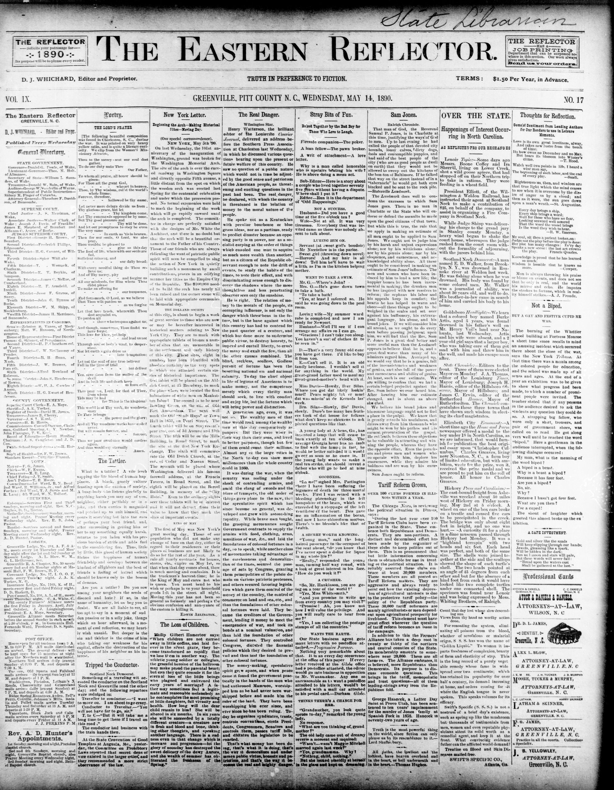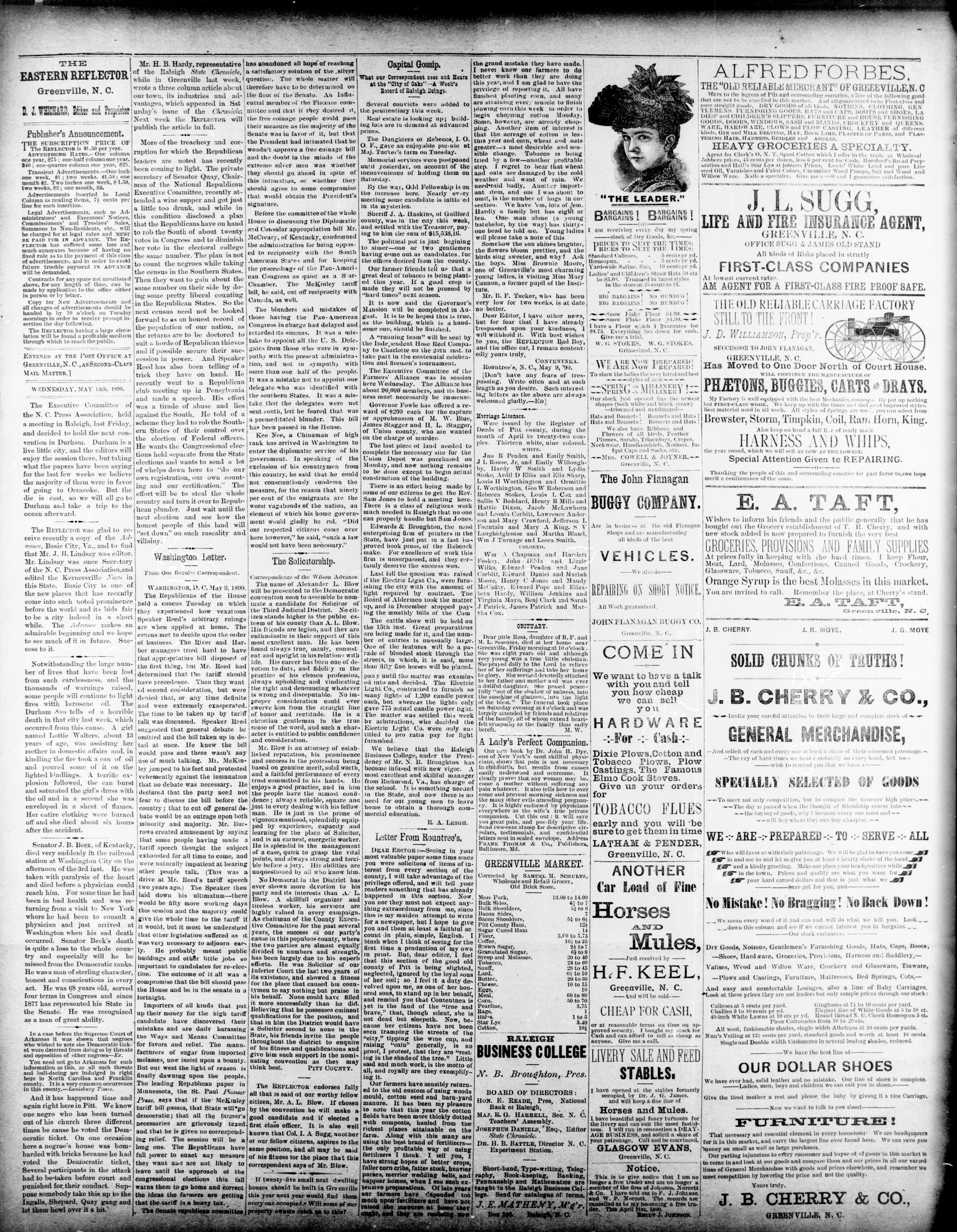 GREENVILLE. PITT COUNTY N. C, WEDNESDAY. MAY 1890.