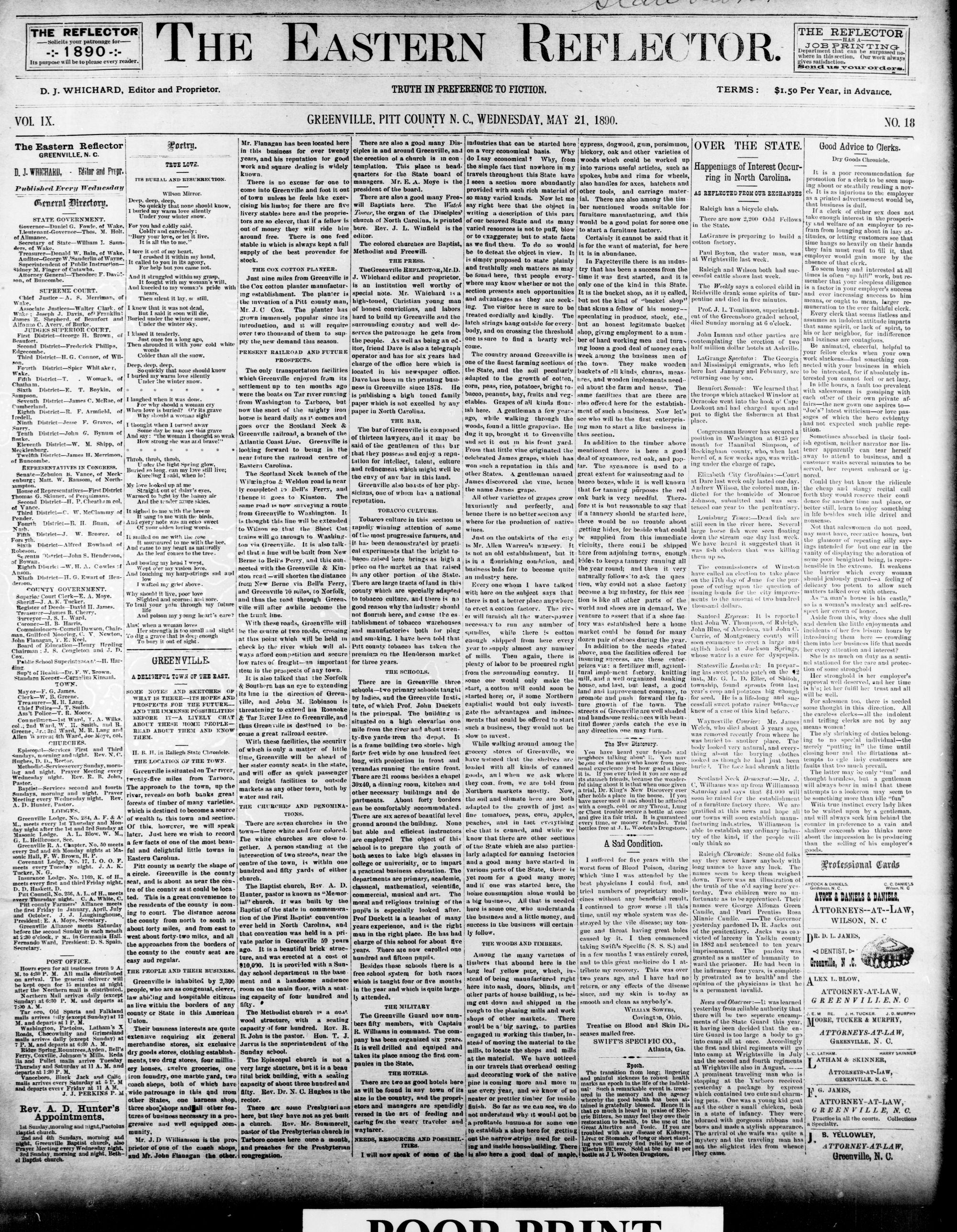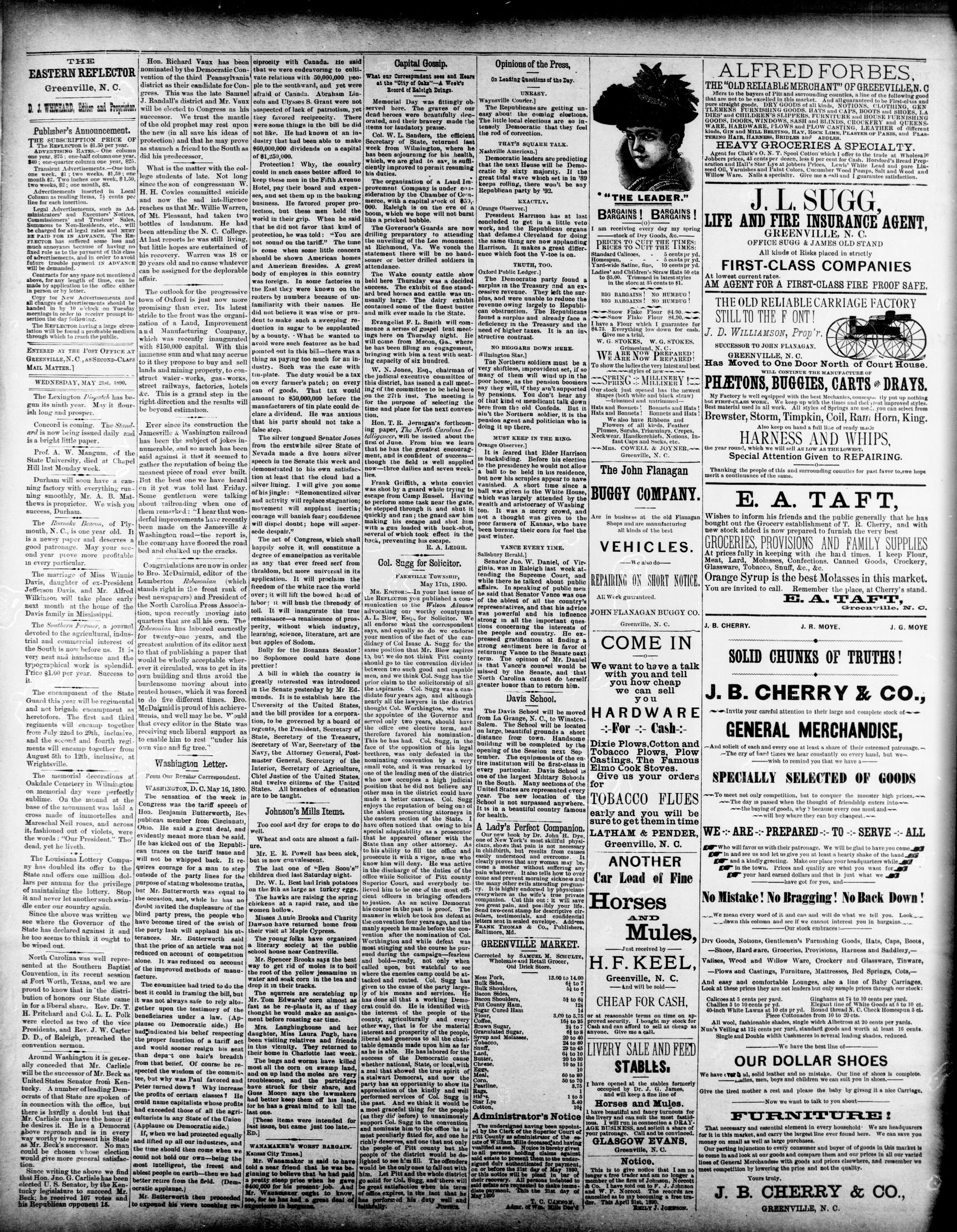 GREENVILLE. Pin COUNTY N. C, WEDNESDAY, MAY 1890.