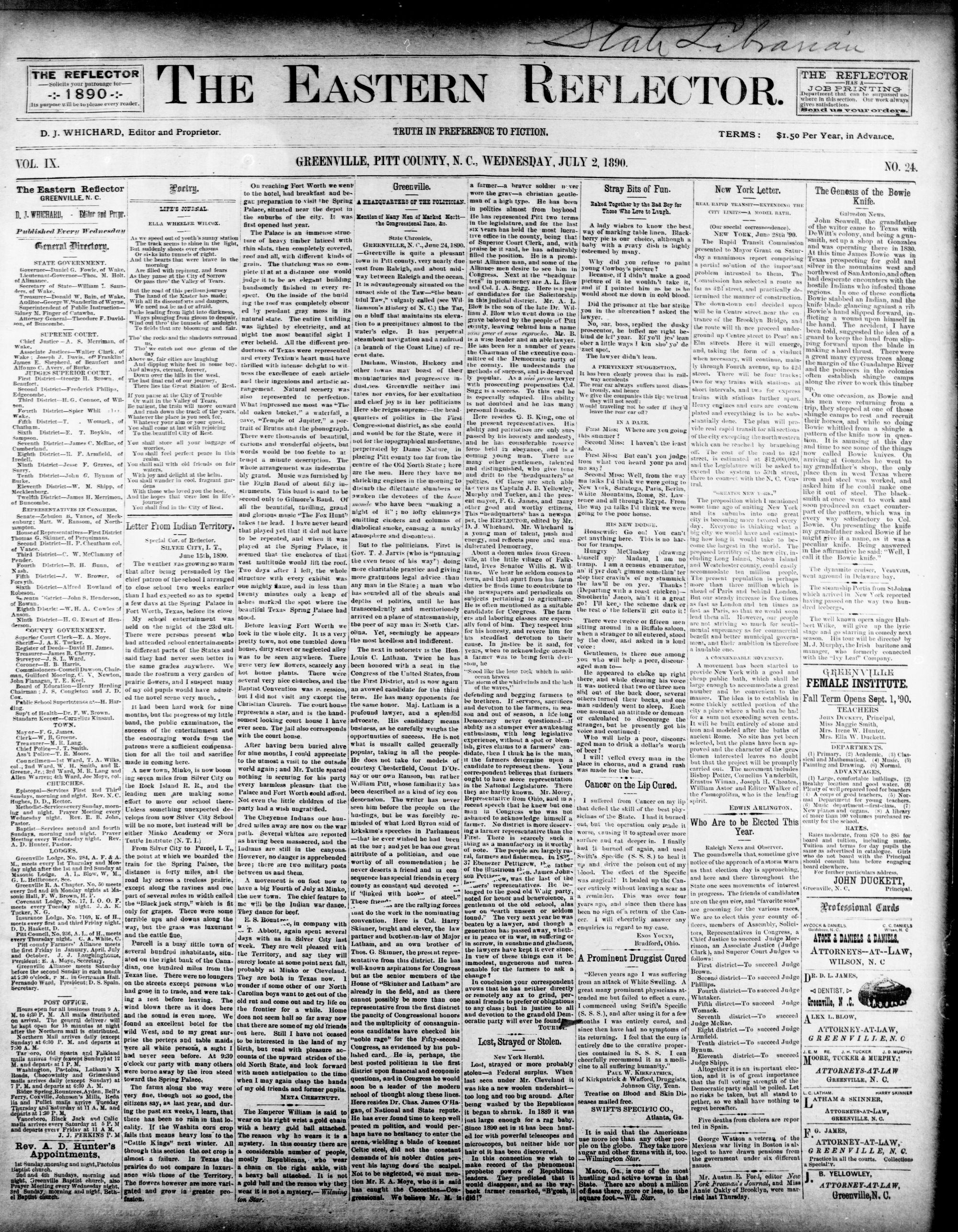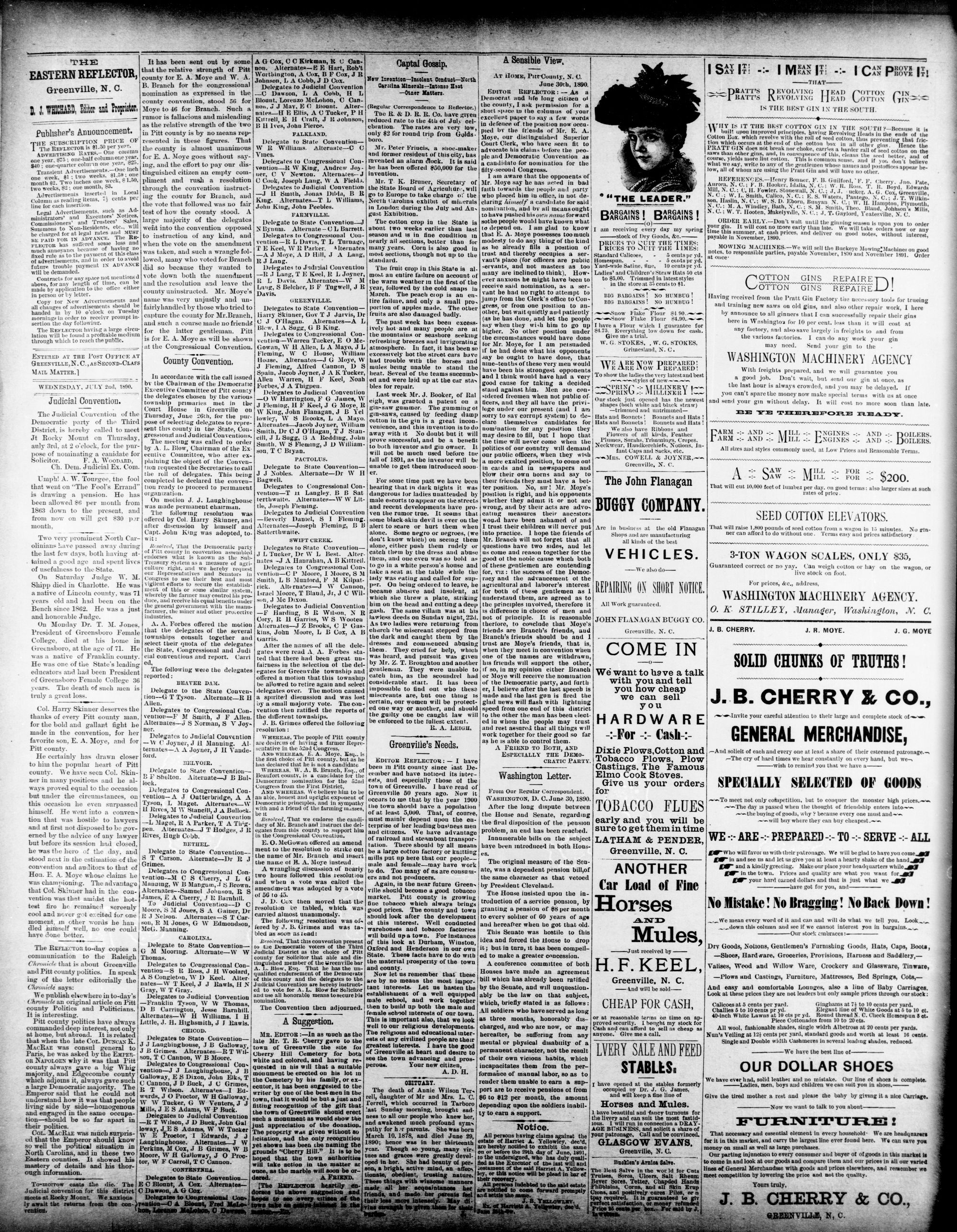GREENVILLE, PITT COUNTY, N. C, WEDNESDAY, JULY 1890.