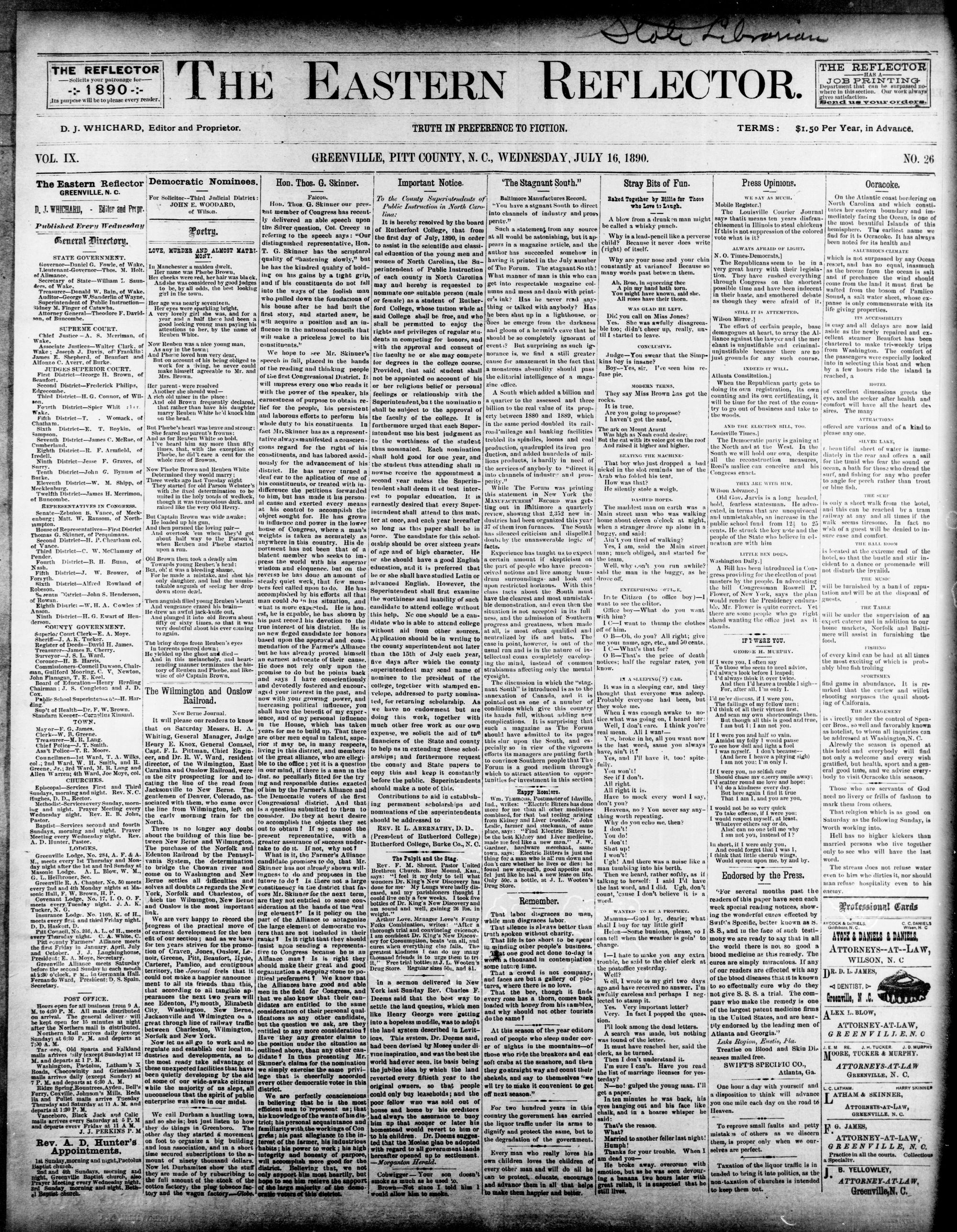 GREENVILLE, PITT COUNTY, N. C, WEDNESDAY, JULY 1890.