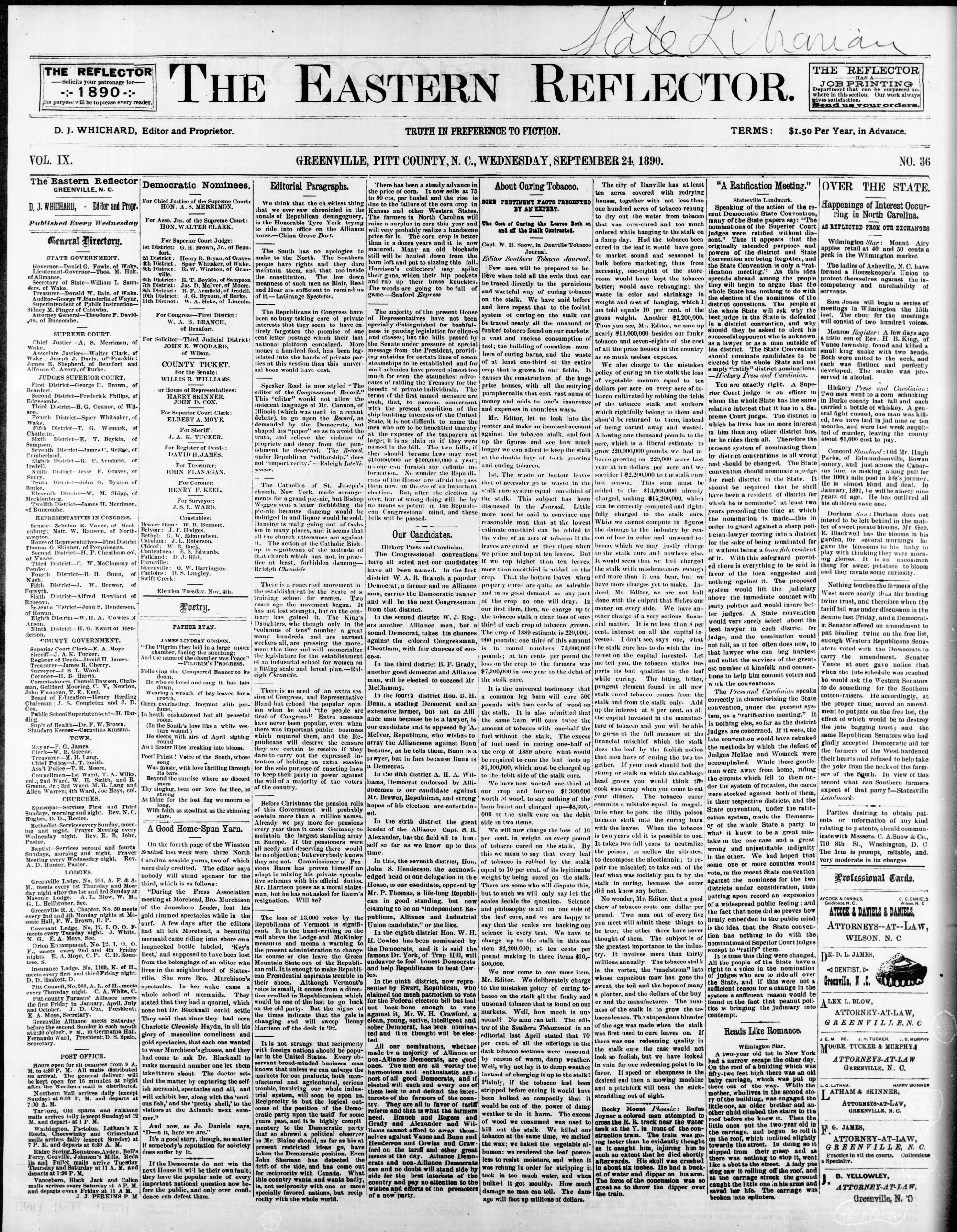 The Eastern Reflector was a newspaper published in Greenville, N.C. It later became known as the Daily Reflector.