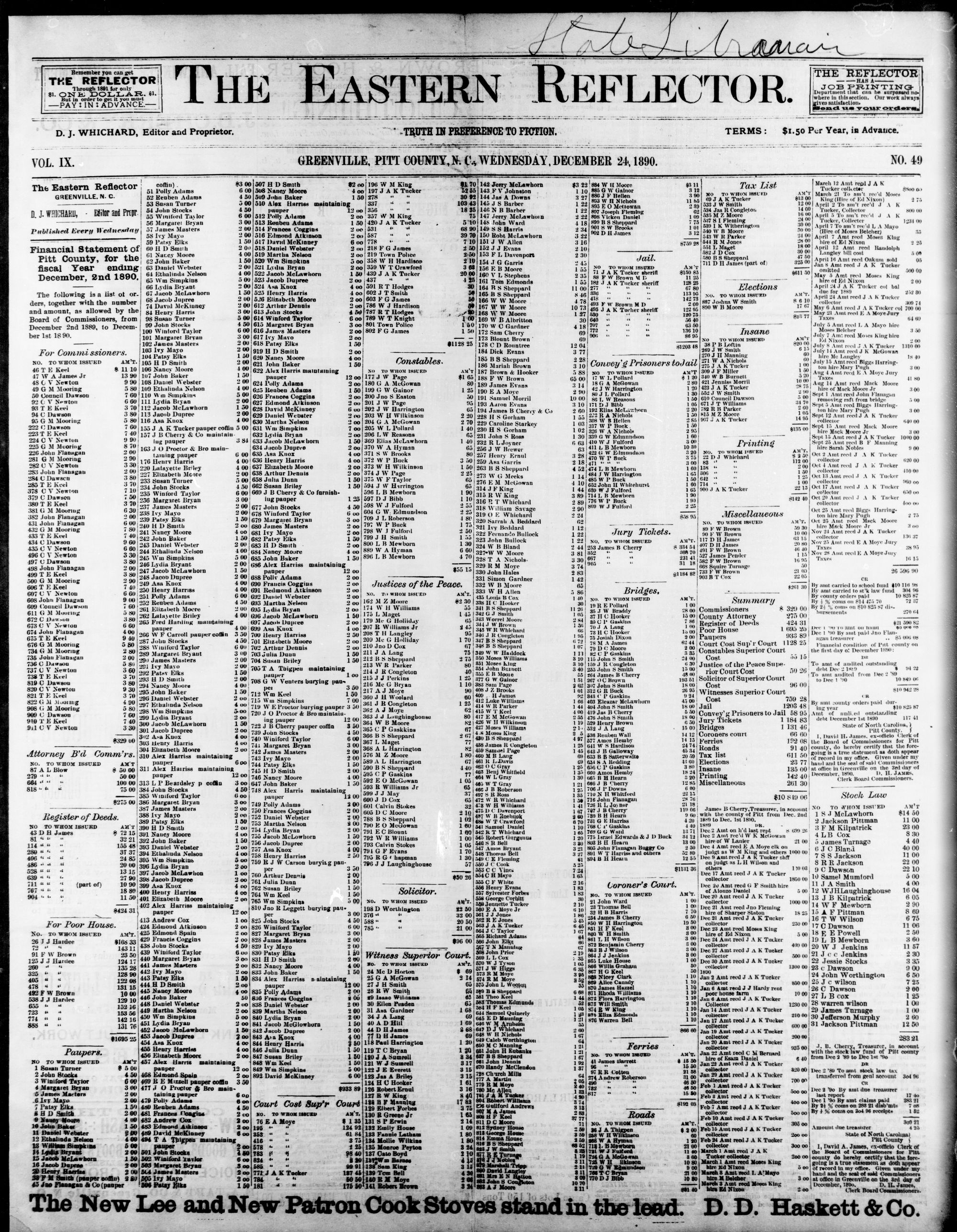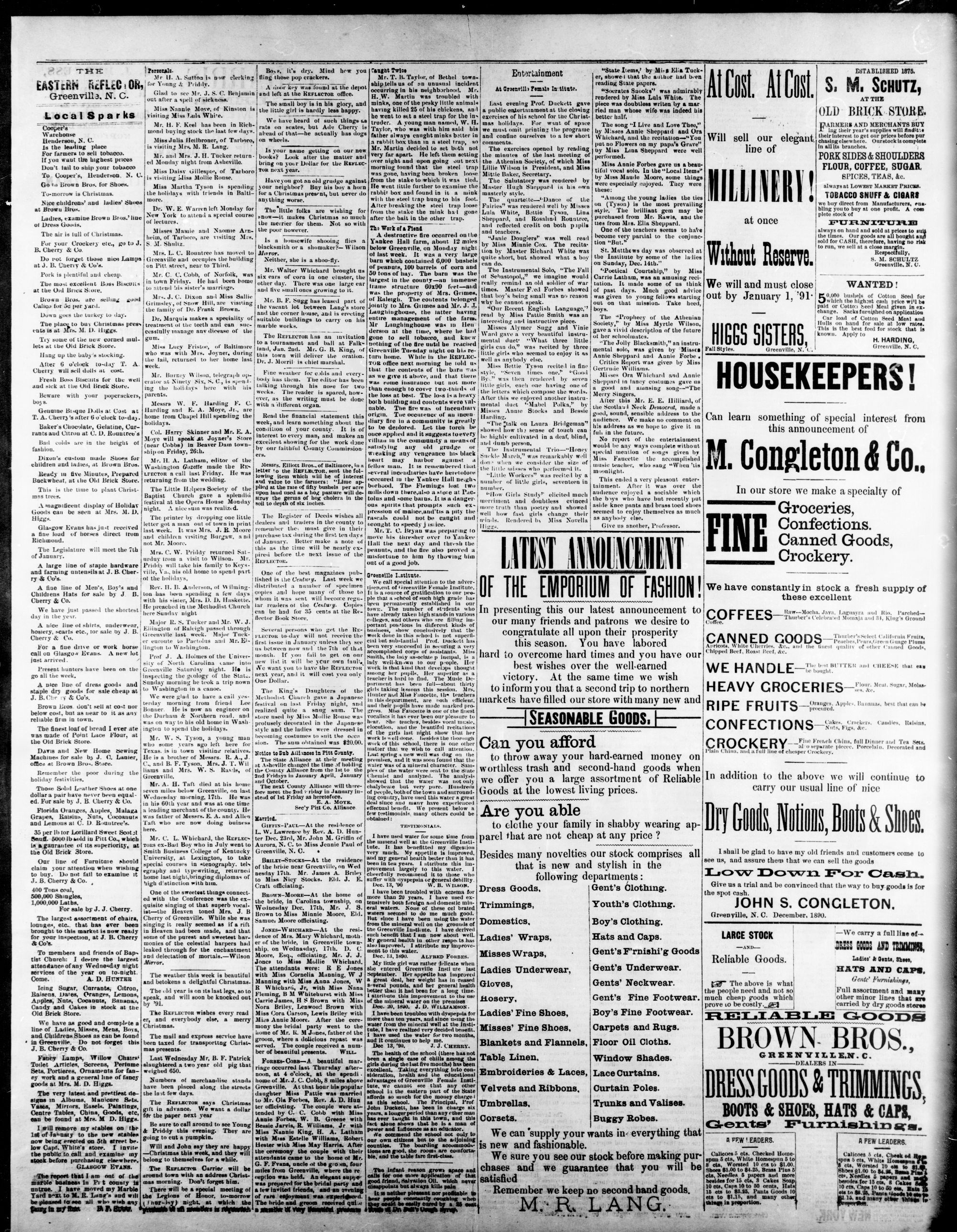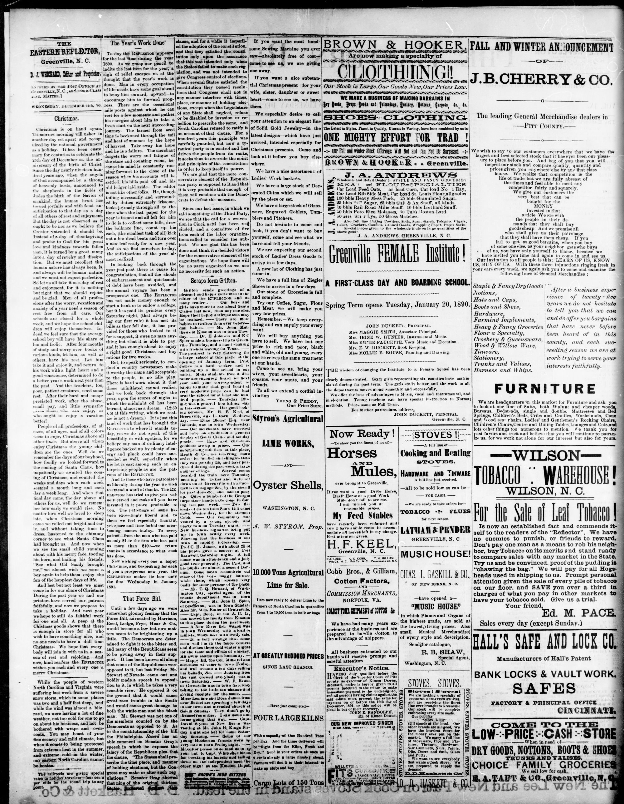 GREENVILLE, PITT CU WEDNESDAY, DECEMBER 1890.