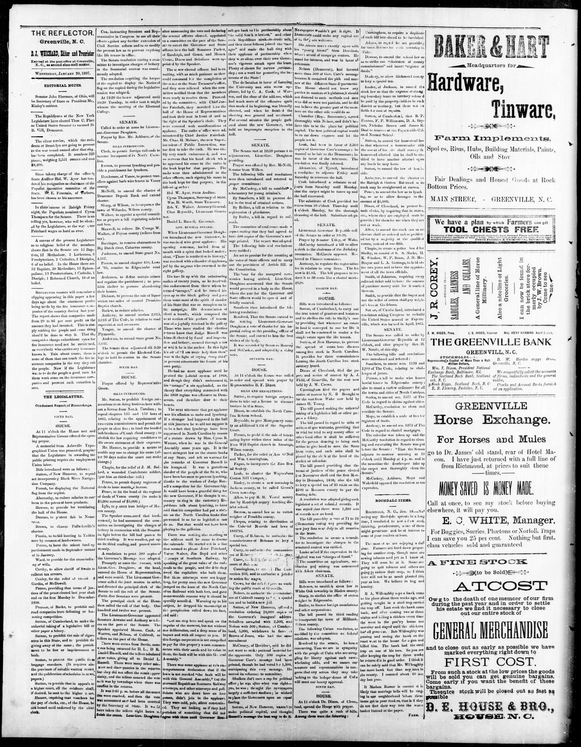 GREENVILLE, PITT COUNTY, N. C, WEDNESDAY, JANUARY 1897,