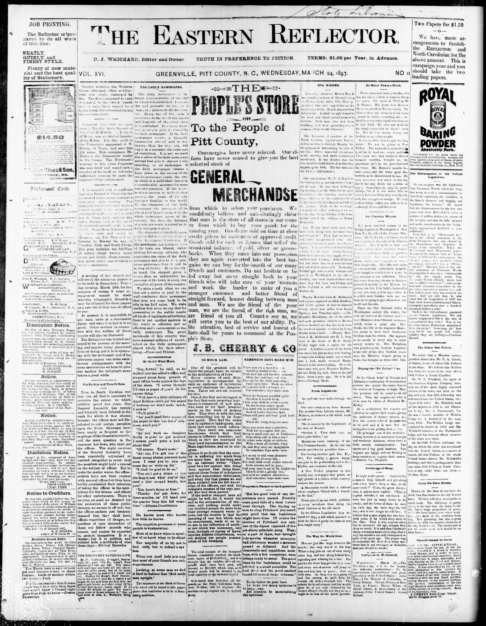 GREENVILLE, PITT COUNTY, N. C, WEDNESDAY, MA CH 1897.