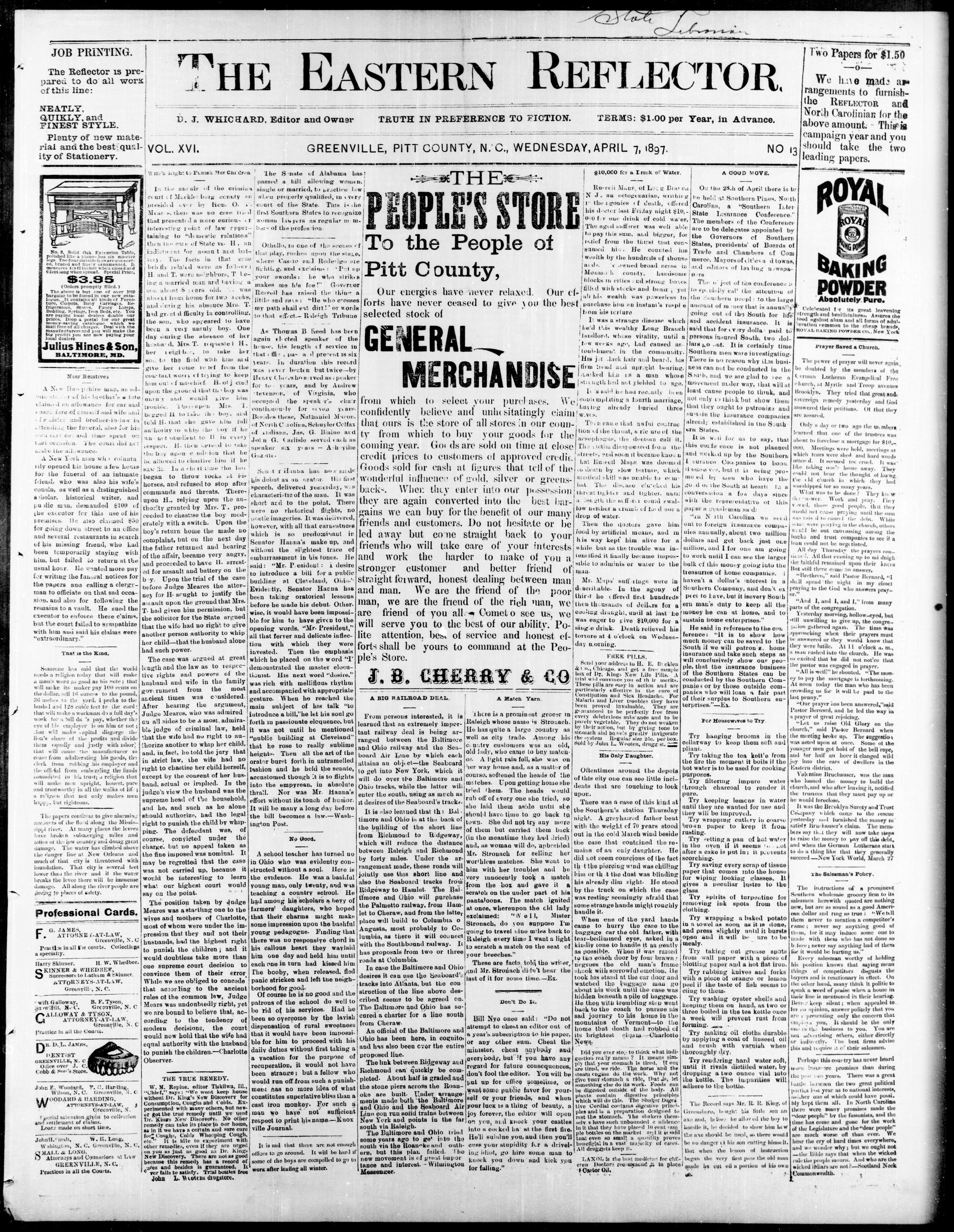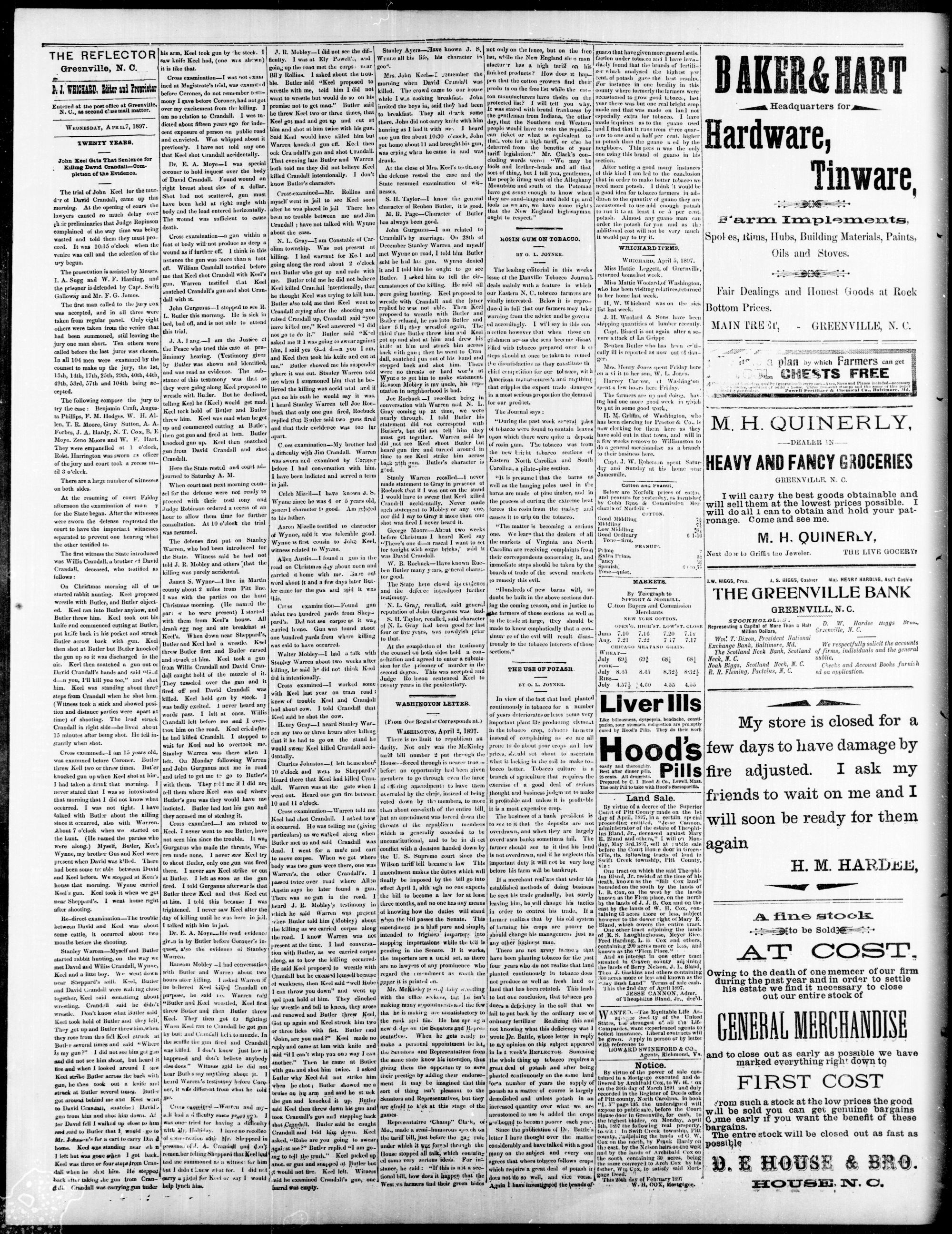 GREENVILLE, PITT COUNTY, WEDNESDAY, APRIL 1897.