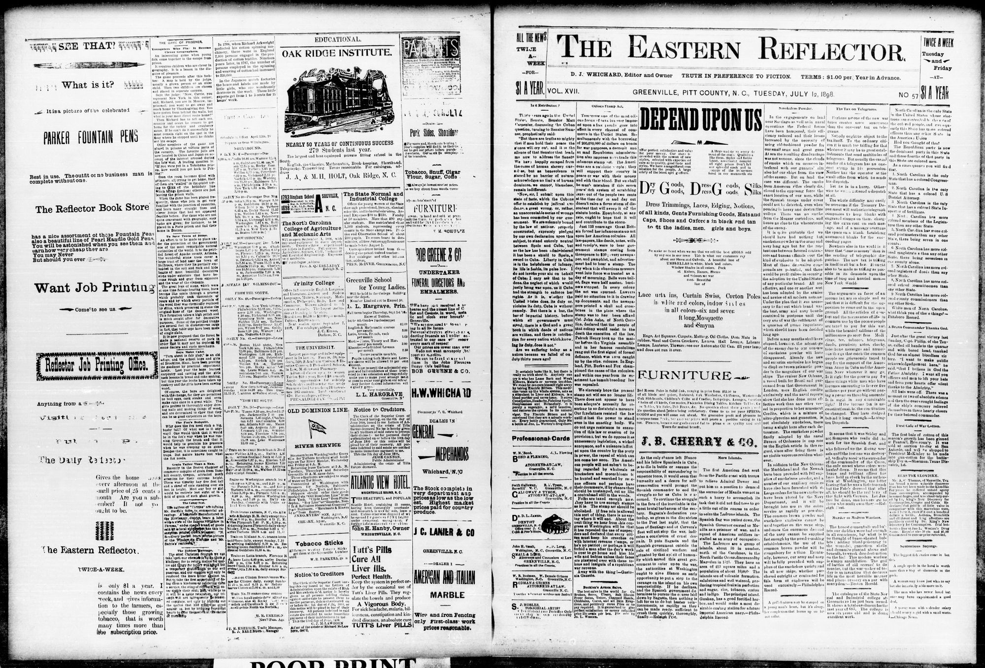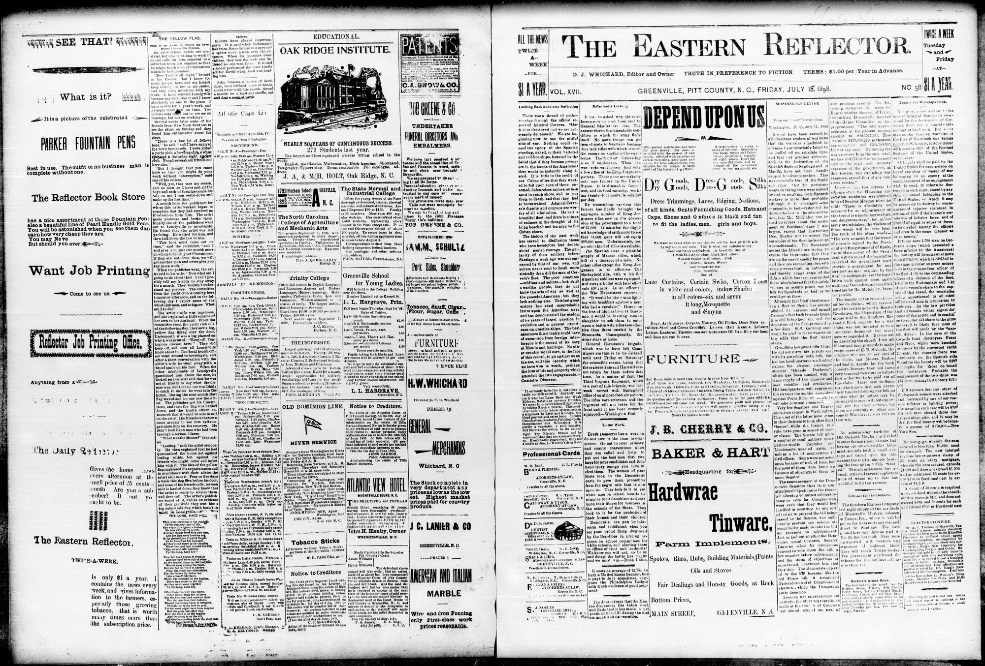 The Eastern Reflector was a newspaper published in Greenville, N.C. It later became known as the Daily Reflector.