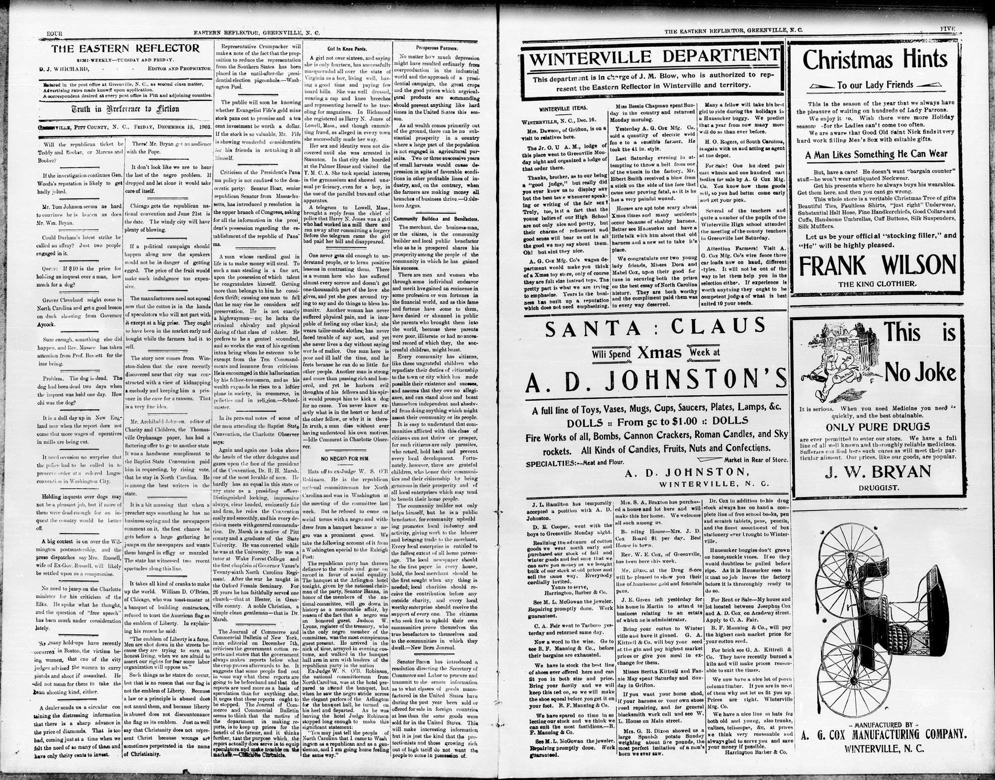 Col. I. A. Sugg furnisher us
