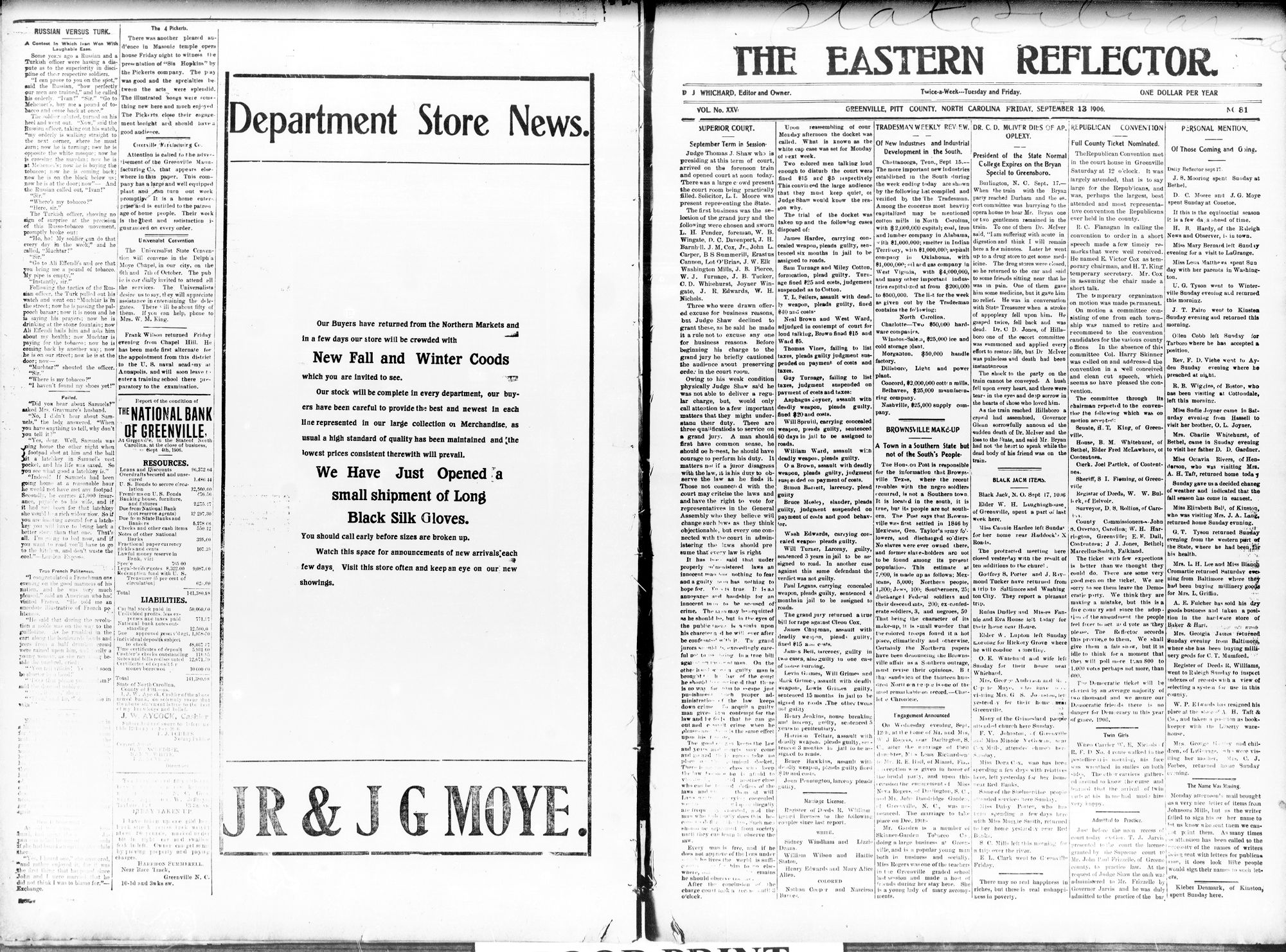 The Eastern Reflector was a newspaper published in Greenville, N.C. It later became known as the Daily Reflector.