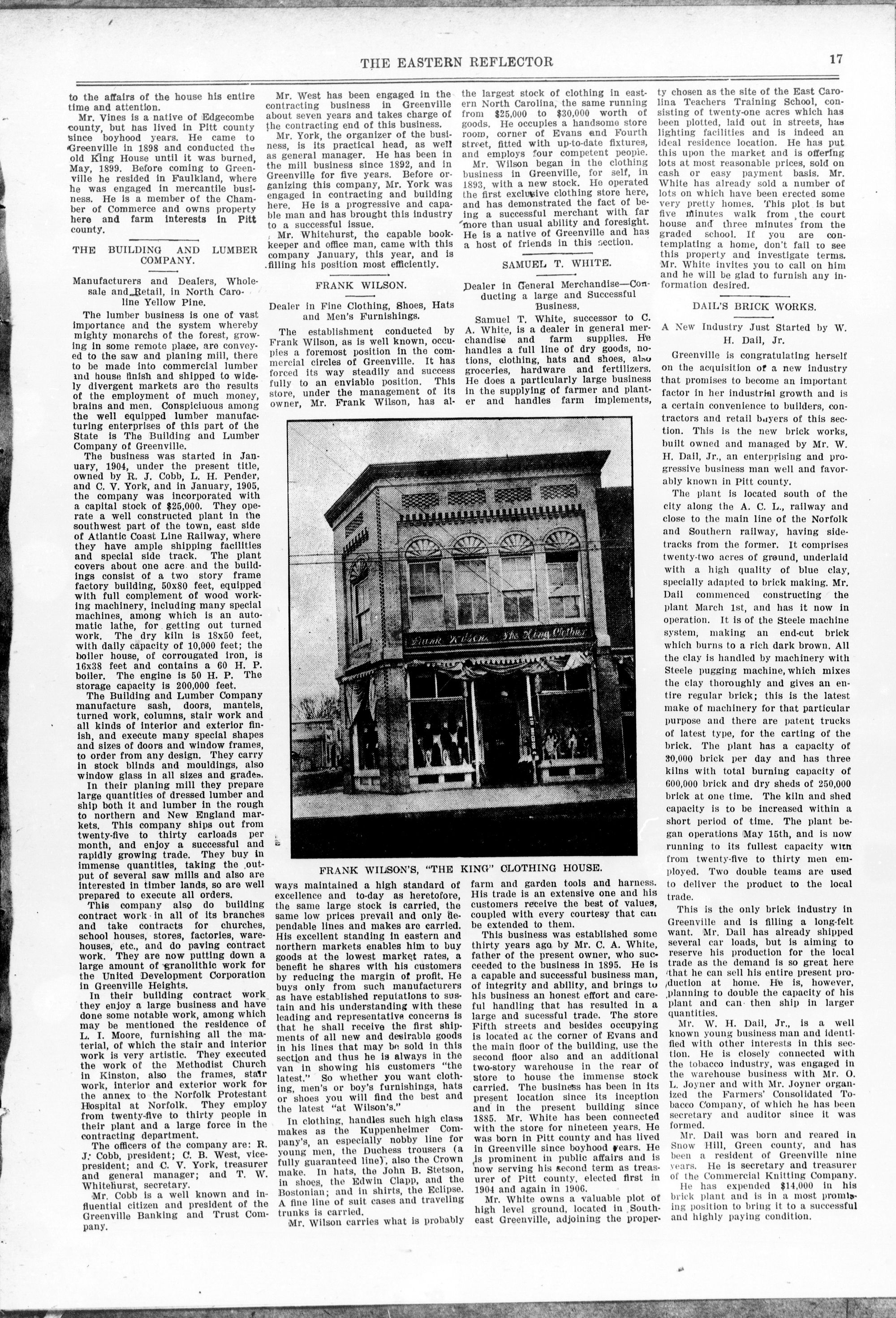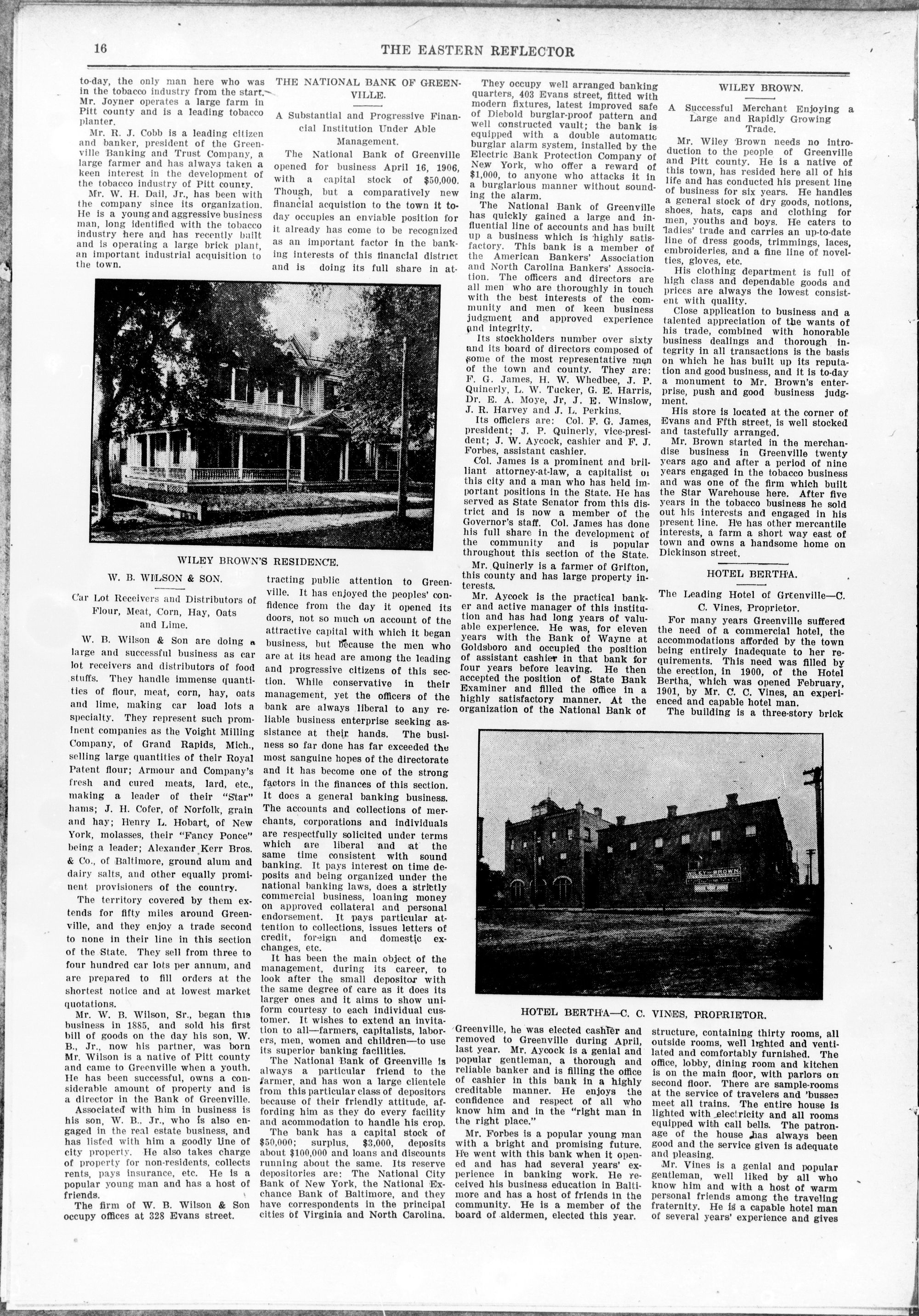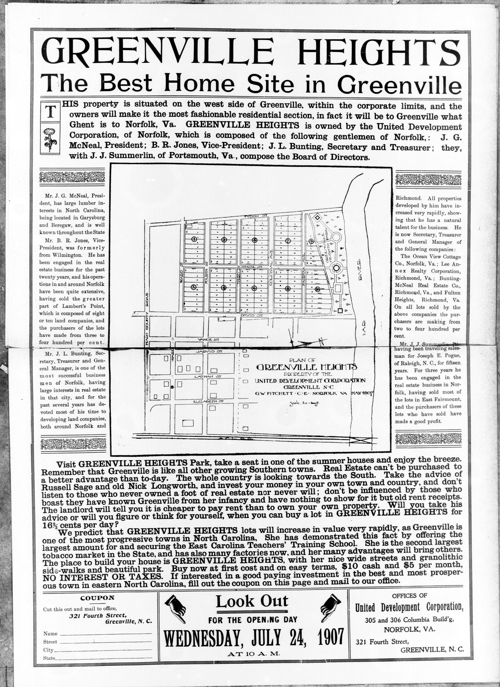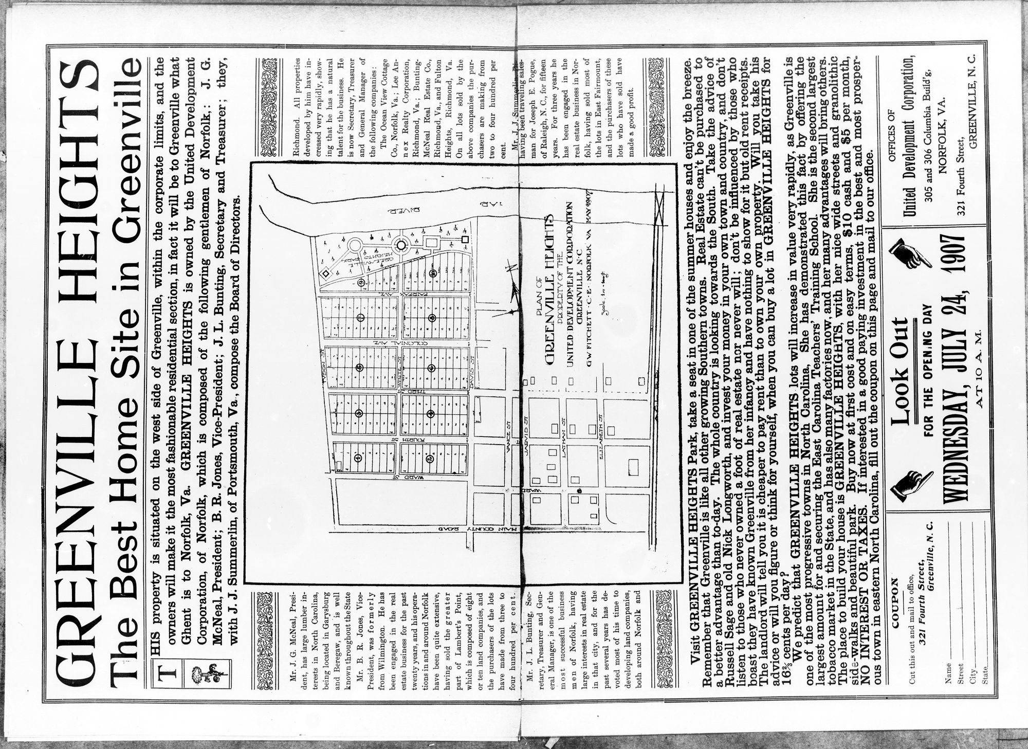 GREENVILLE, NORTH CAROLINA, JULY, 1907,