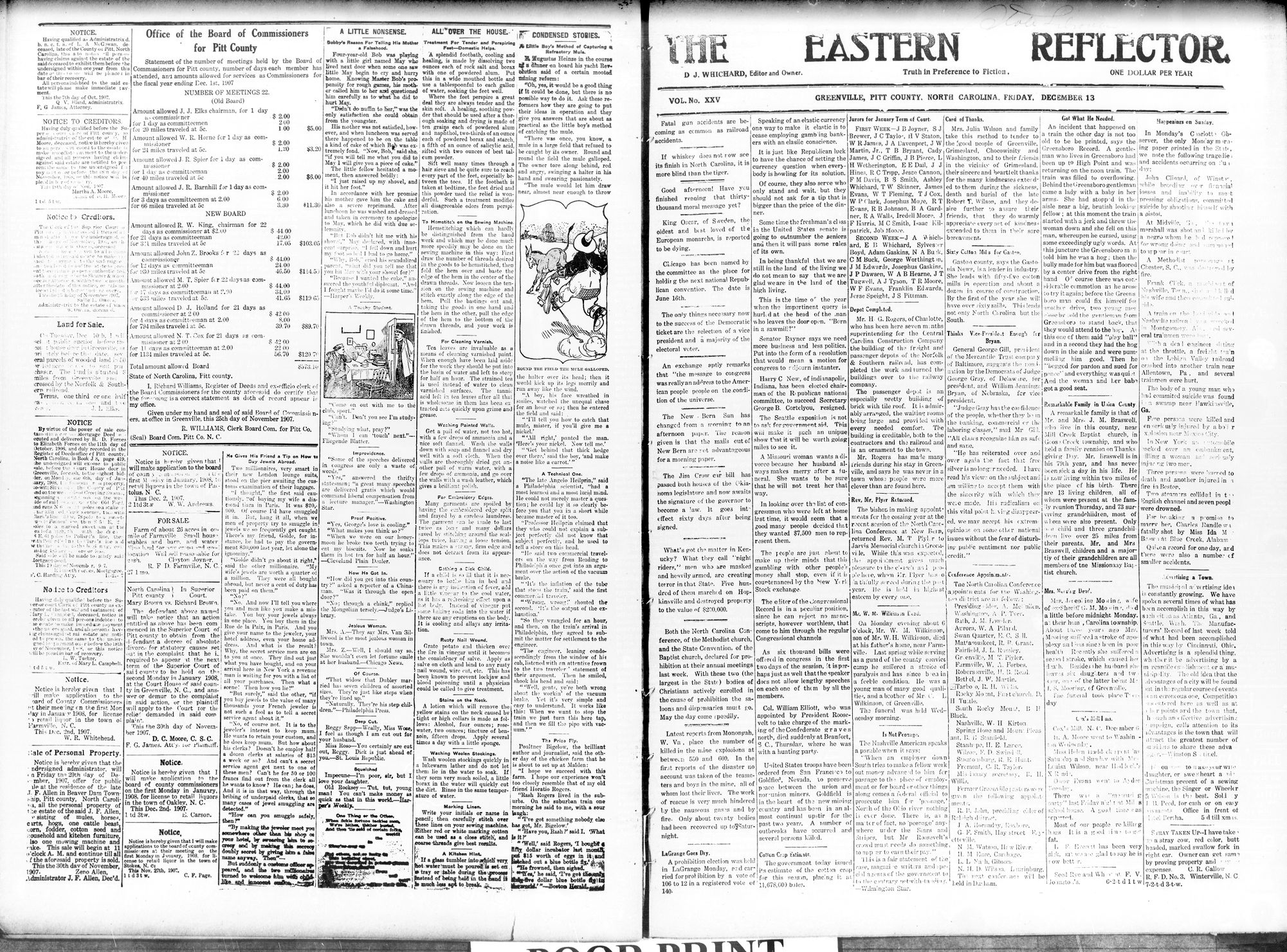 to his handsome new residence J go that he went to Norfolk rules reached here on Tues-