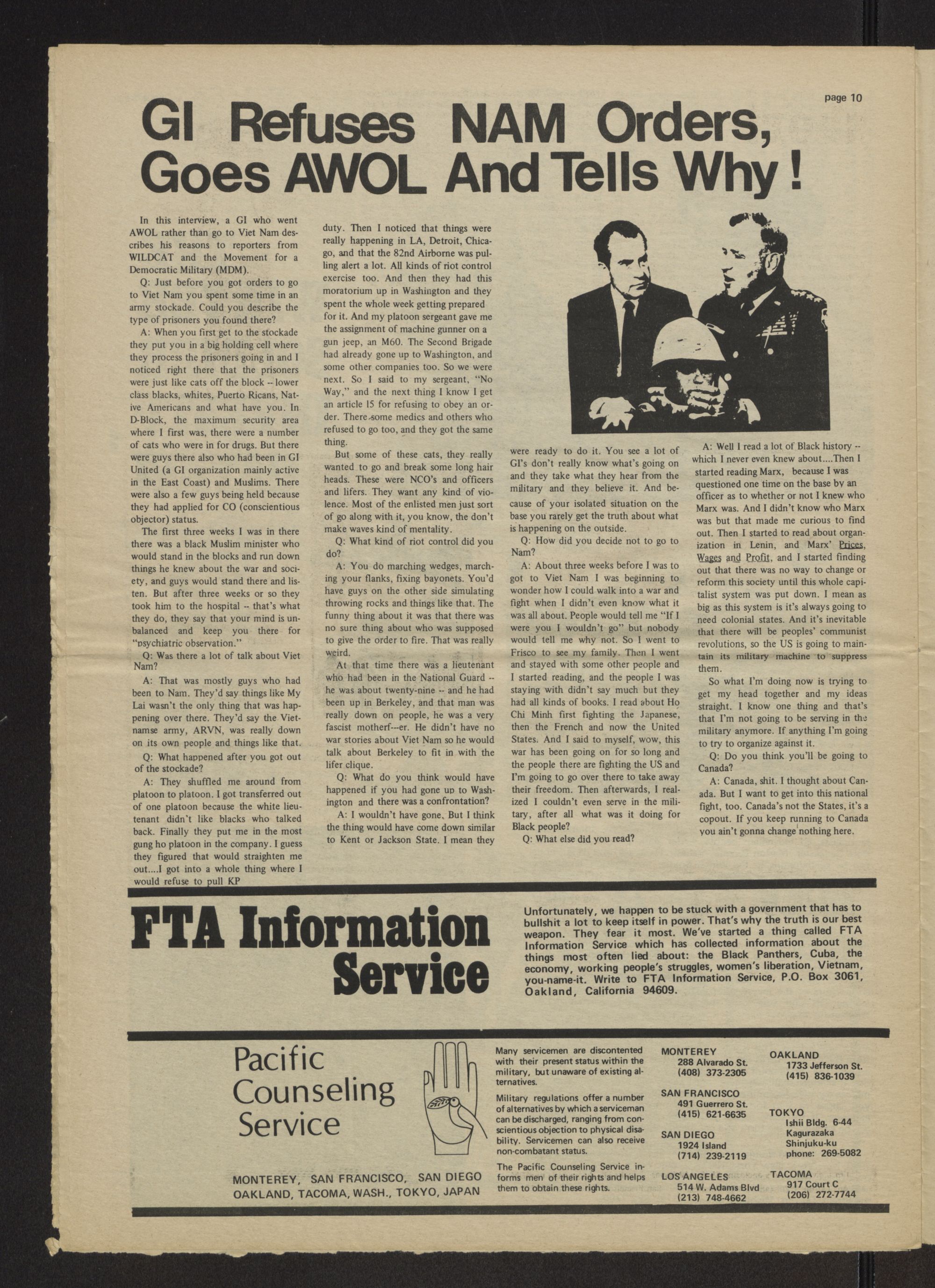 popular underground in this country that is daily harboring, " sertersandservicemen AWOL under the new rules