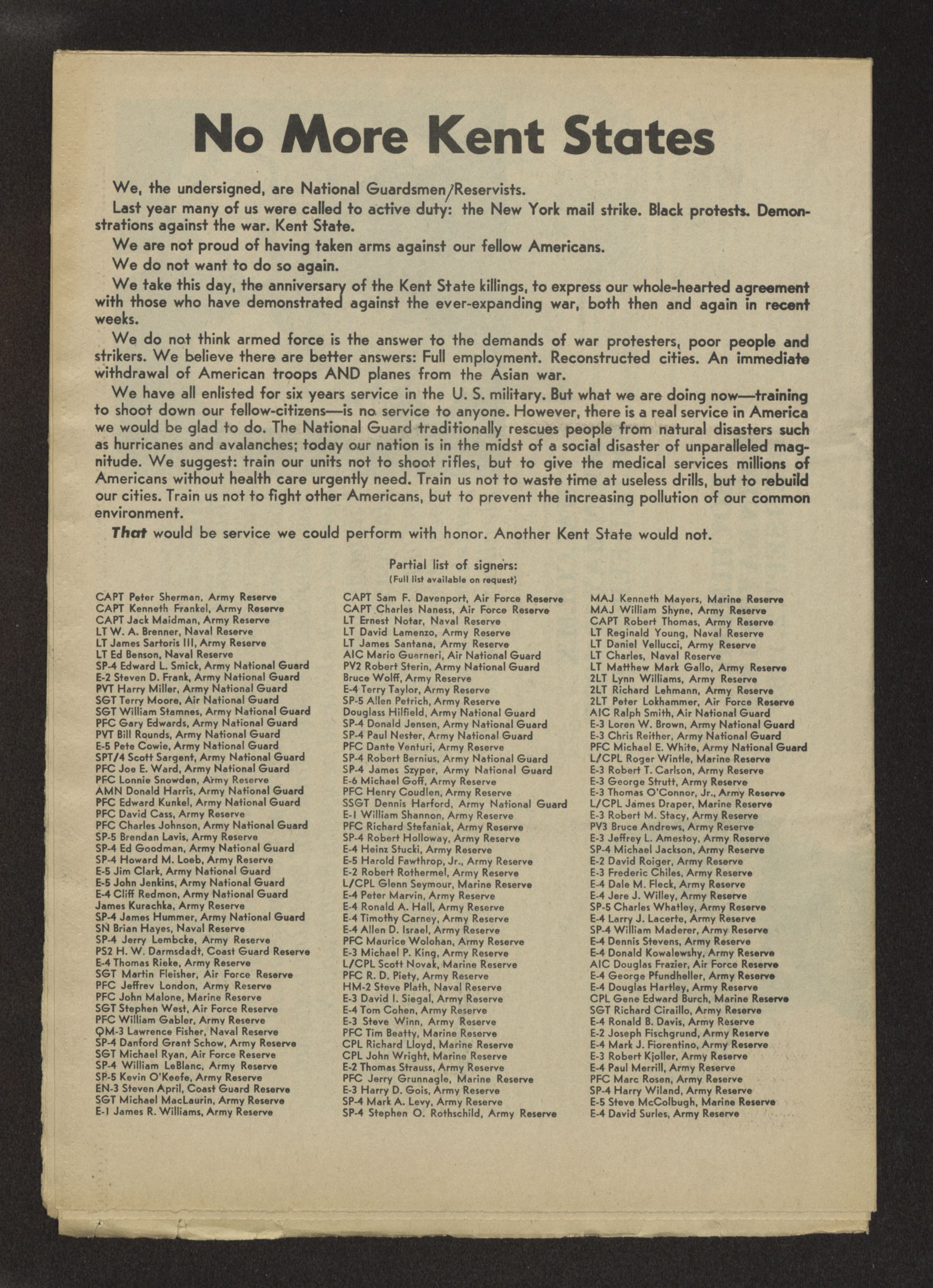 Partial list of signers: