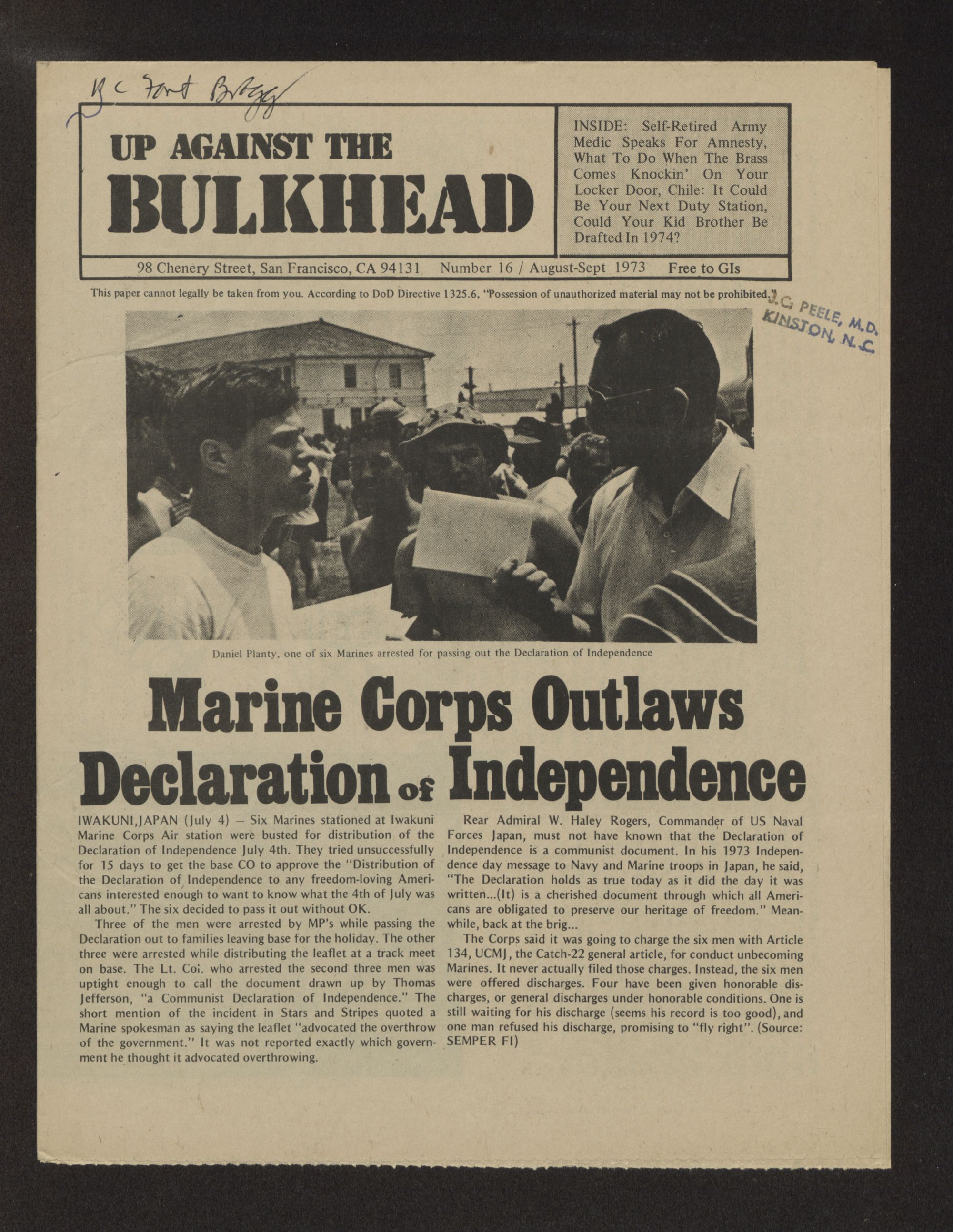 Marine spokesman as saying the leaflet ~~advocated the overthrow