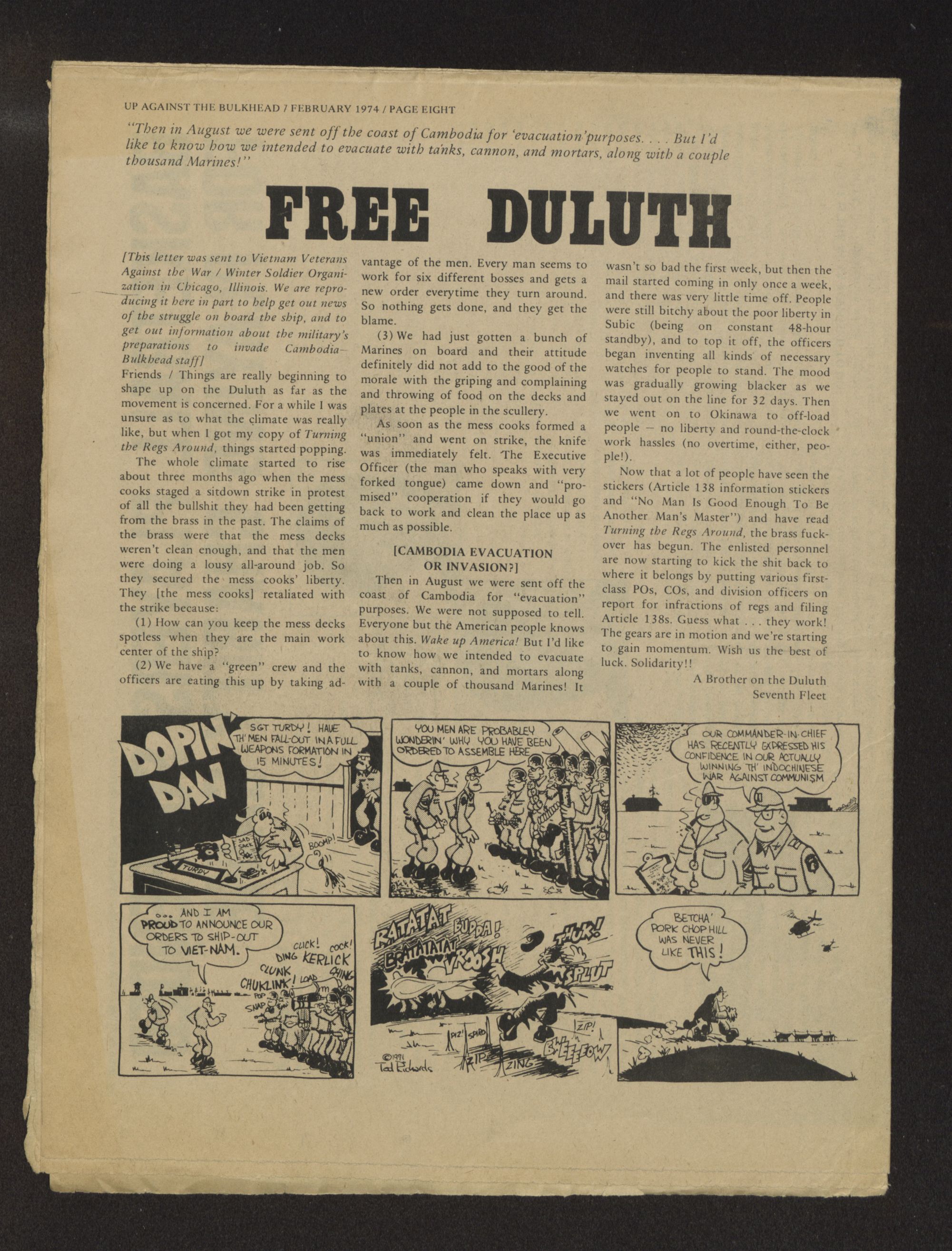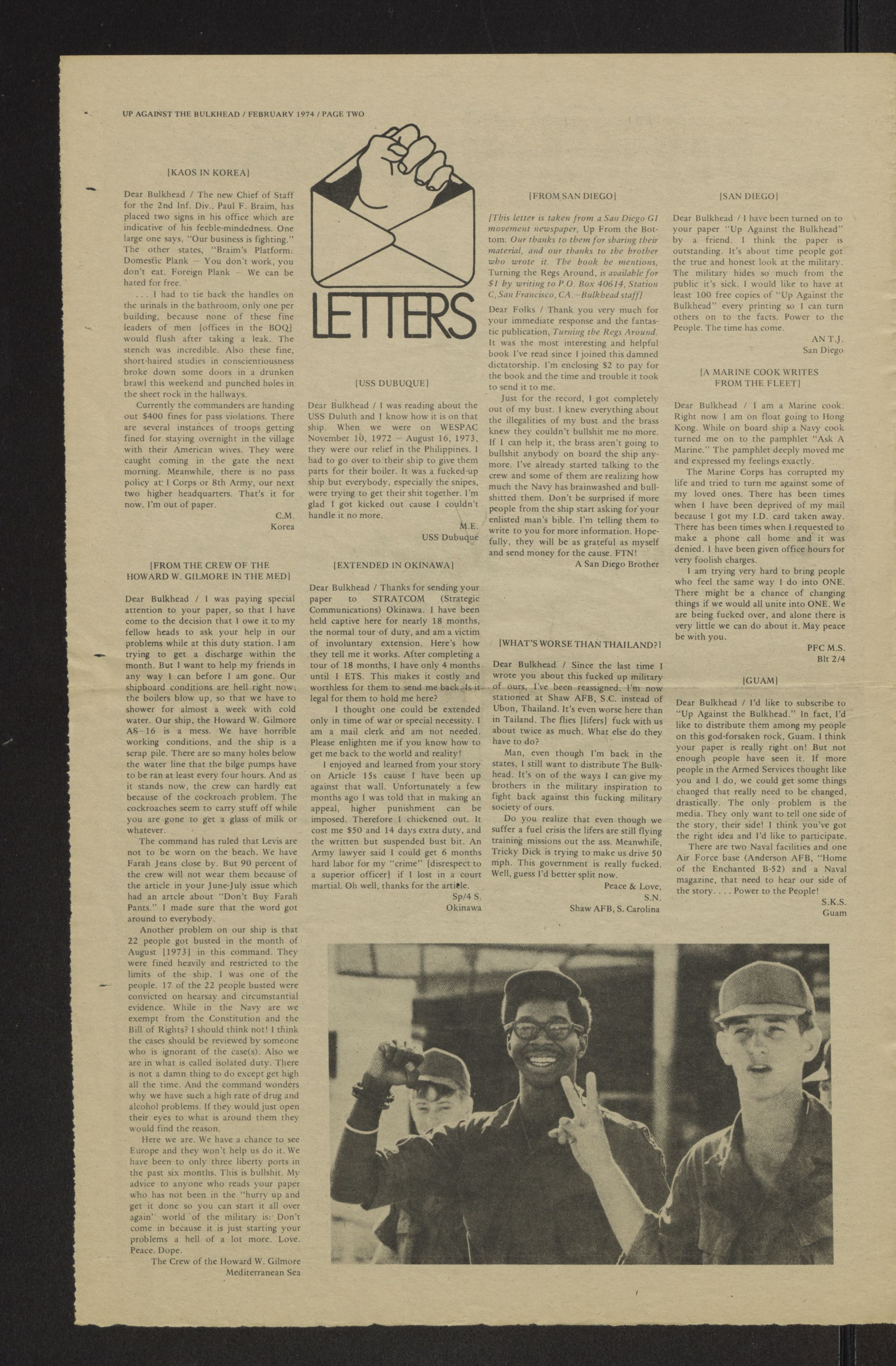 UP AGAINST THE BULKHEAD / FEBRUARY 1974 / PAGE ONE