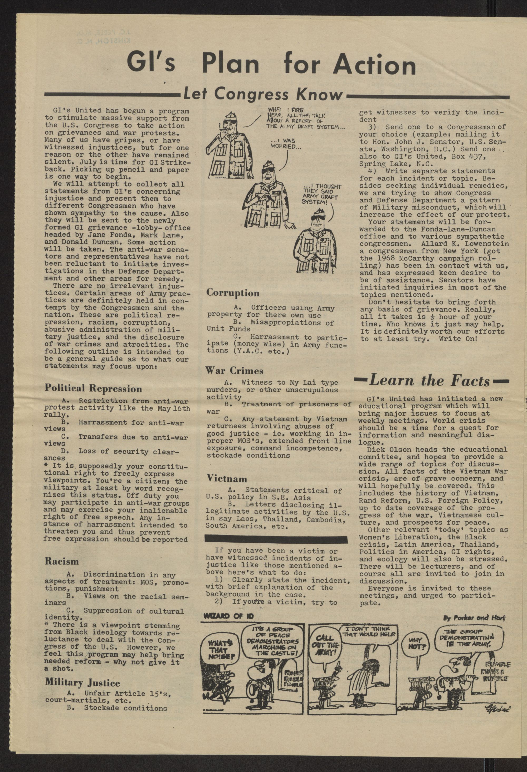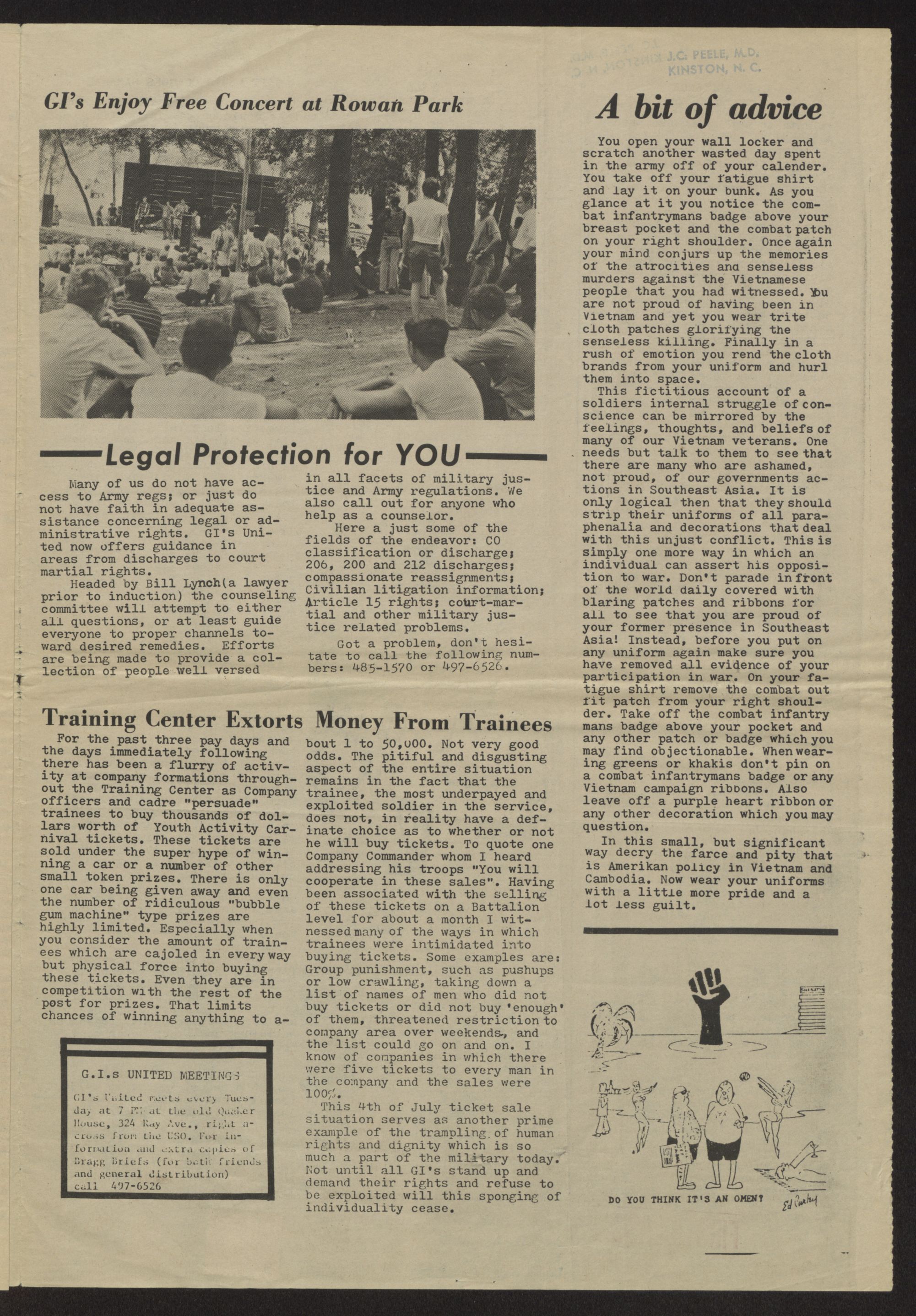 attorney J.C. Proctor, presumably referring to Fort Bragg ;I's, argued that there is a "need for isolation of troops -prior to con-bat so that no one can communicate" with them and that "the 1st amendment cannot be applied in a