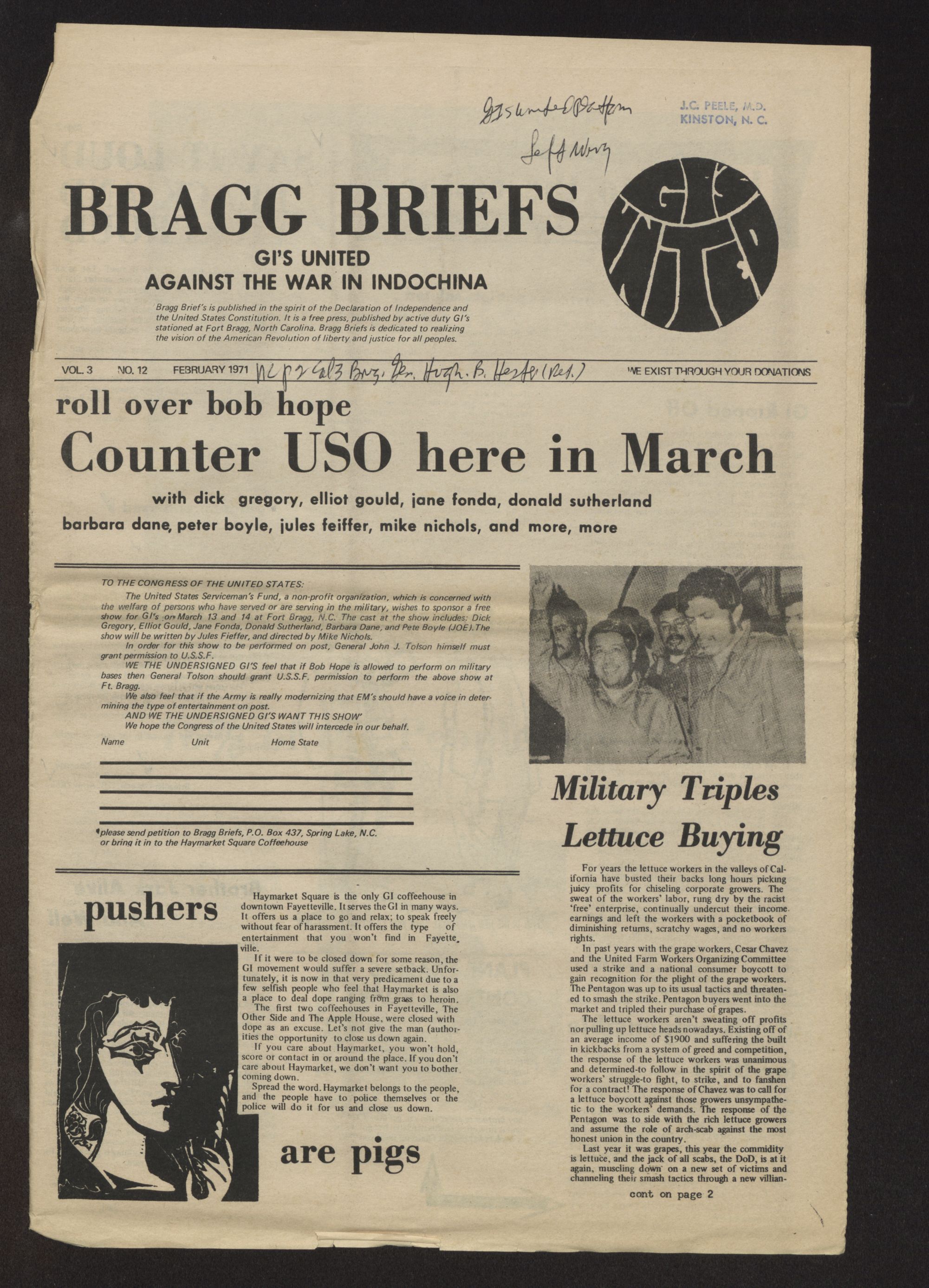 WE THE UNDERSIGNED GITS feel that if Bob Hope is allowed to perform on military
