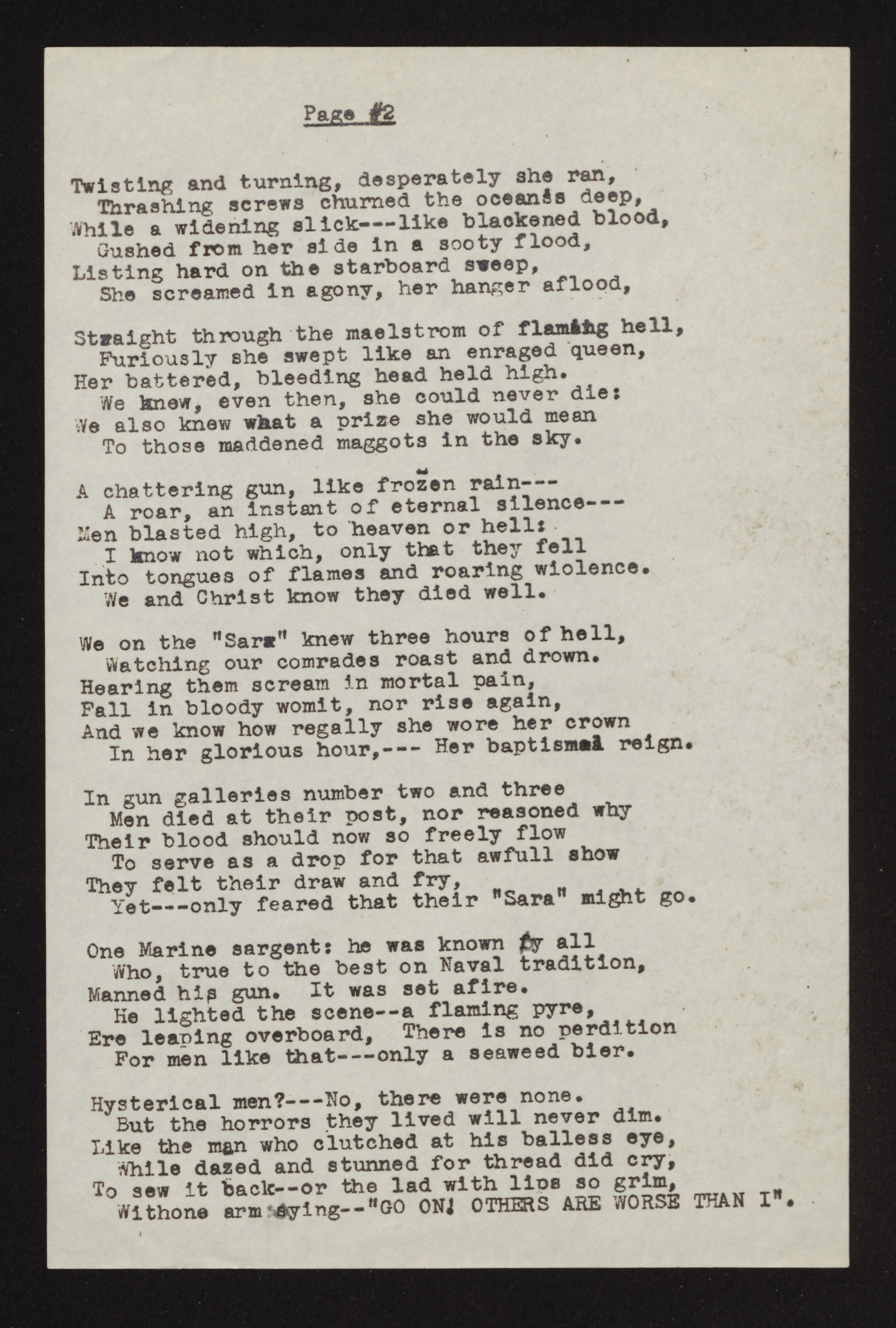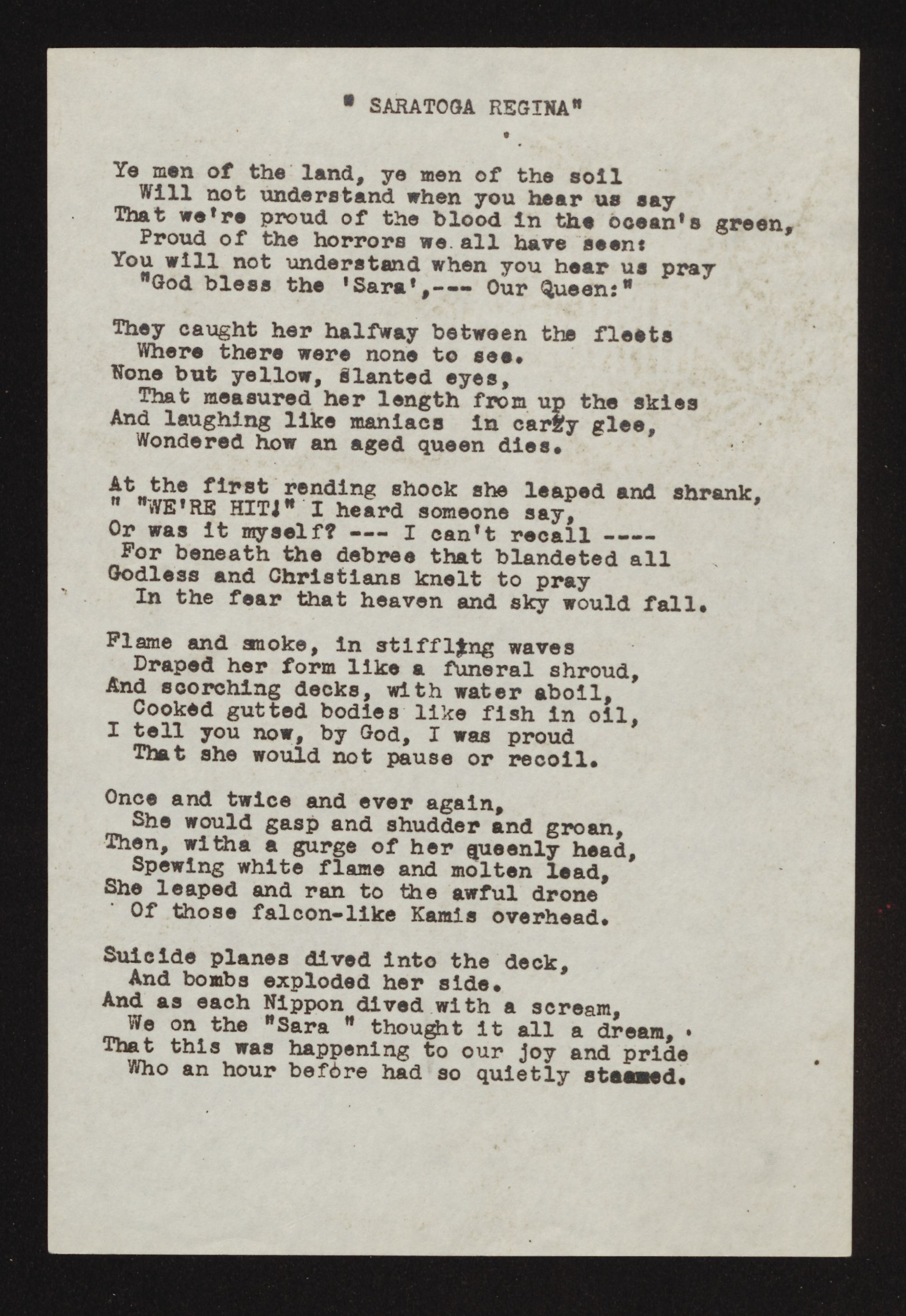 "God bless the 'Sara", --- Our Queen:"