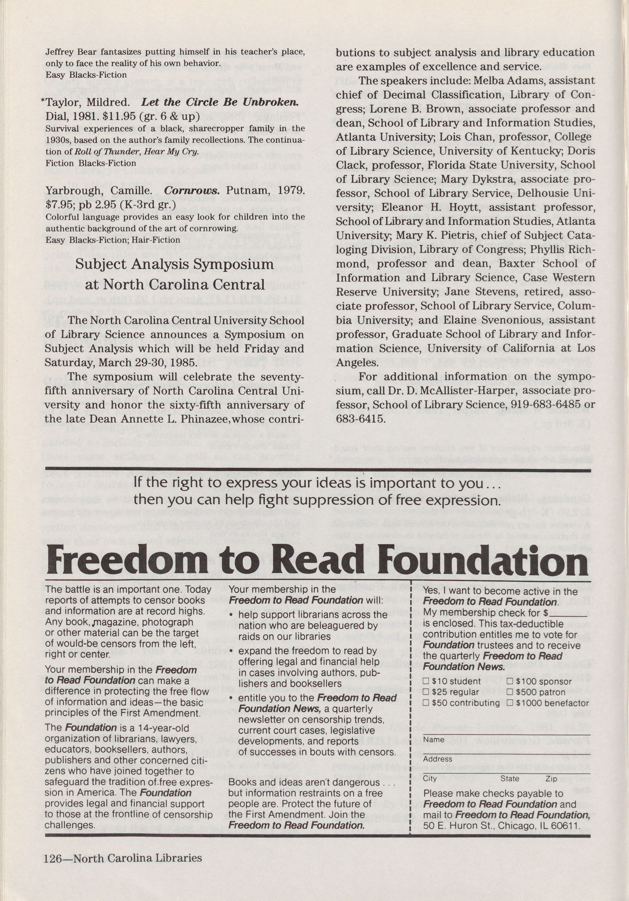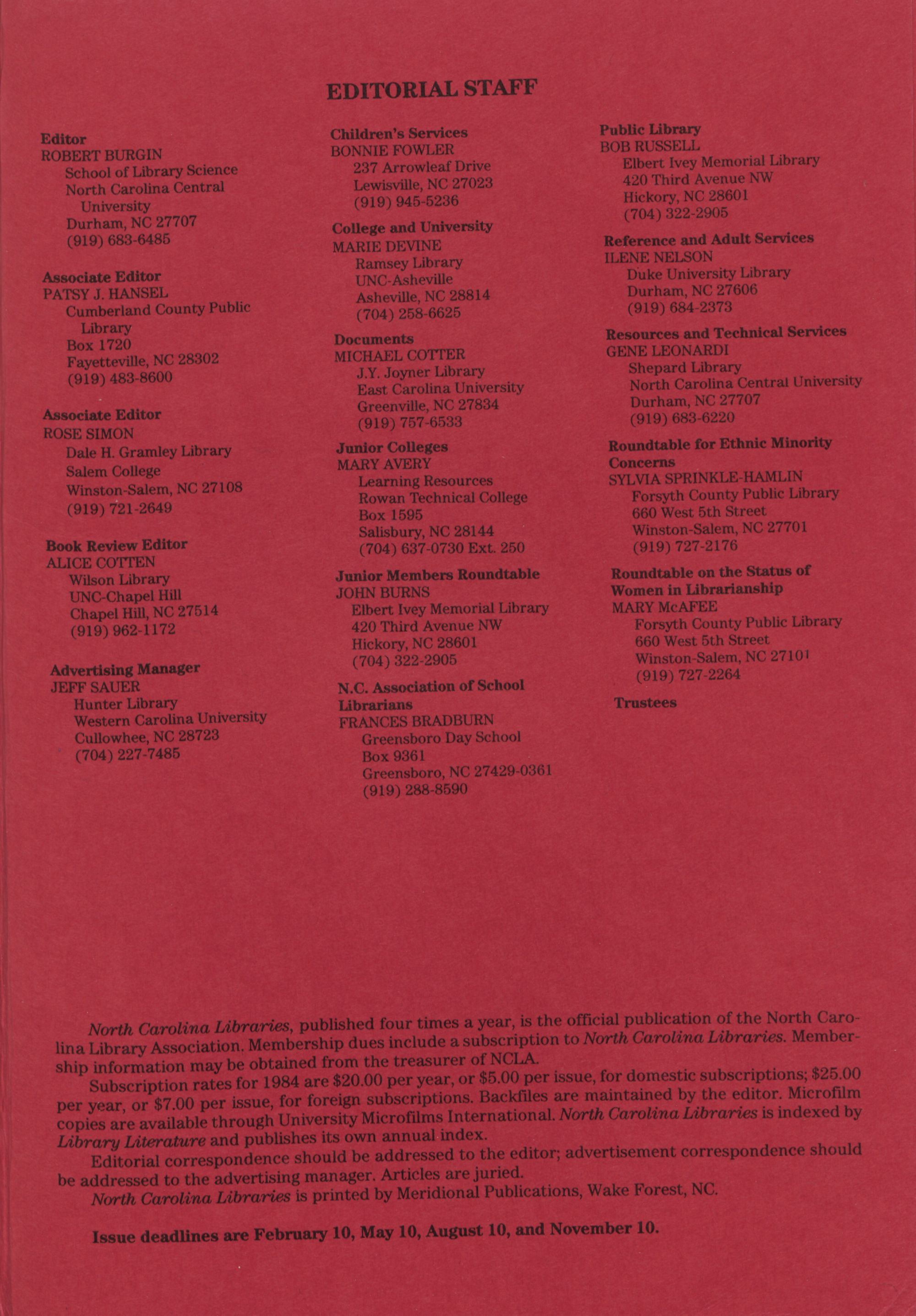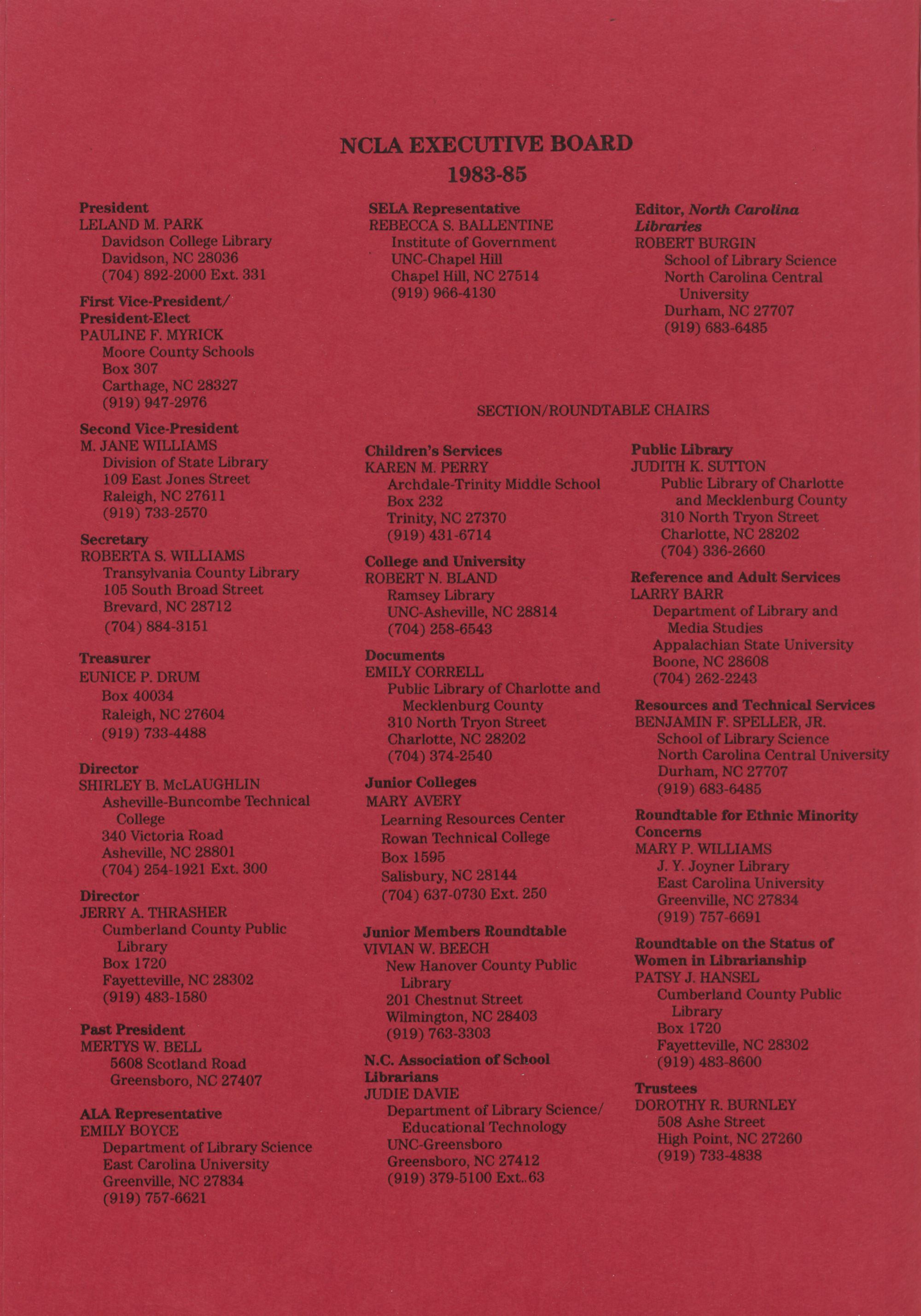 UNC-Chapel Hill JOHN BURNS) Women in Librarianship