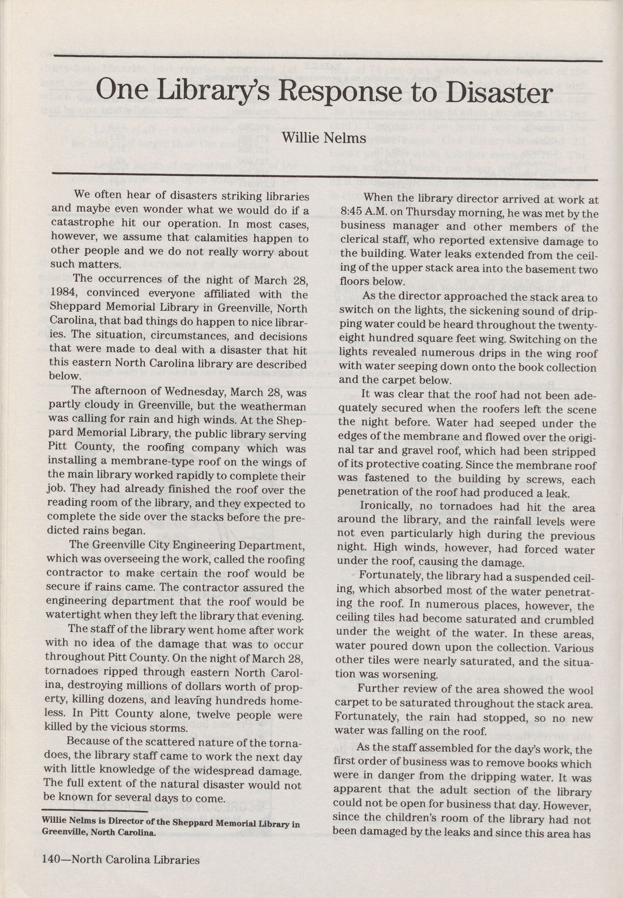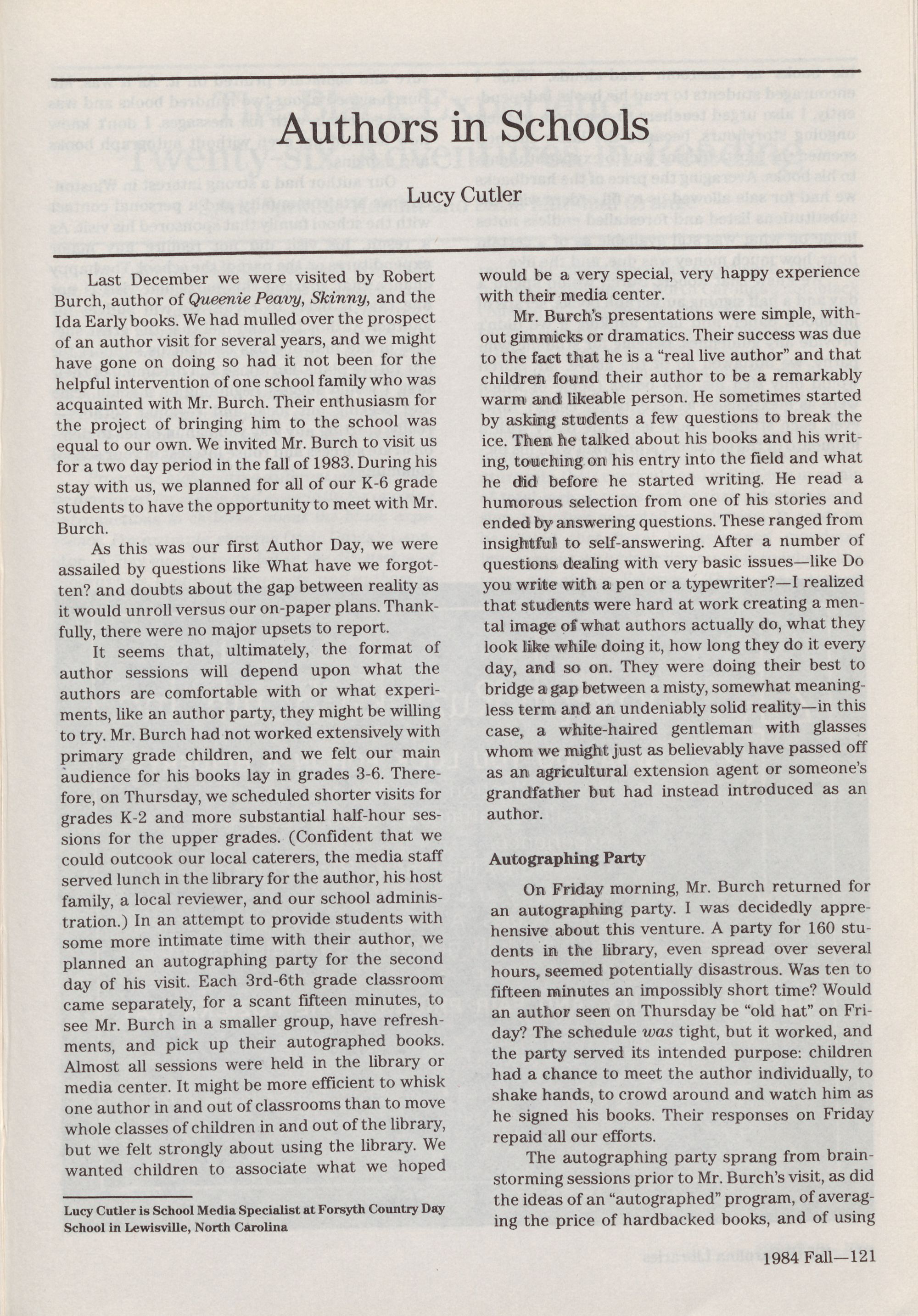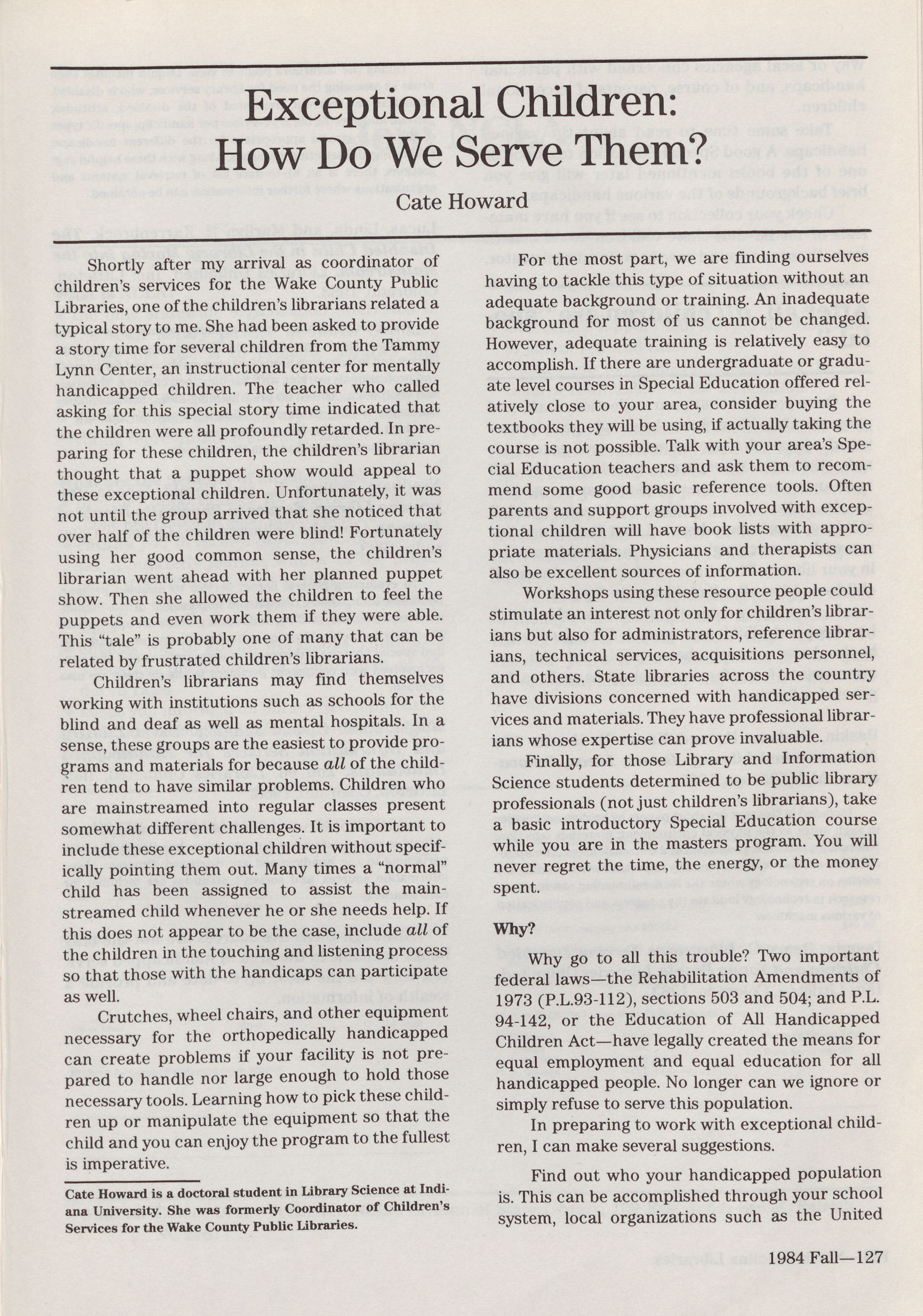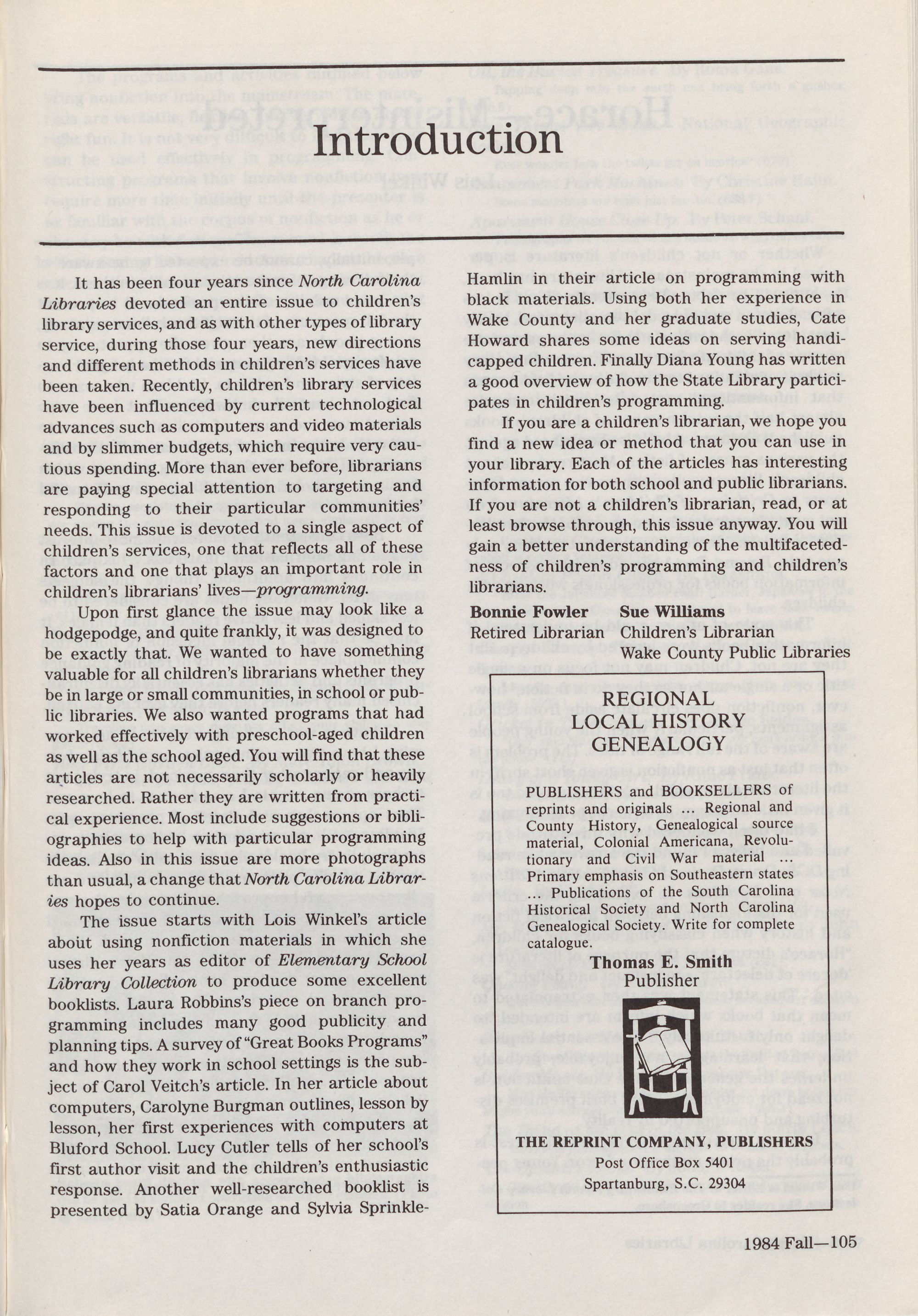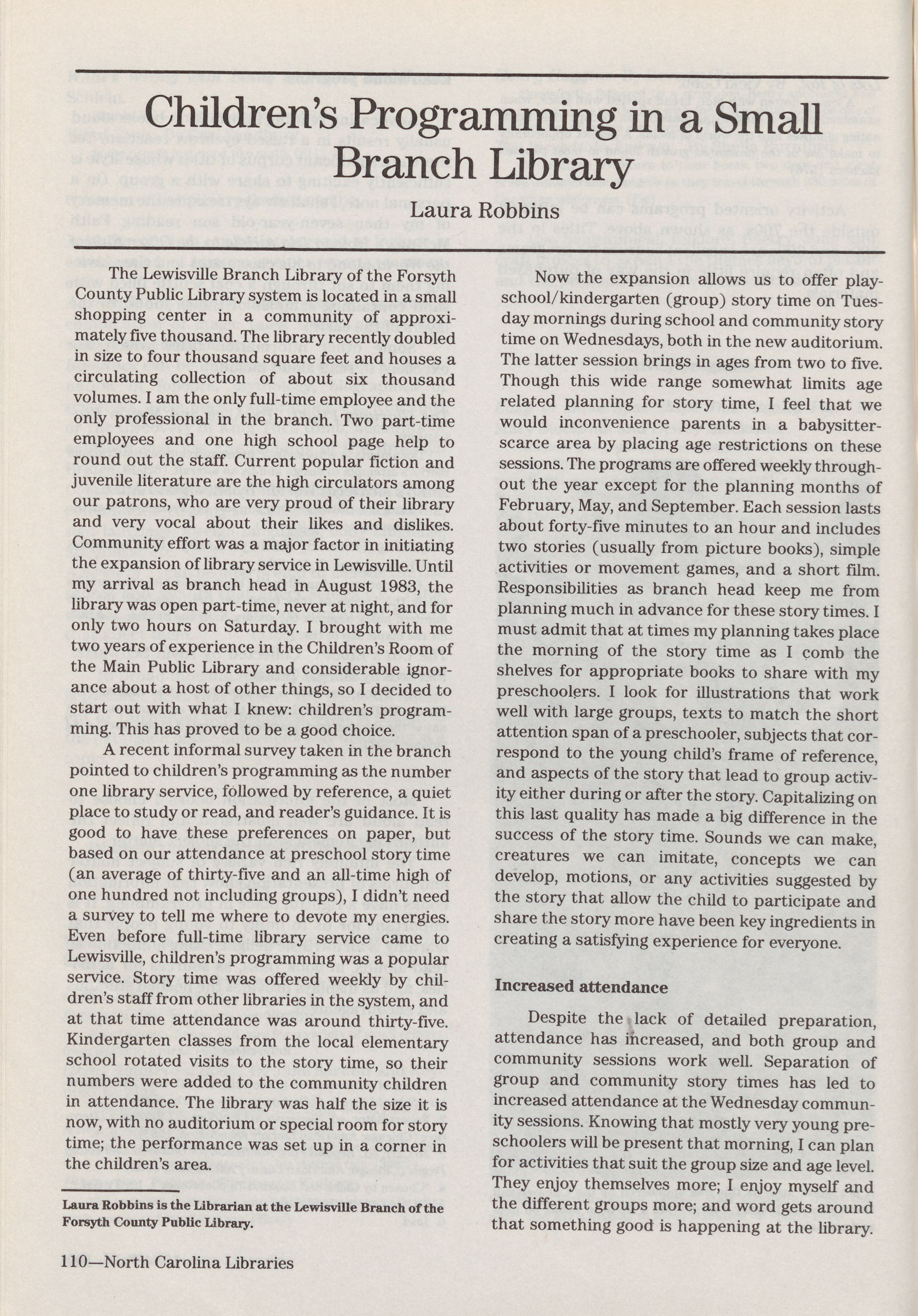 School of Library Science 237 Arrowleaf Drive ~Elbert Ivey Memorial Library