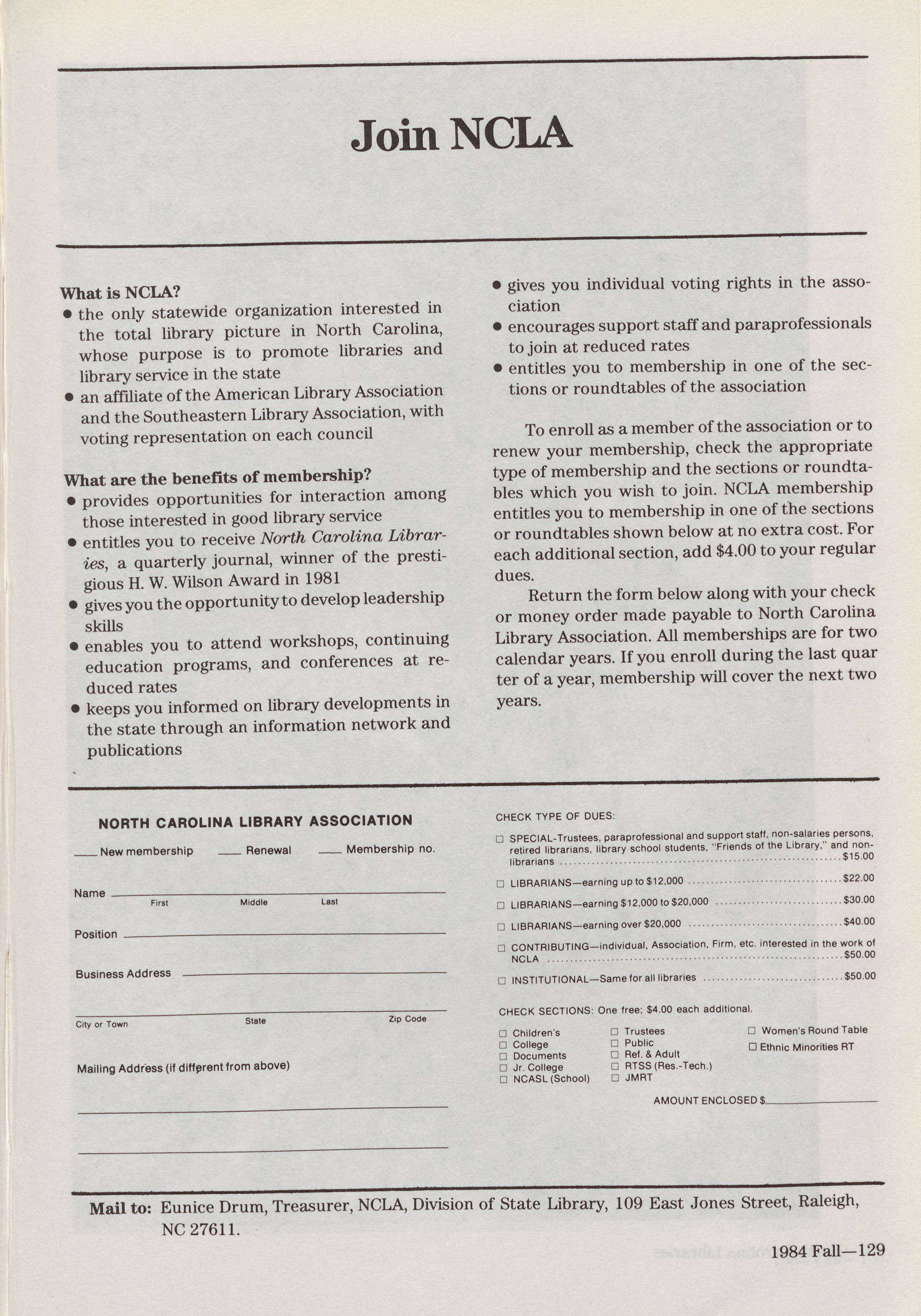 Chapel Hill, NC 27514 Elbert Ivey Memorial Library = MARY McAFEE