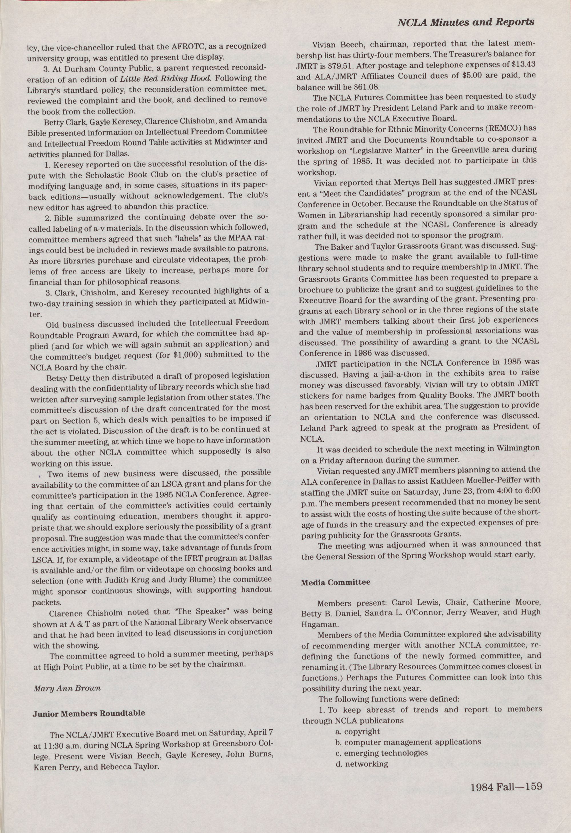 Wilson Library Junior Members Roundtable © "sRoundtable on the Status of