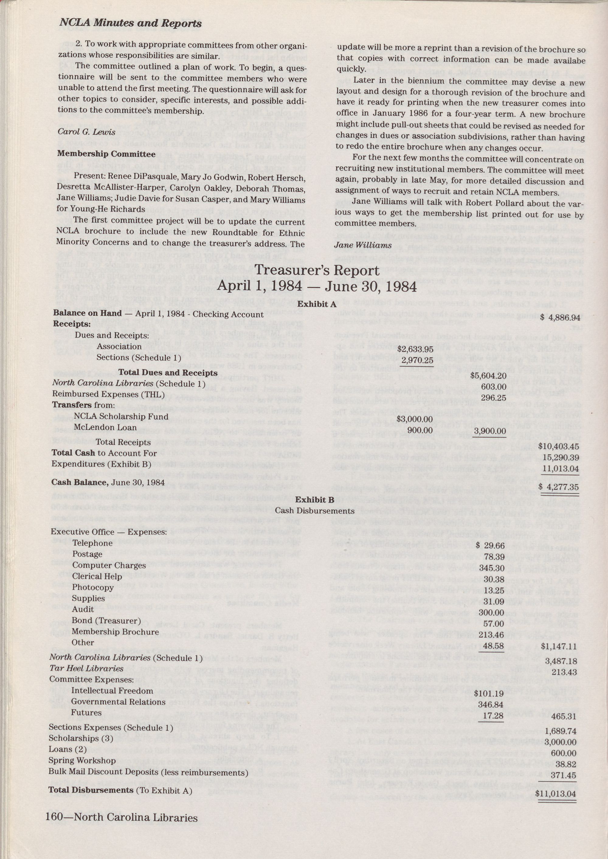 Balance on Hand " April 1, 1984 - Checking Account $ 4,886.94