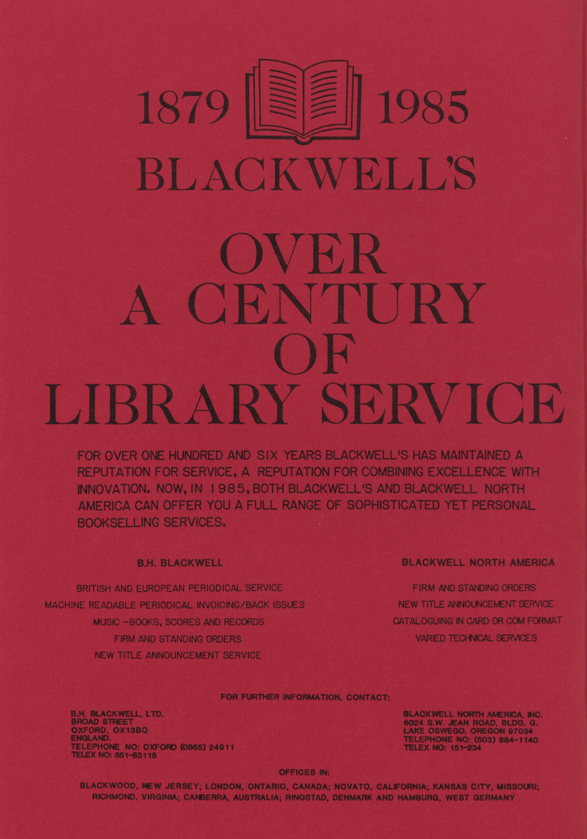 INNOVATION. NOW, IN 1985,BOTH BLACKWELL'S AND BLACKWELL NORTH