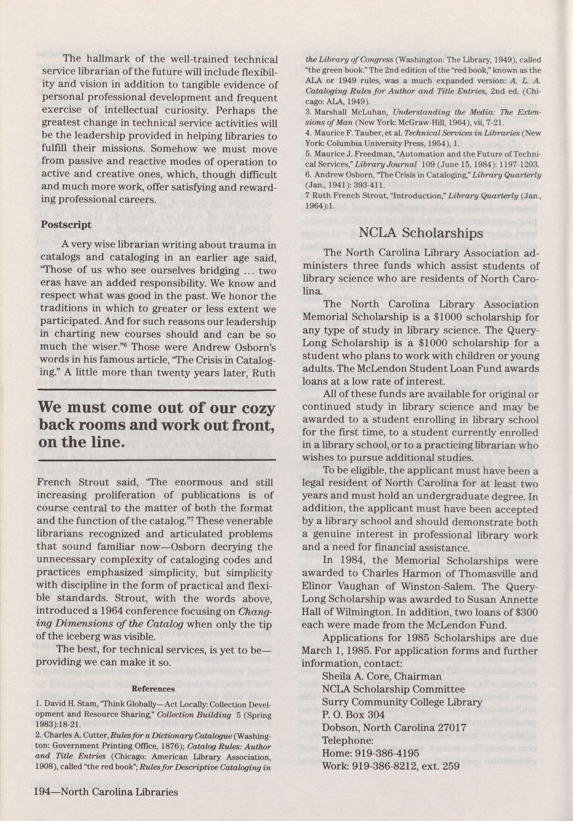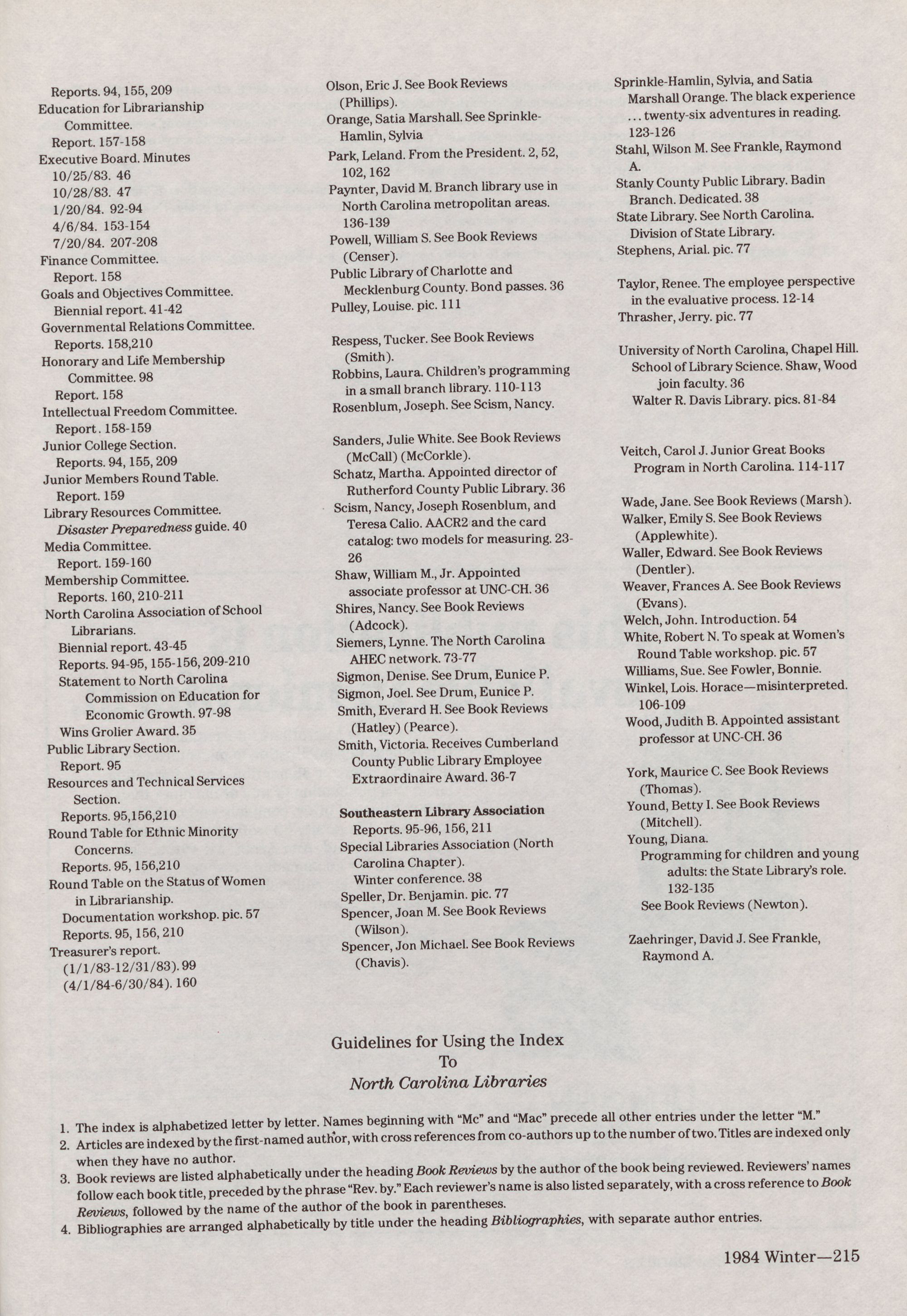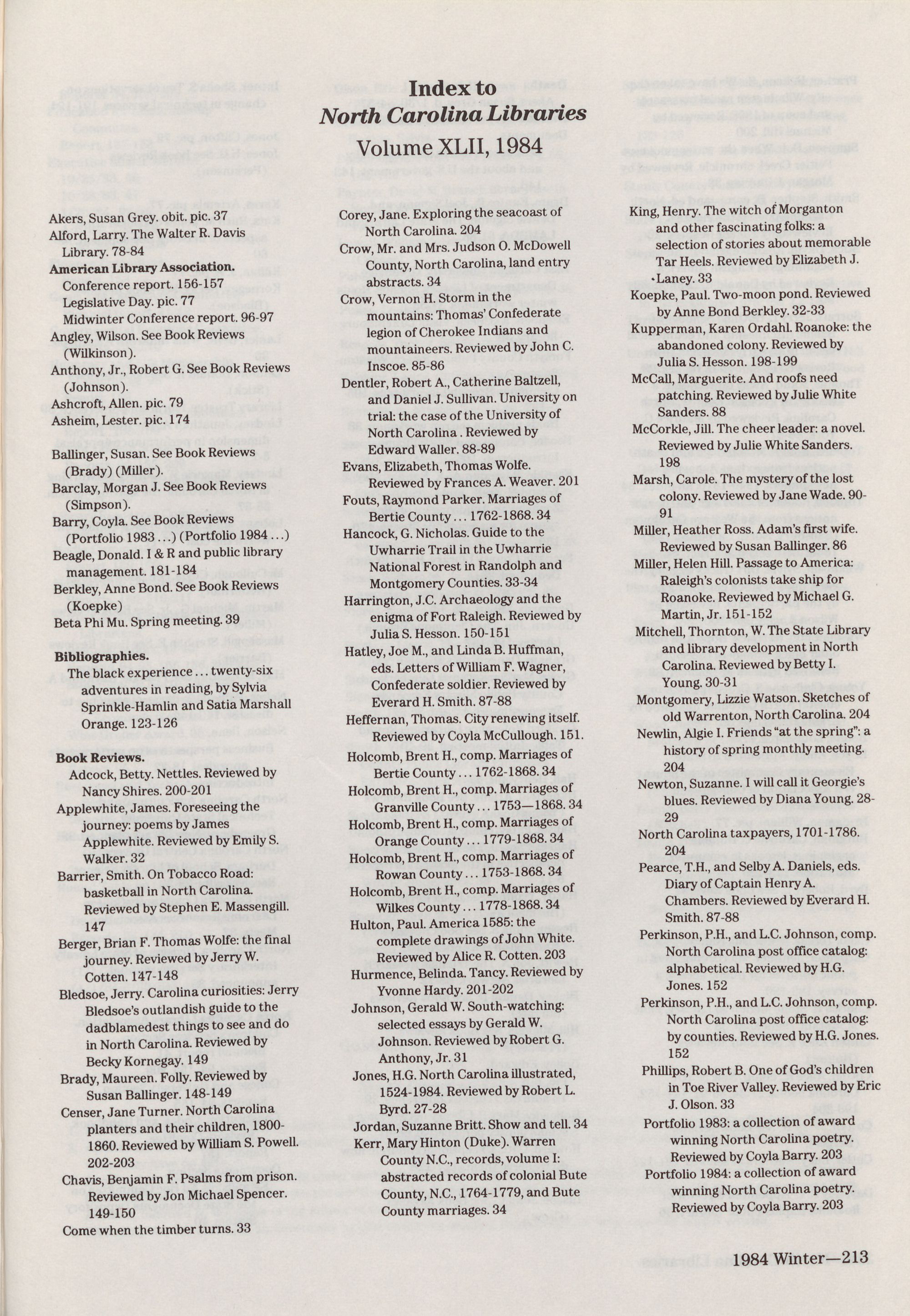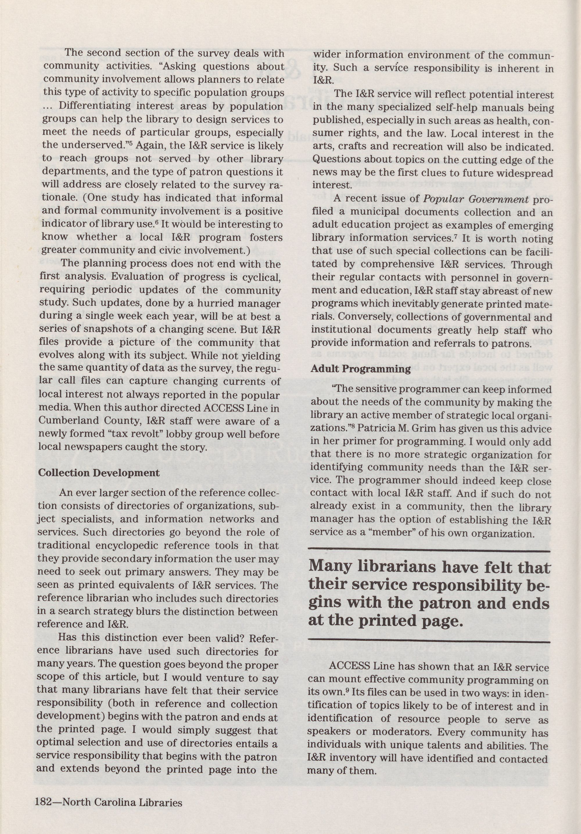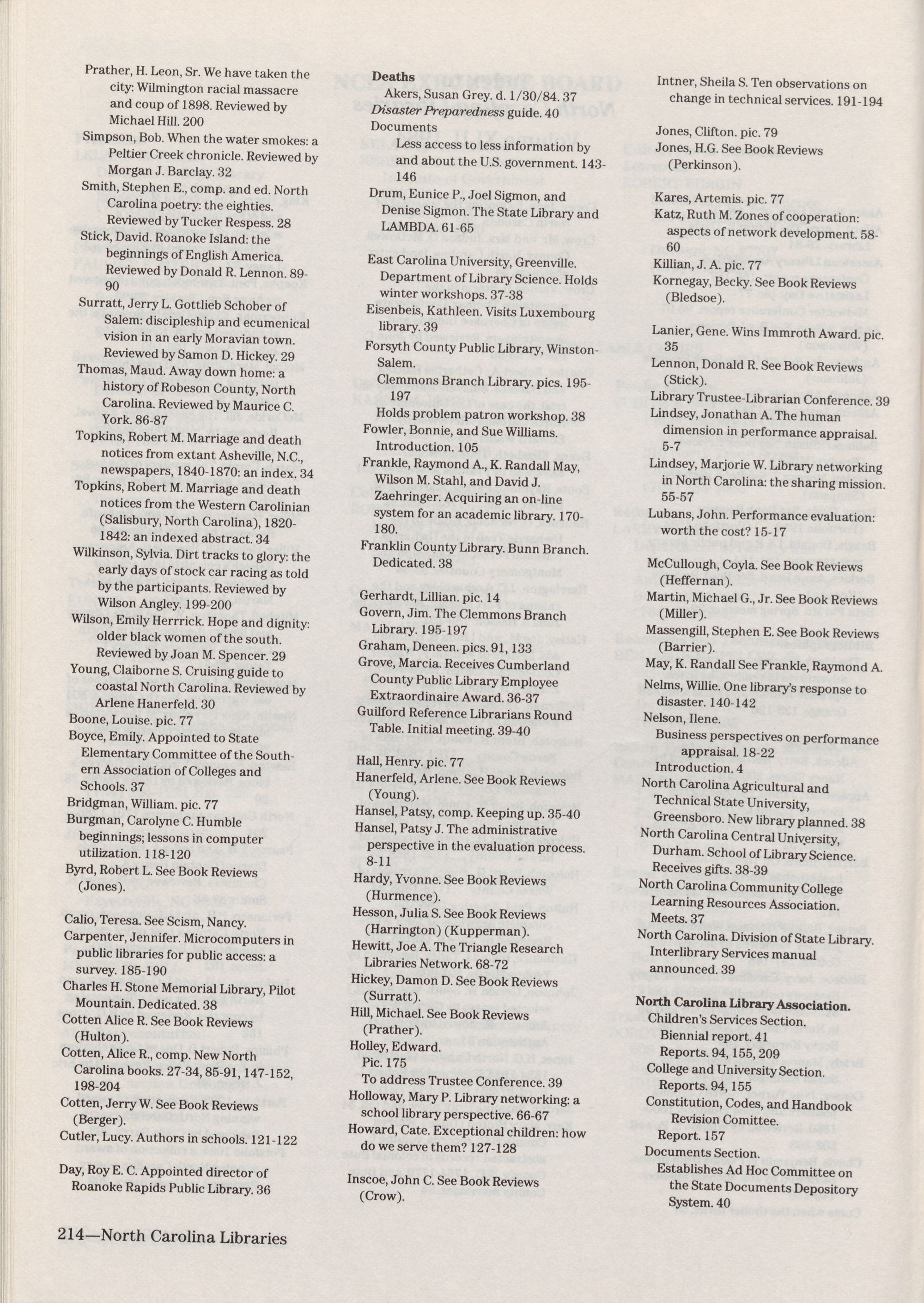 Services,� North Carolina Libraries 42 (Winter 1984): 191- p. 163; Ebsco, p. 184; Phiebig, p. 184; Reprint Company, p. 211;