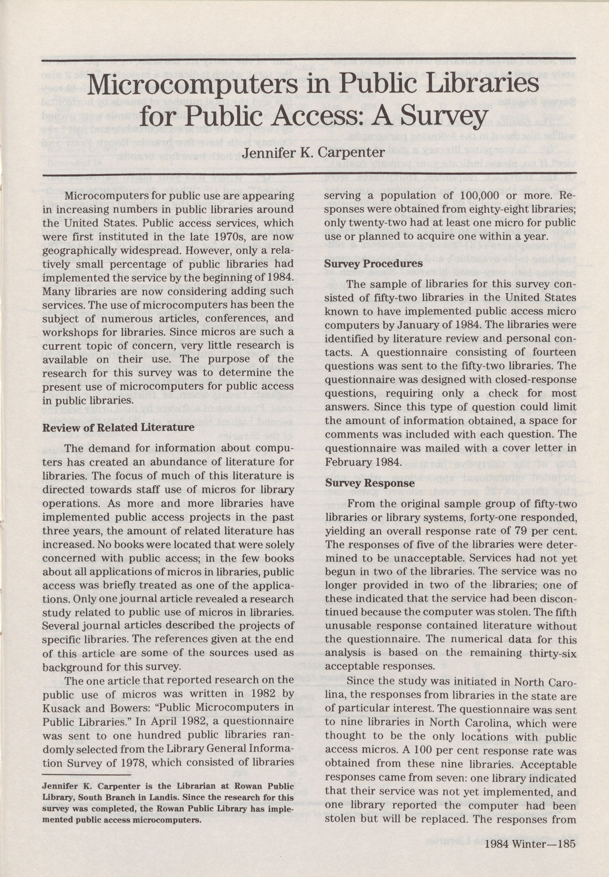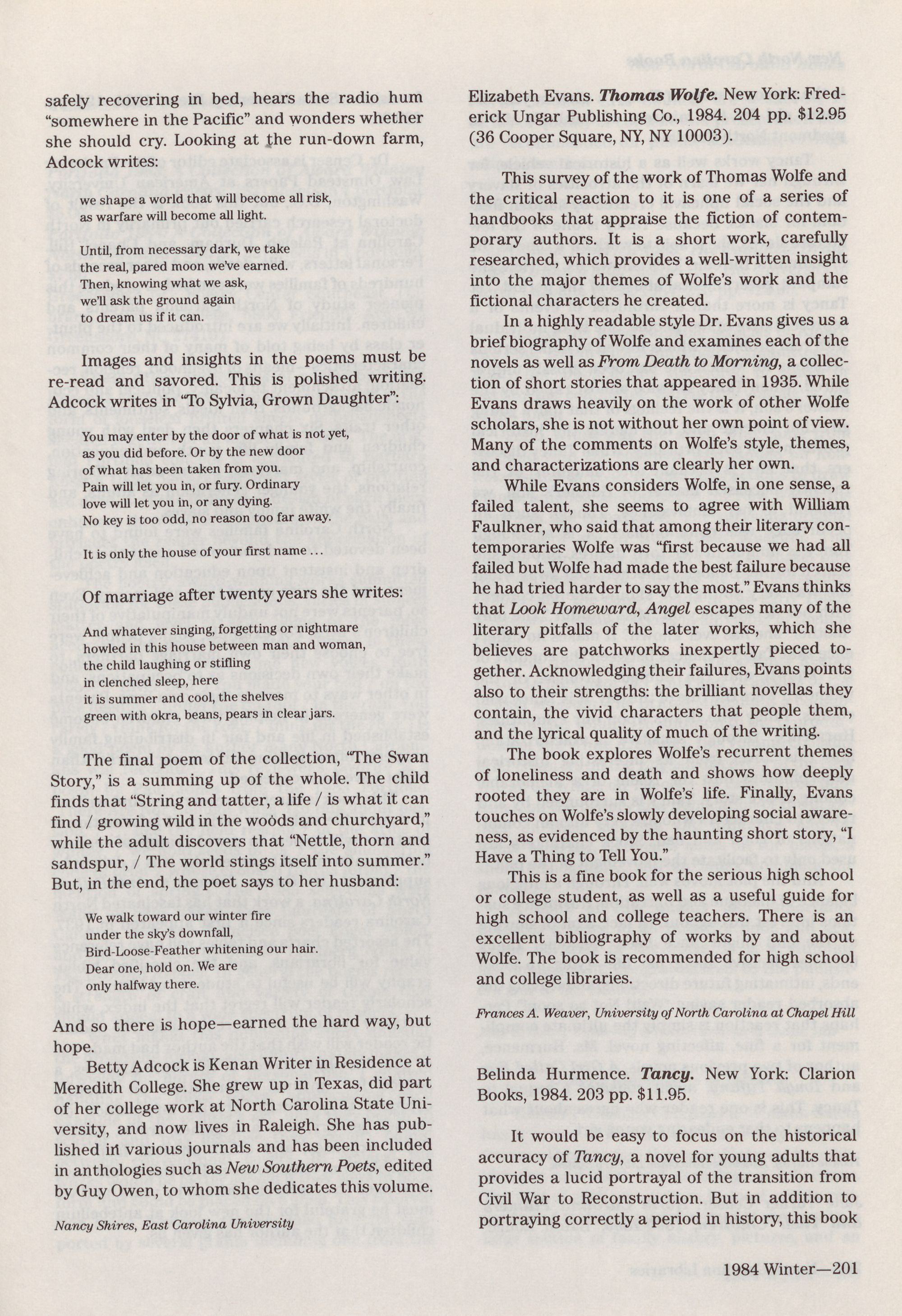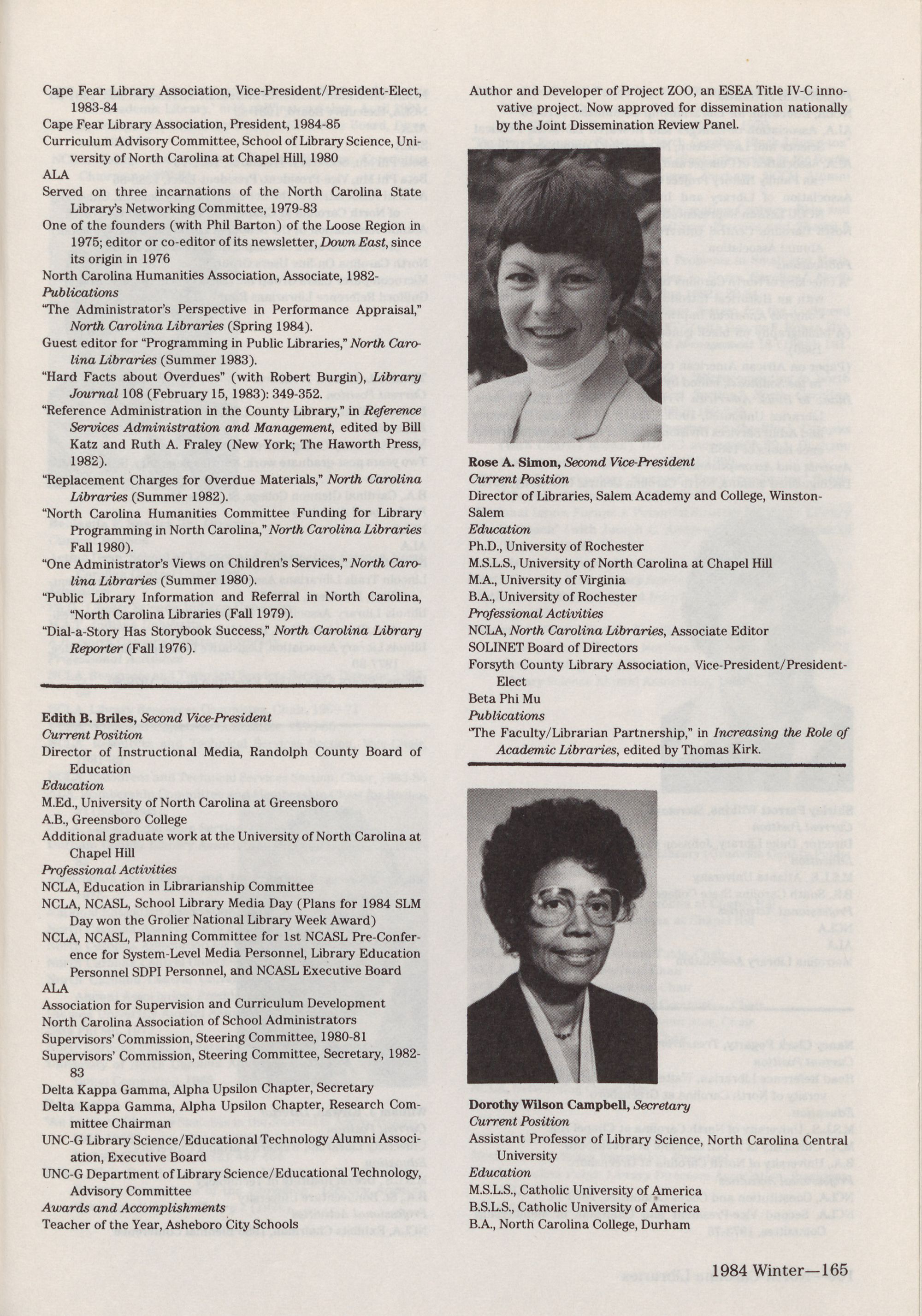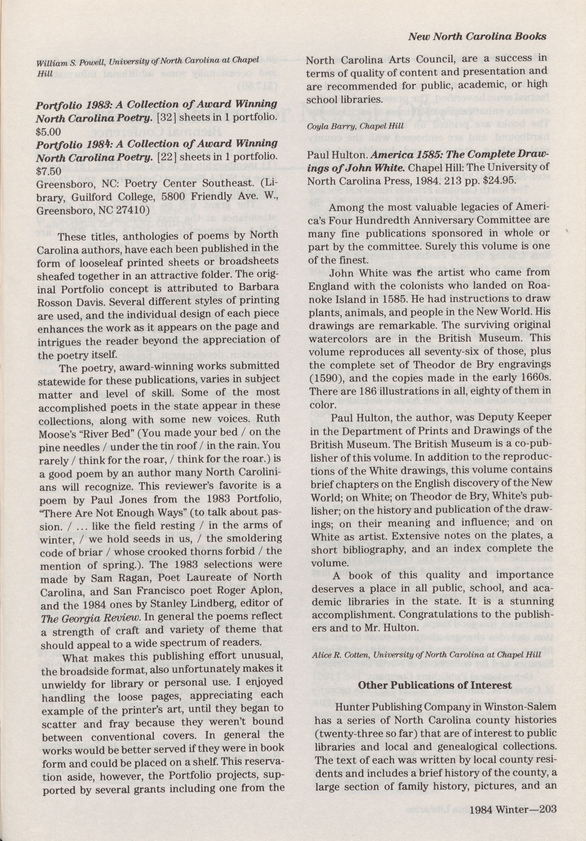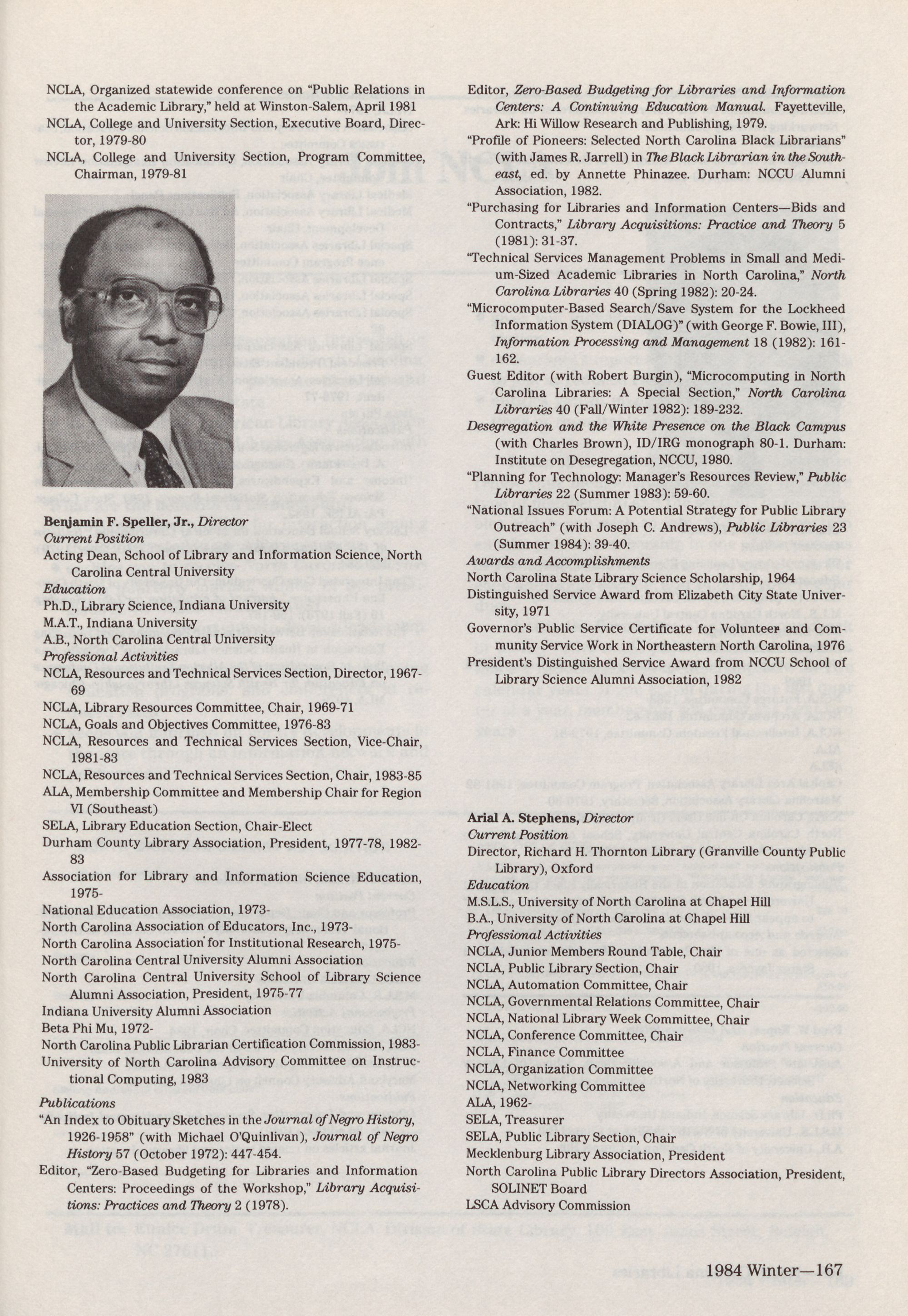 Services,� North Carolina Libraries 42 (Winter 1984): 191- p. 163; Ebsco, p. 184; Phiebig, p. 184; Reprint Company, p. 211;