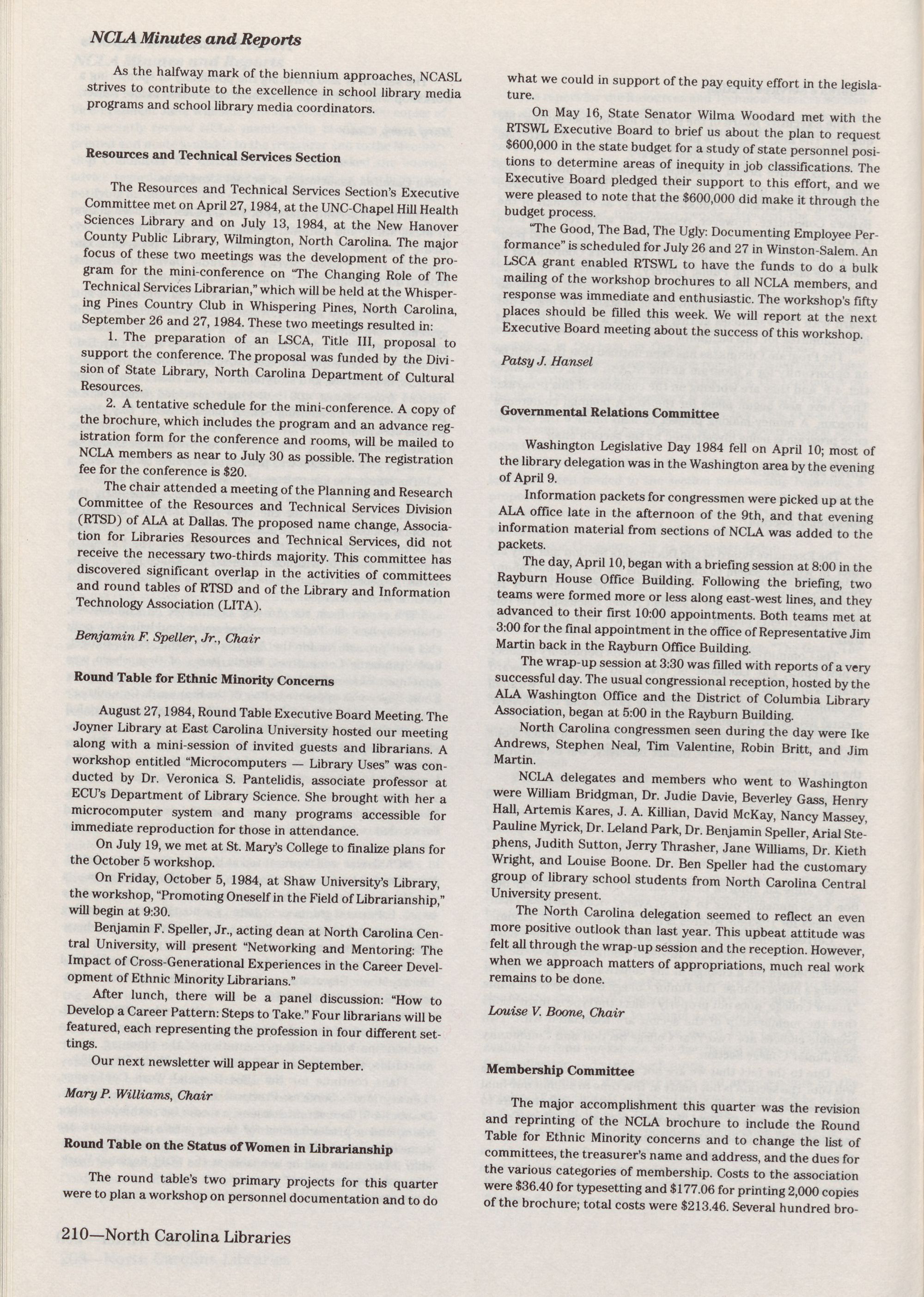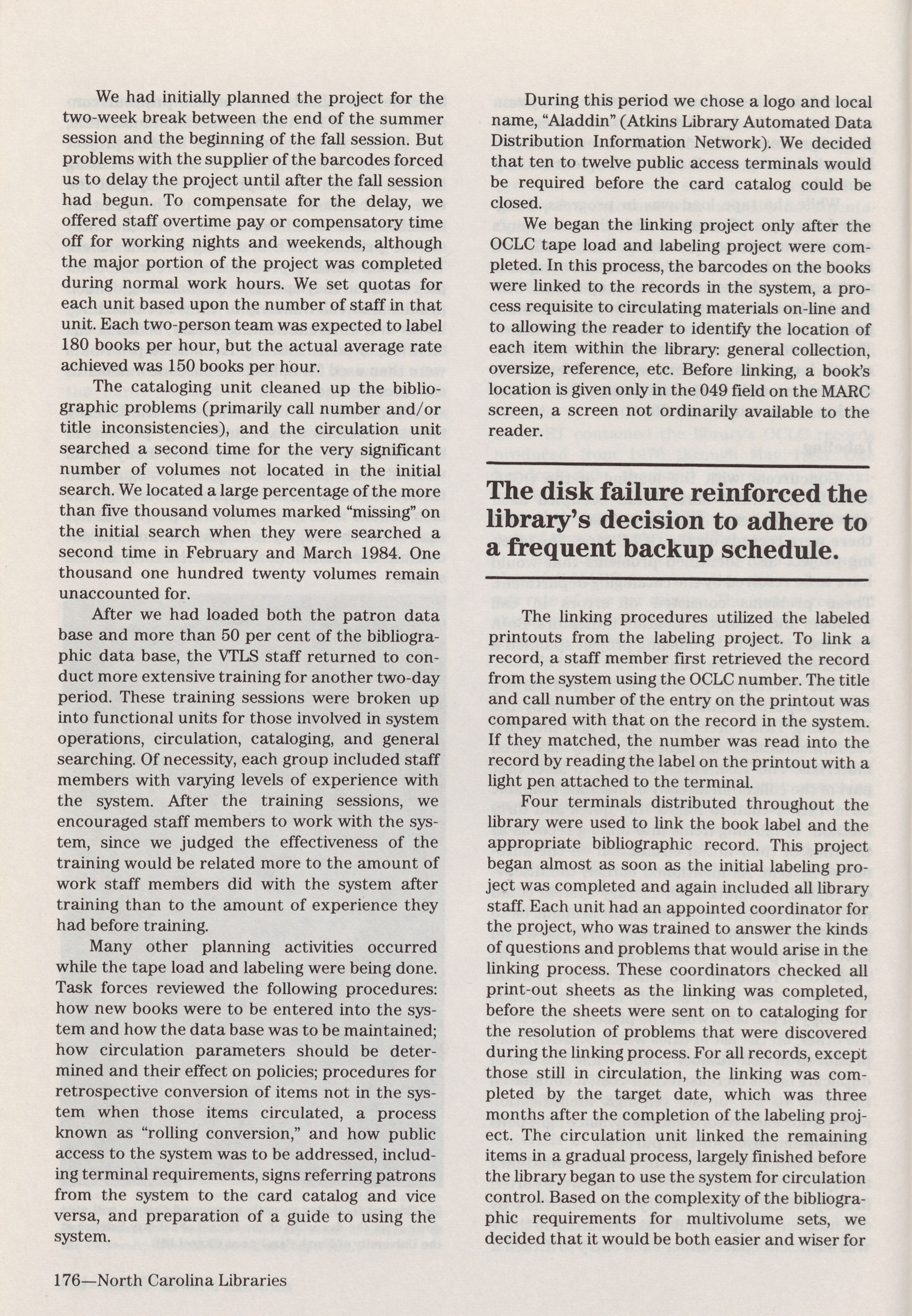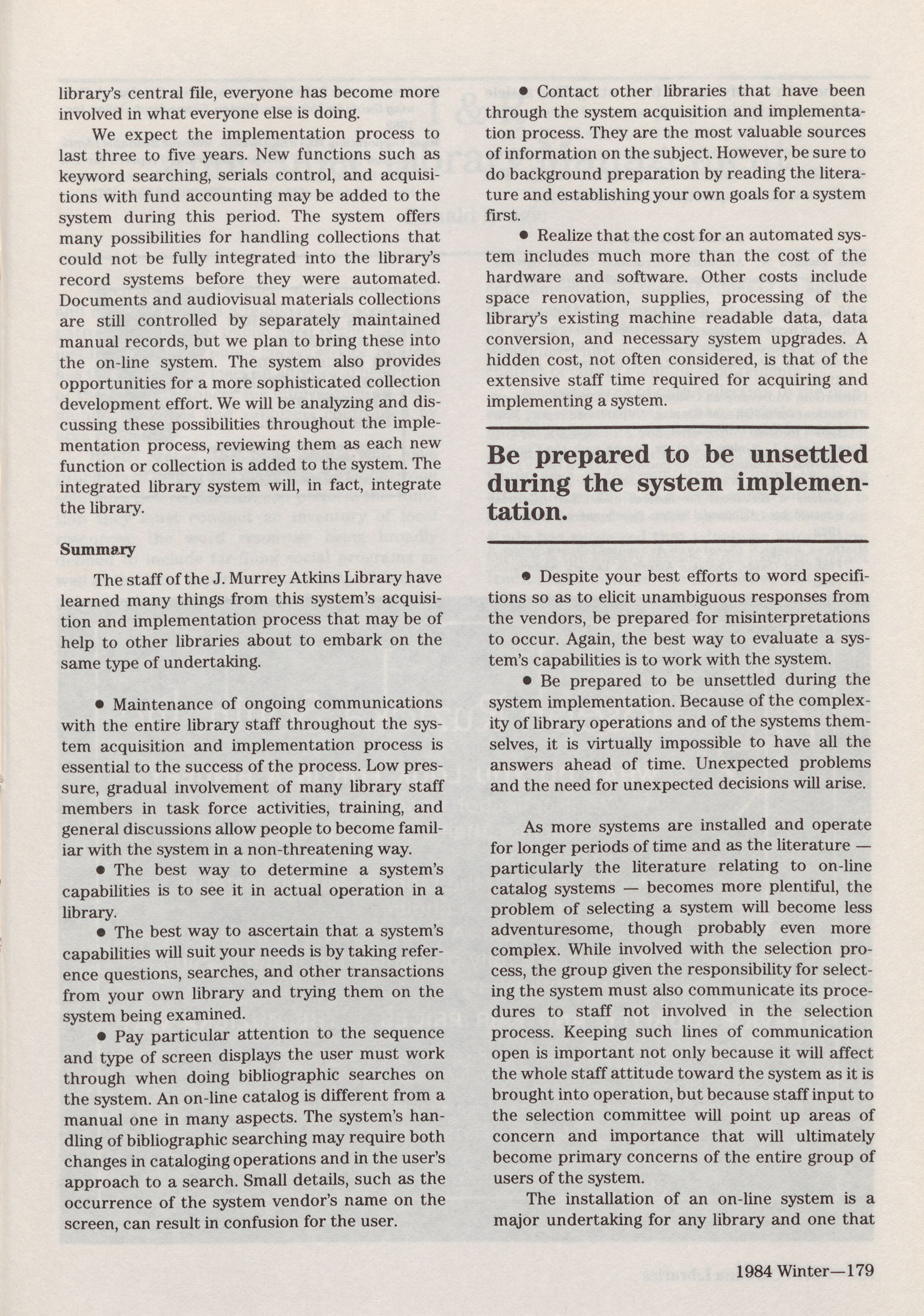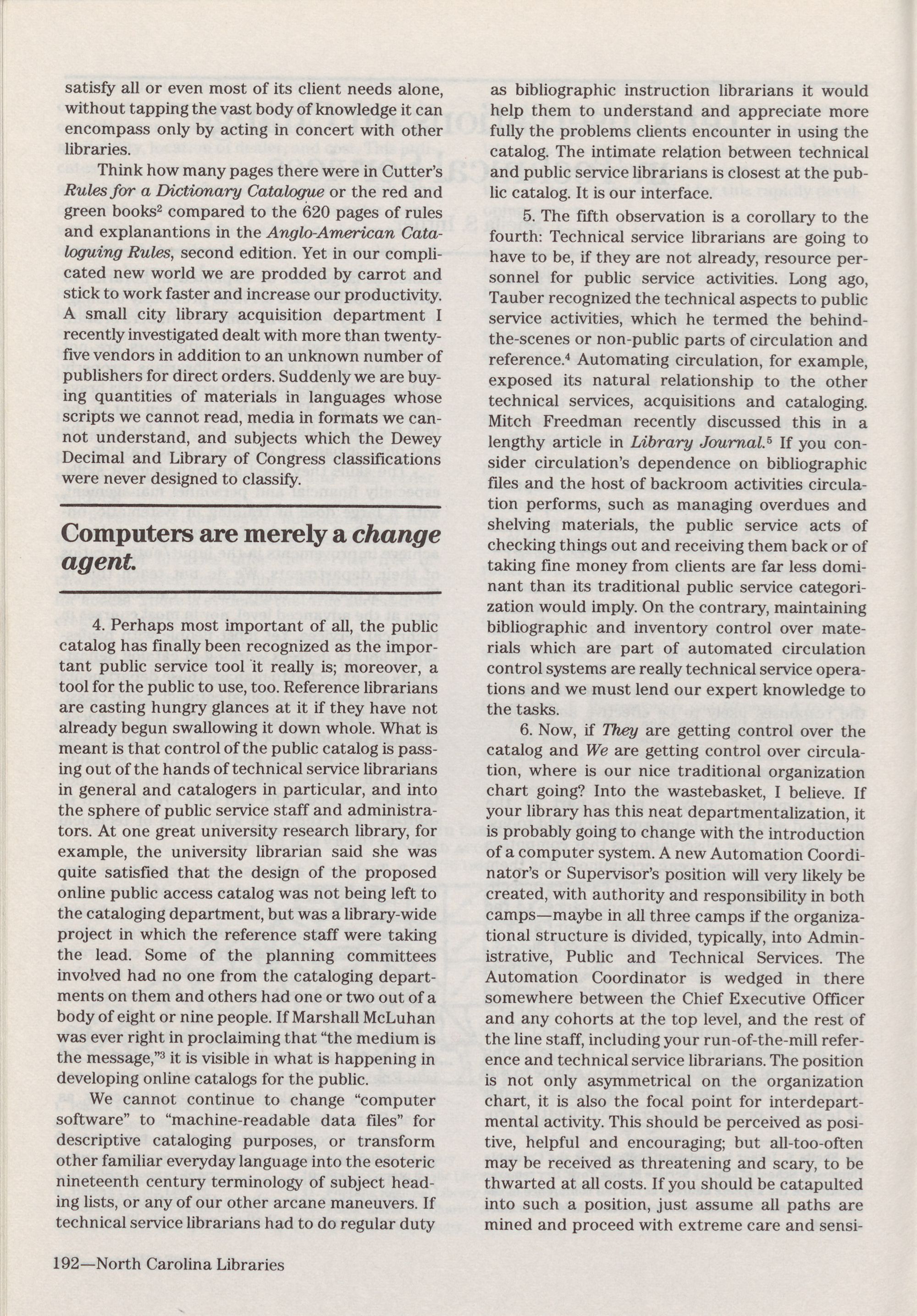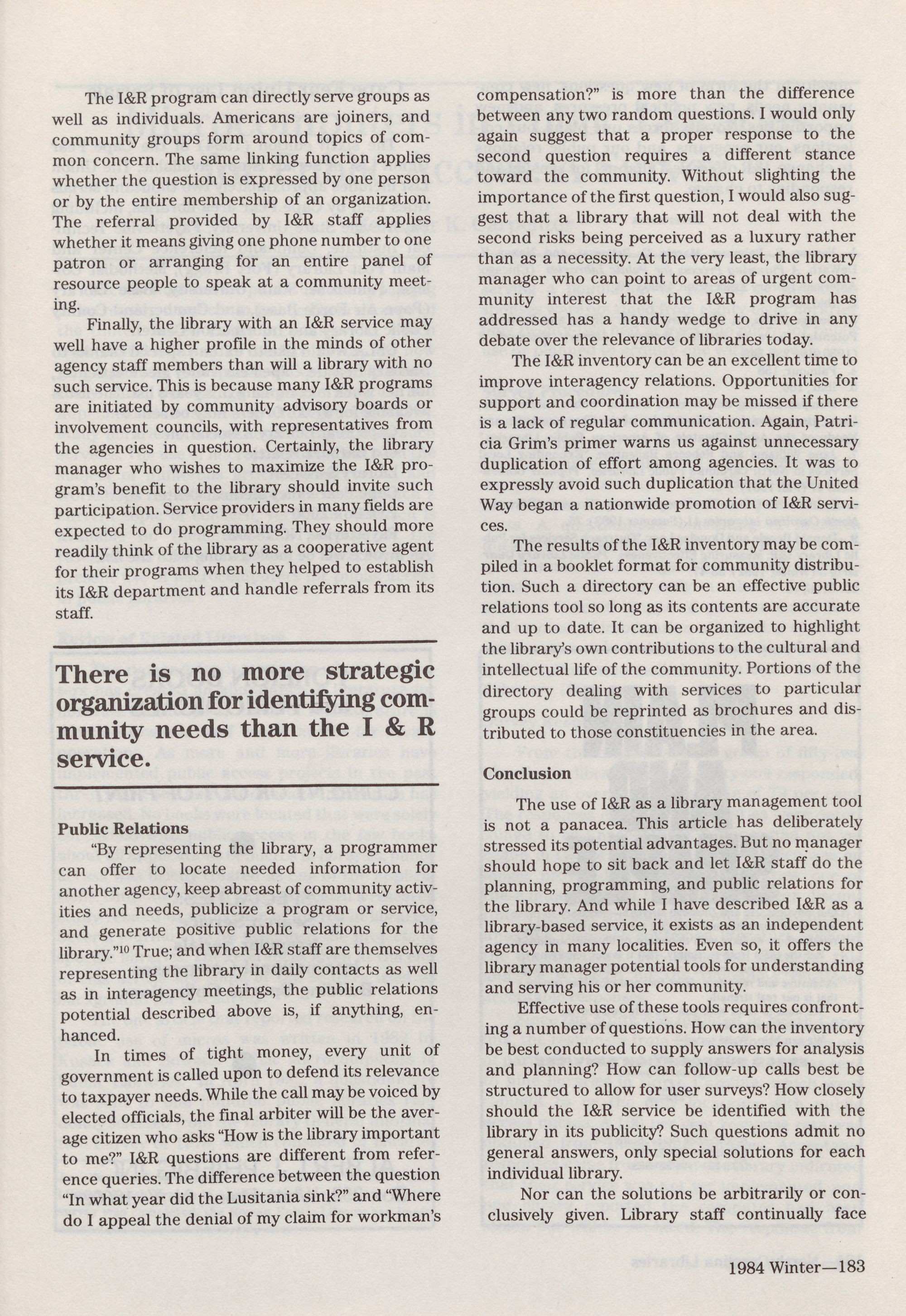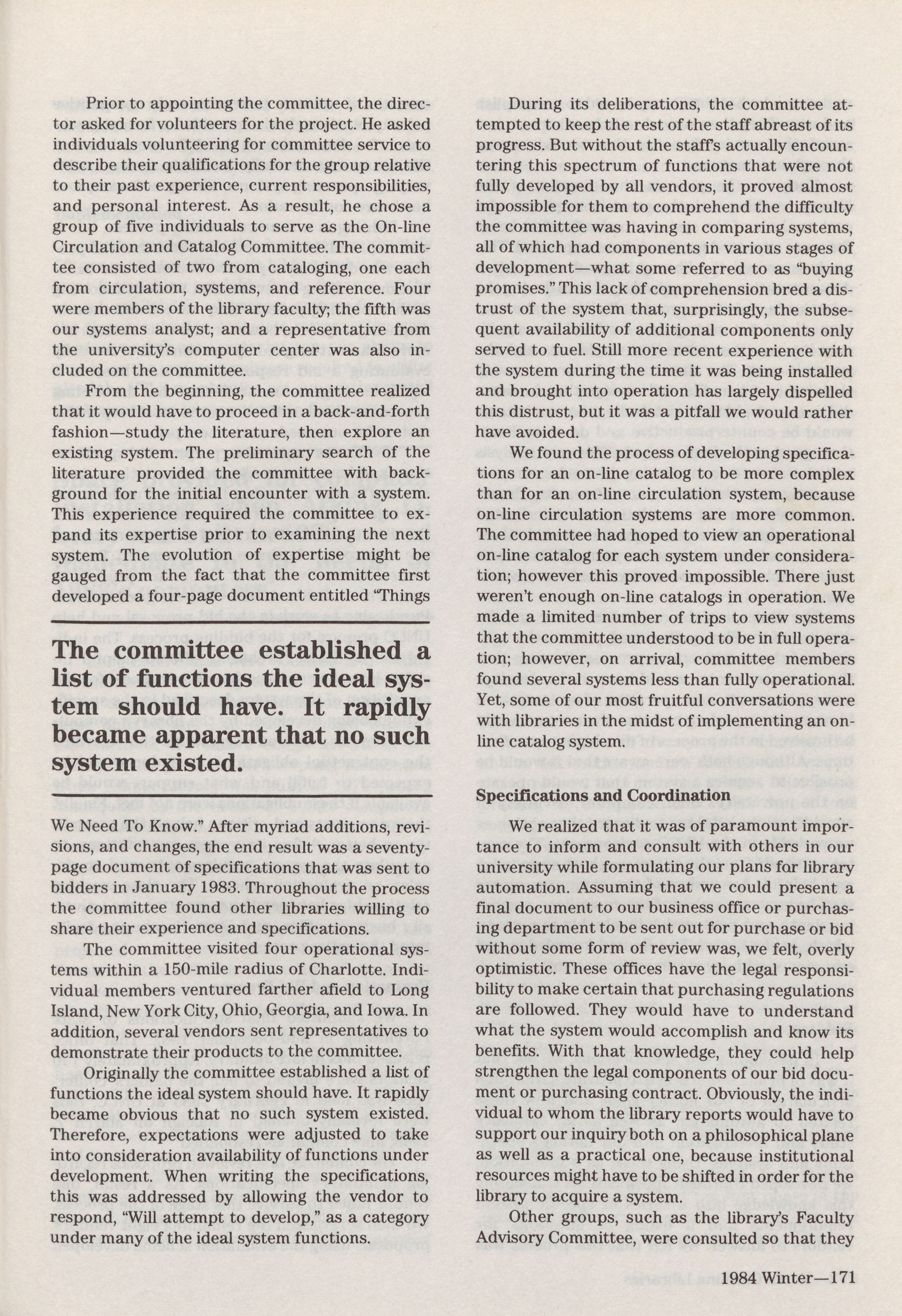 Services,� North Carolina Libraries 42 (Winter 1984): 191- p. 163; Ebsco, p. 184; Phiebig, p. 184; Reprint Company, p. 211;