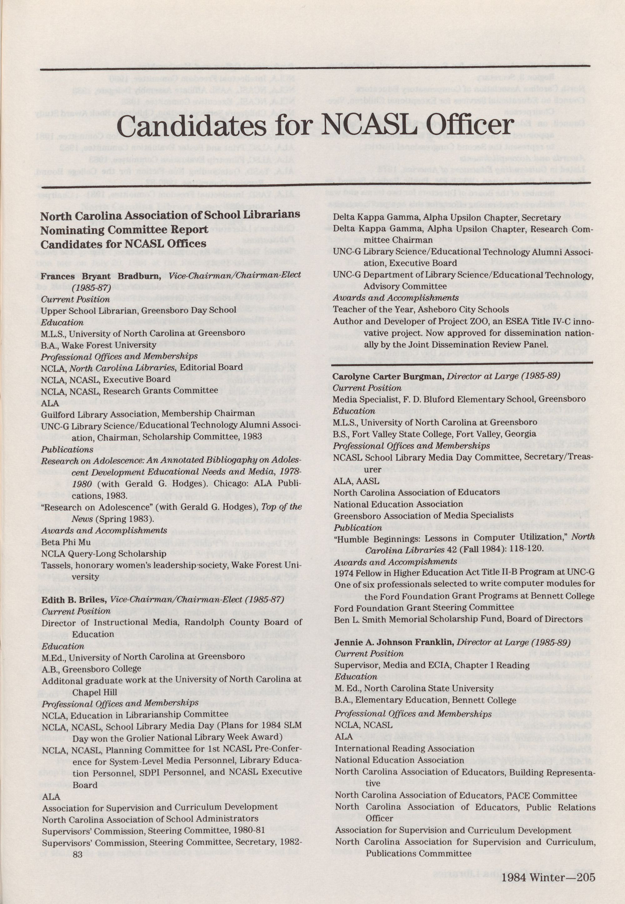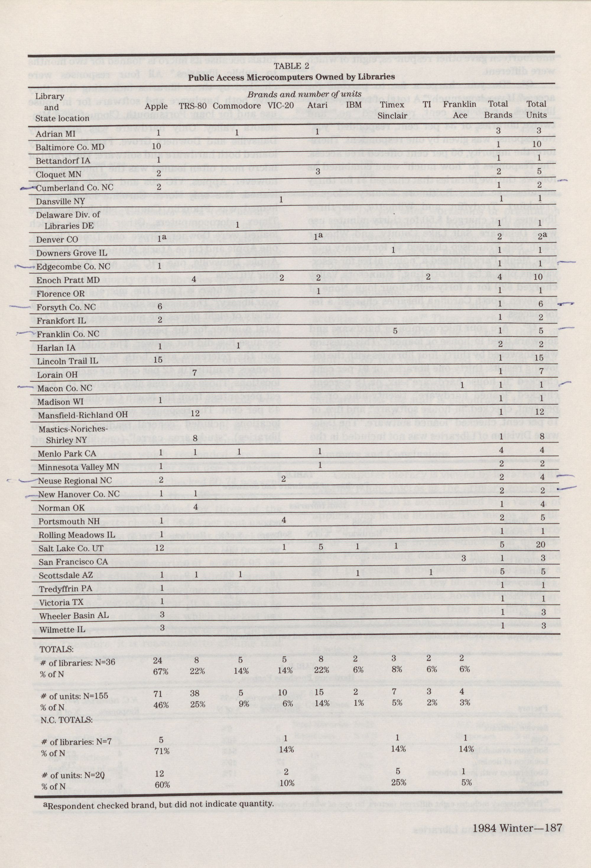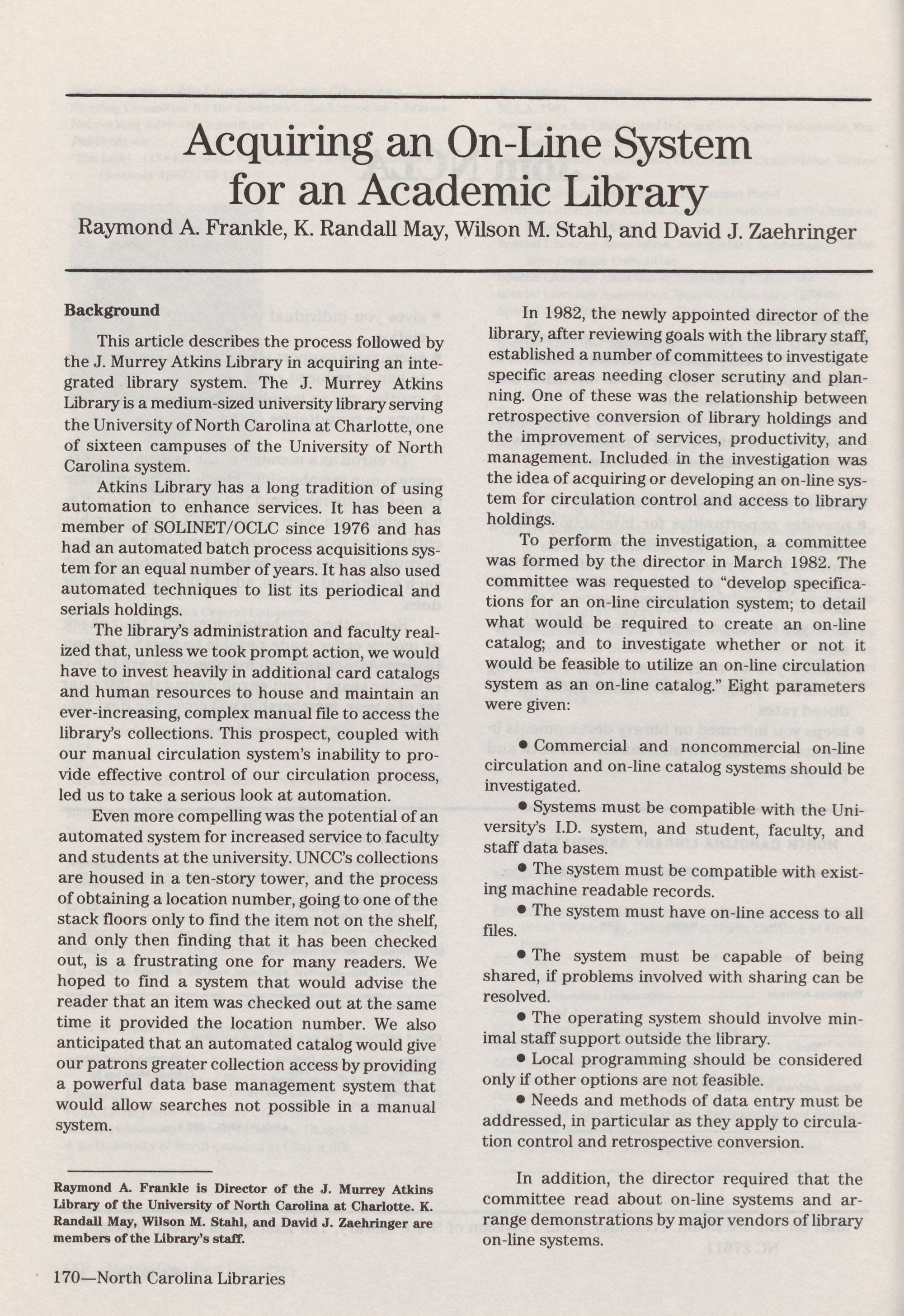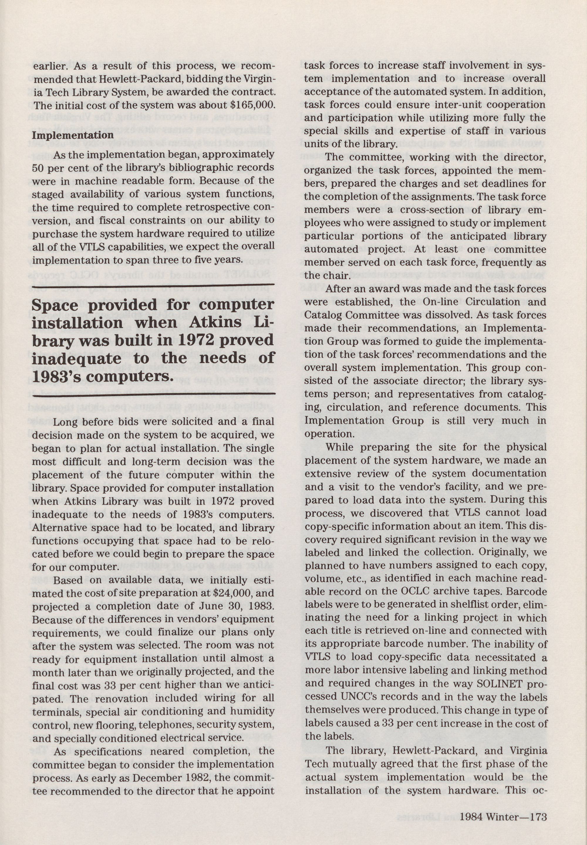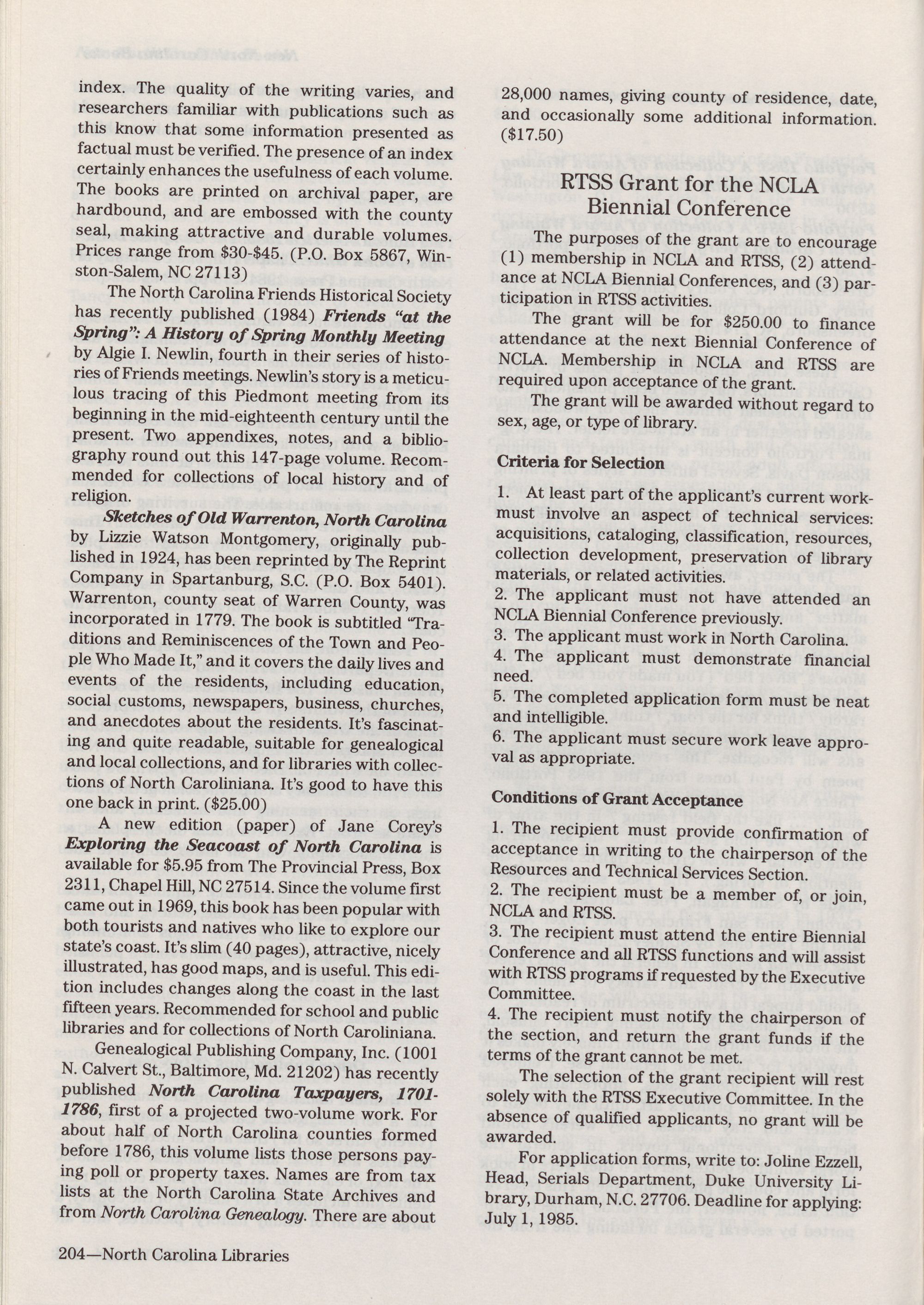 Services,� North Carolina Libraries 42 (Winter 1984): 191- p. 163; Ebsco, p. 184; Phiebig, p. 184; Reprint Company, p. 211;