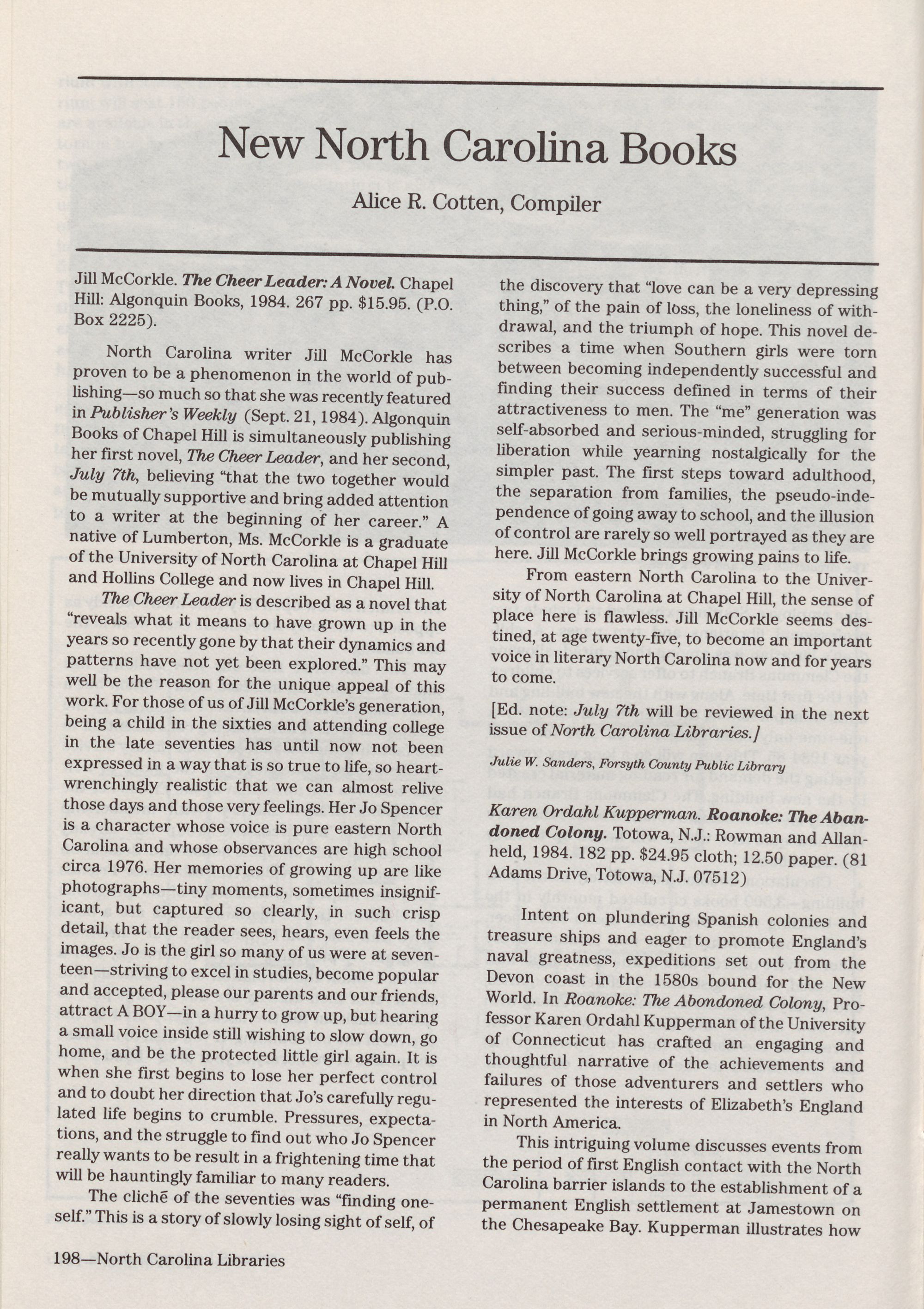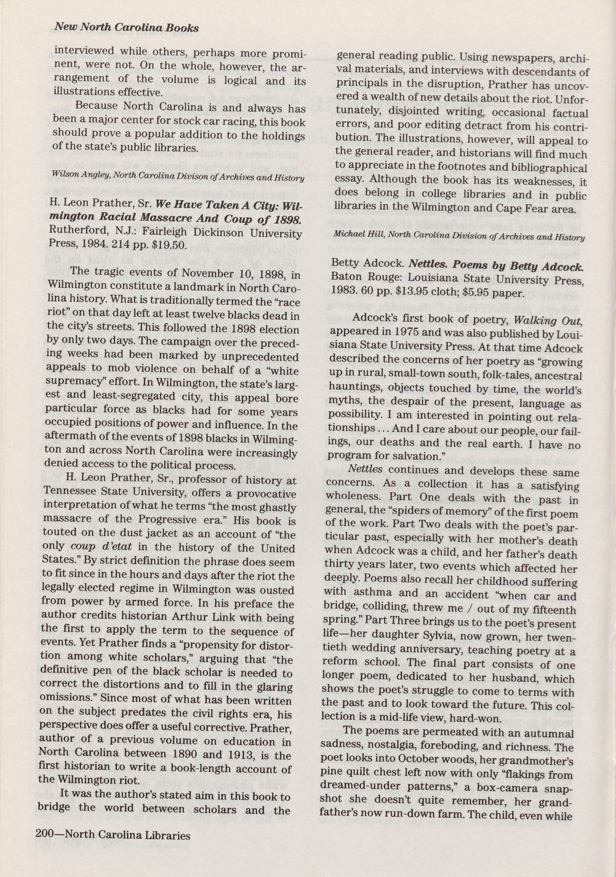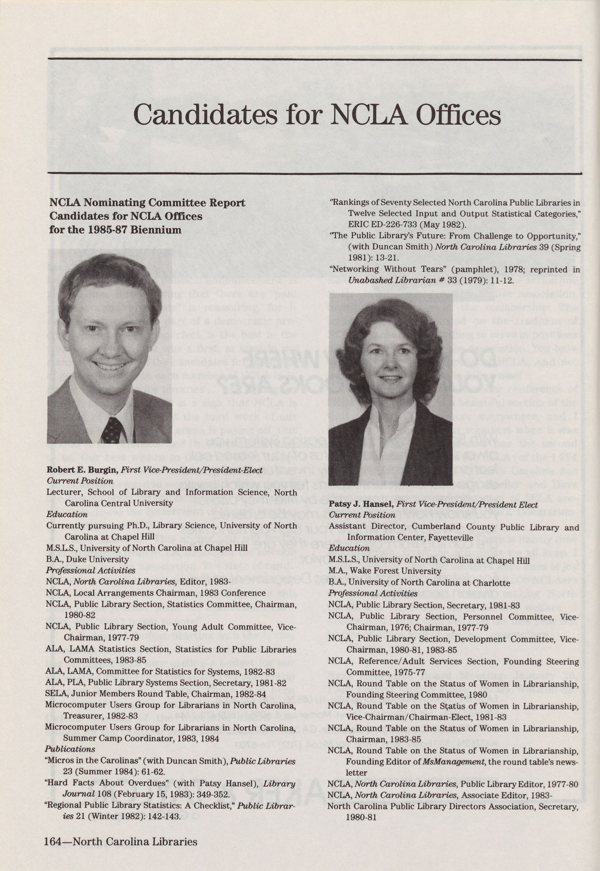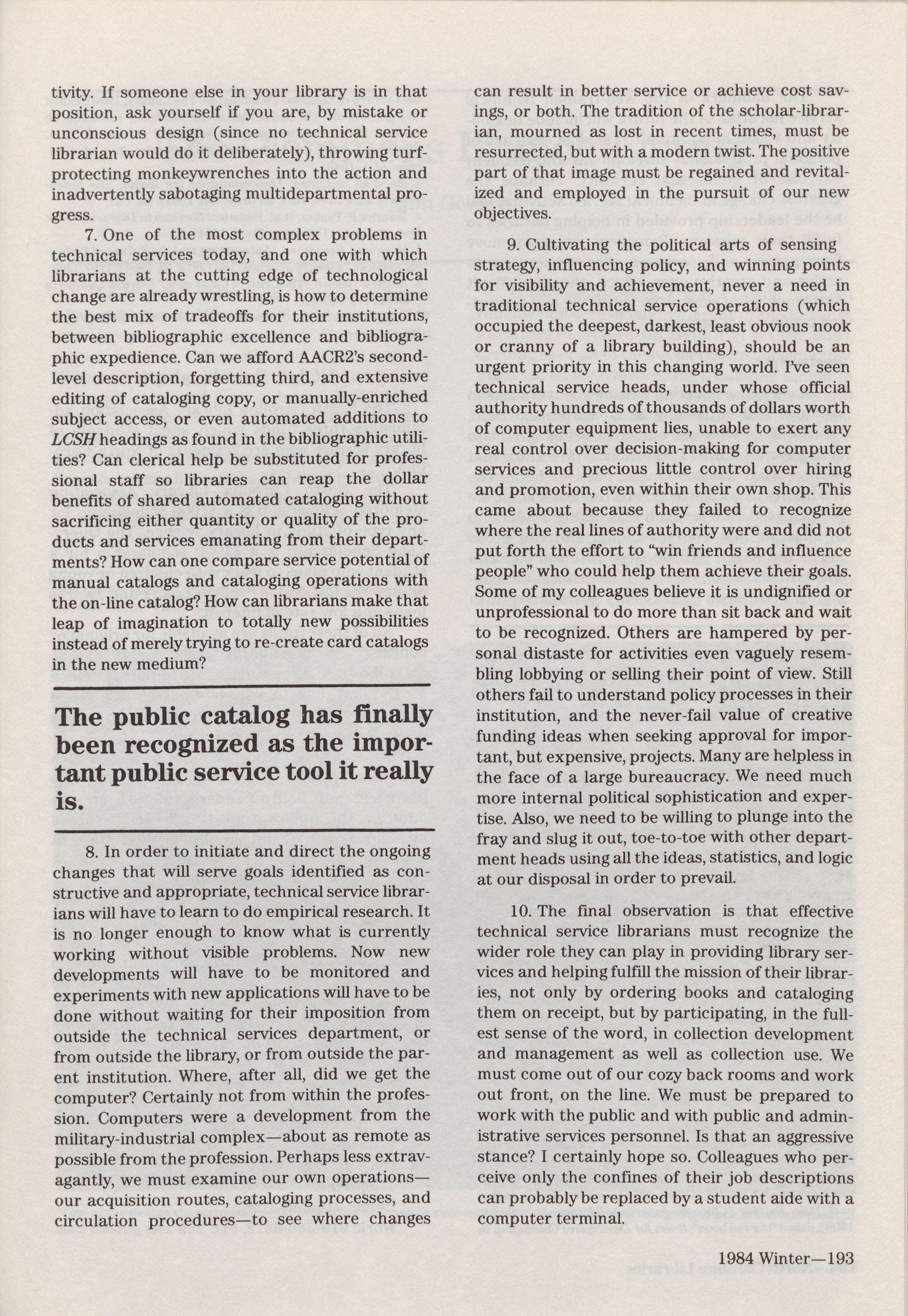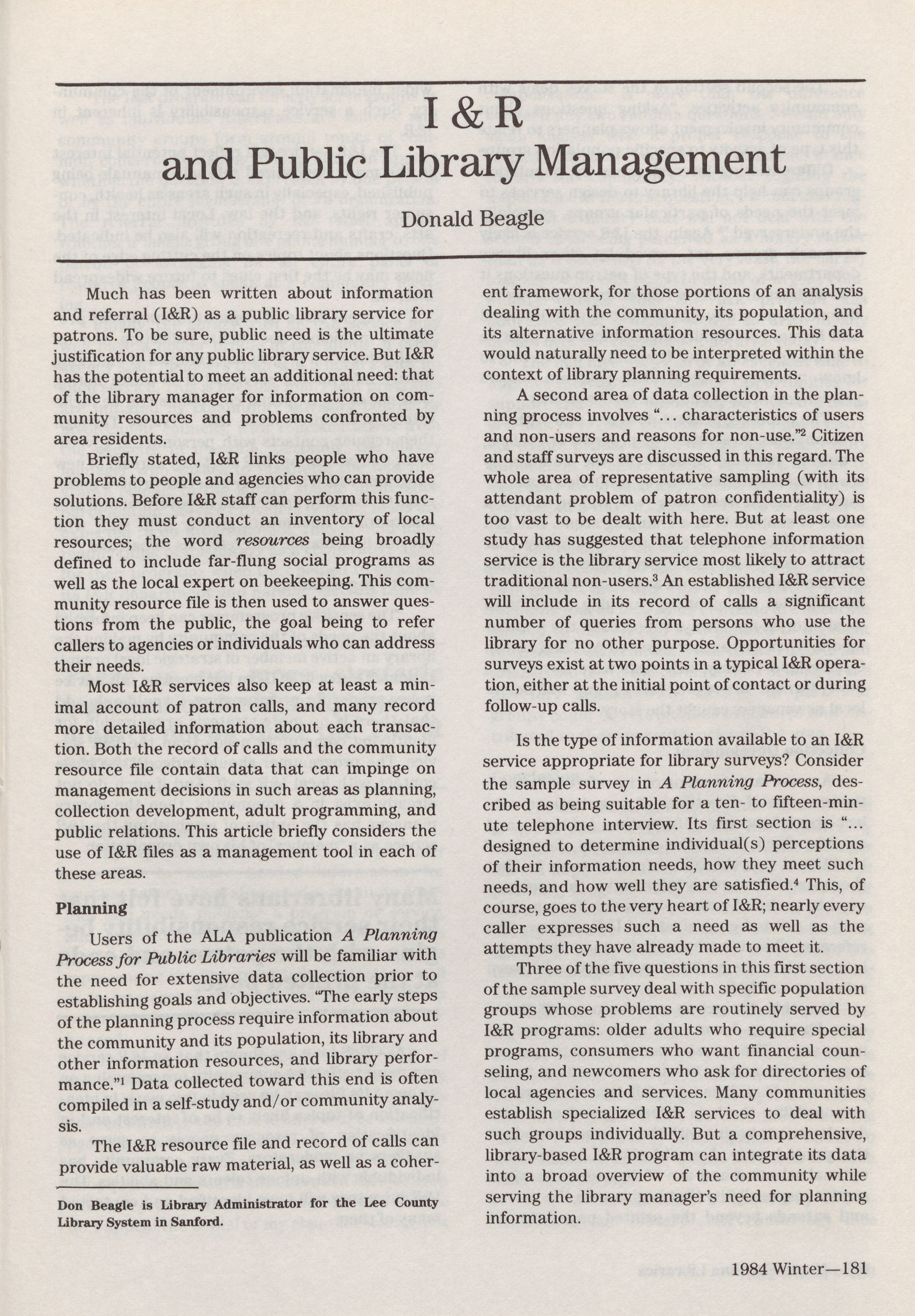 Services,� North Carolina Libraries 42 (Winter 1984): 191- p. 163; Ebsco, p. 184; Phiebig, p. 184; Reprint Company, p. 211;