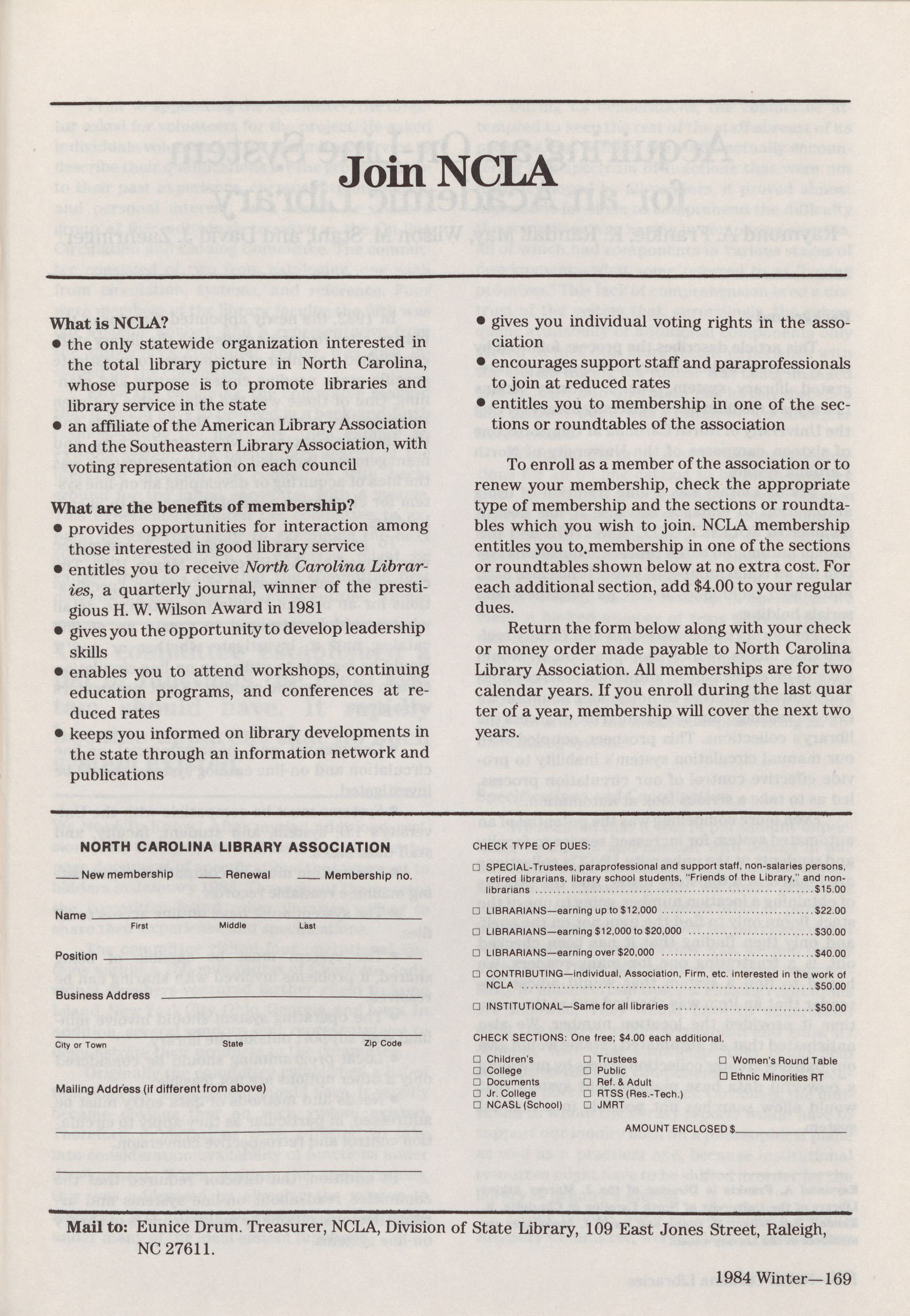 lina Library Association. Membership dues | include subscription to North Cee Libraries. Member-