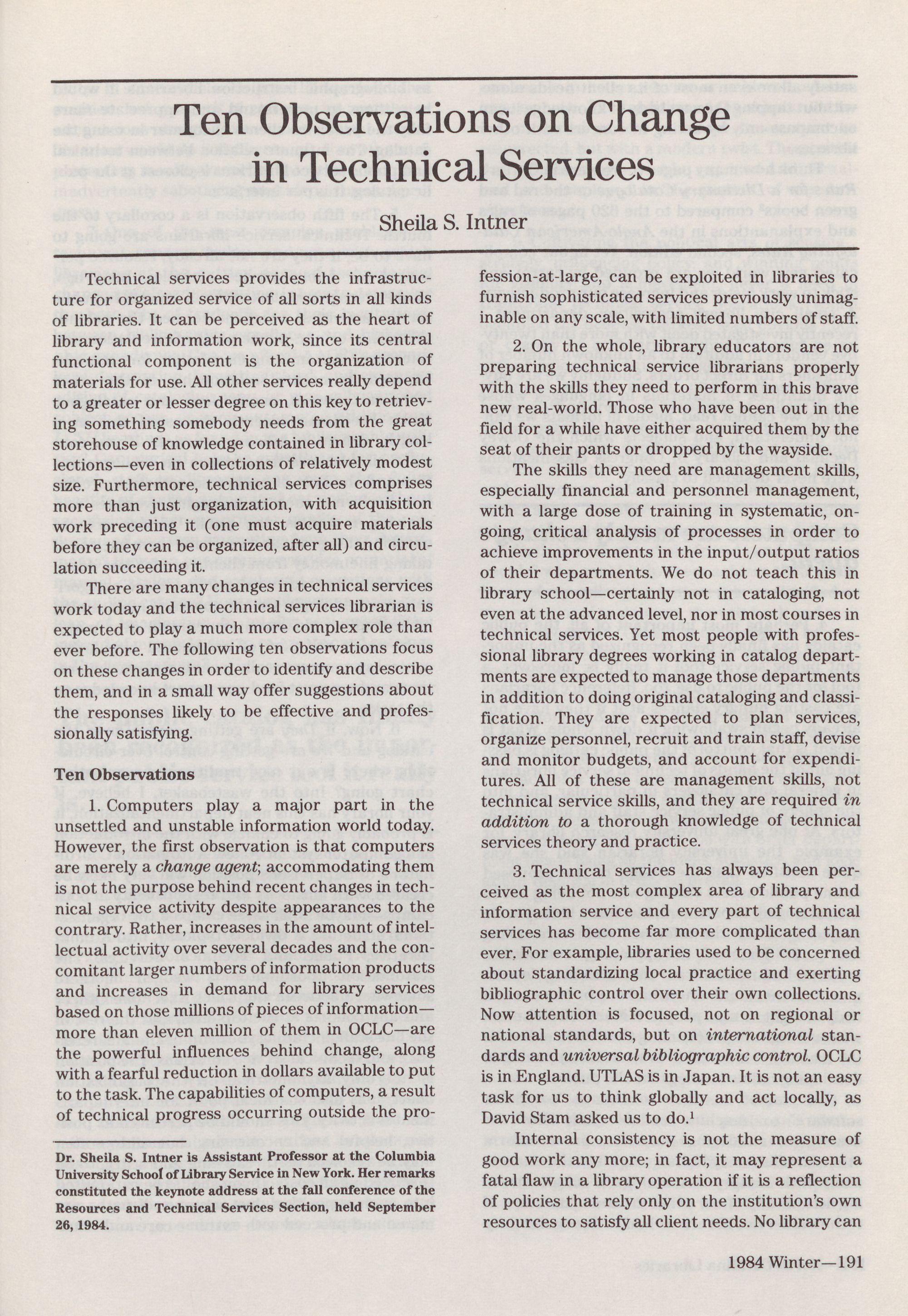 Cover: Sheila S. Inter, oTen Observations on Change in Technical Advertisers: Blackwell North America, Cover 2; Baker & Taylor,