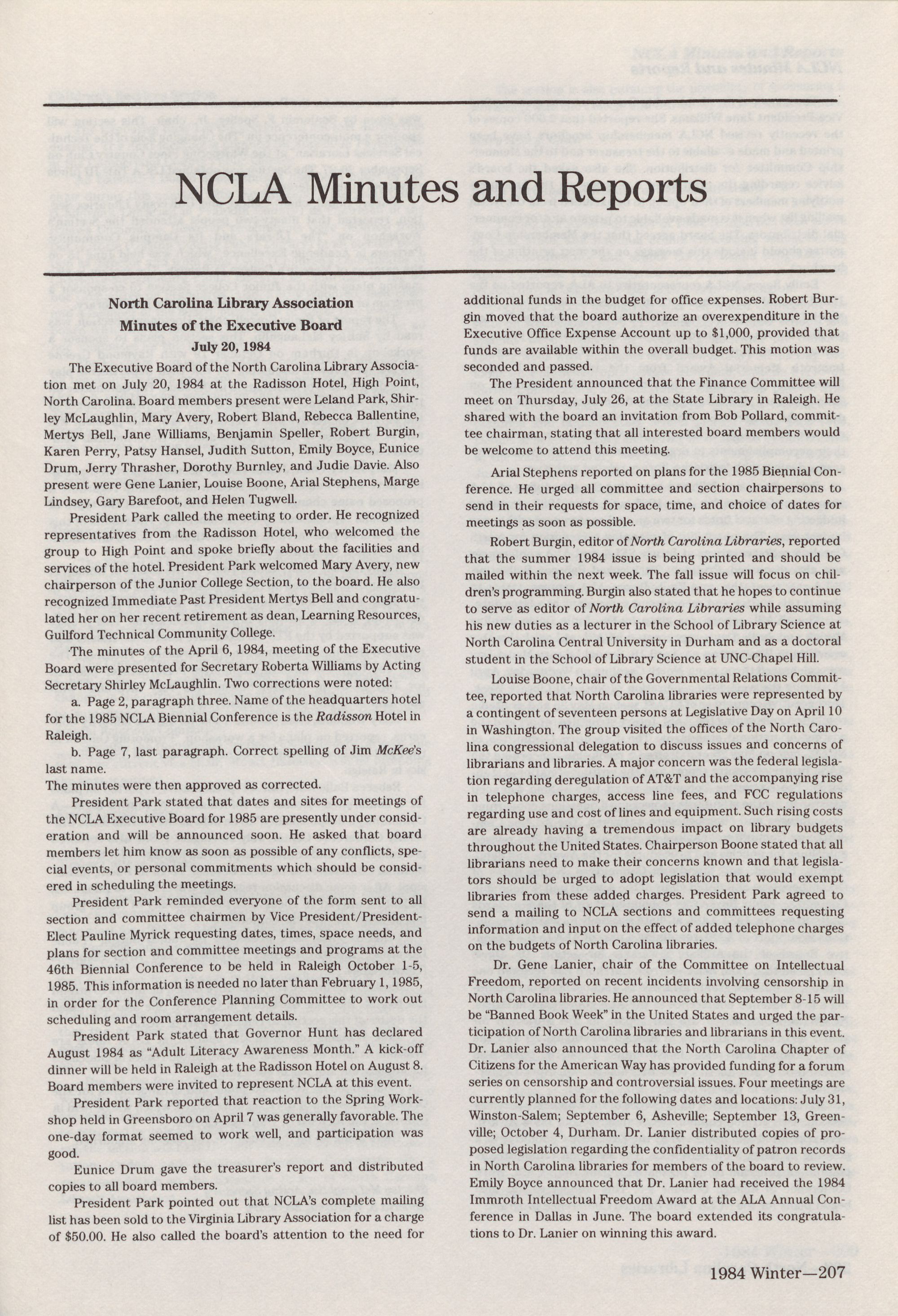 NORTH CAROLINA LIBRARY ASSOCIATION