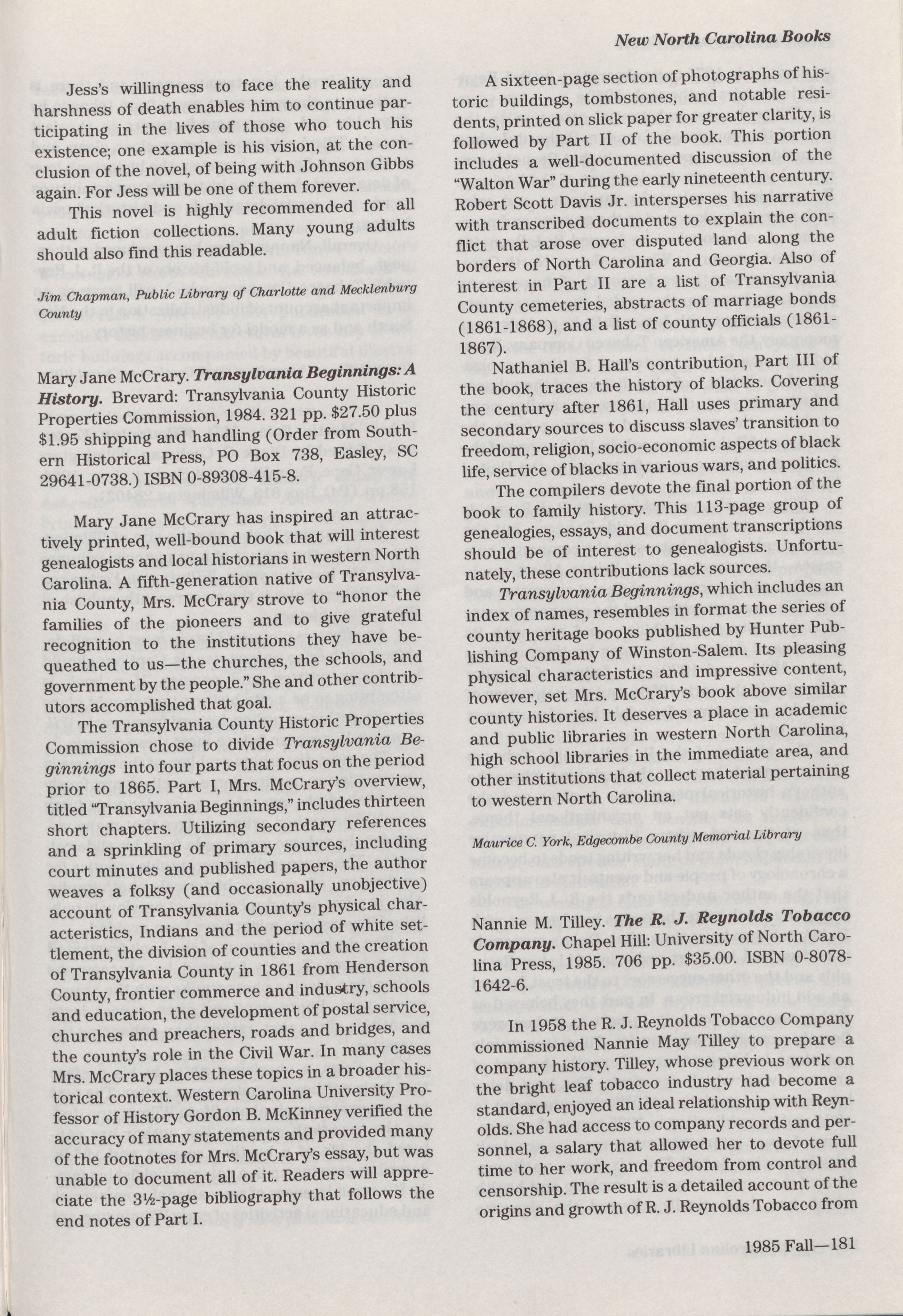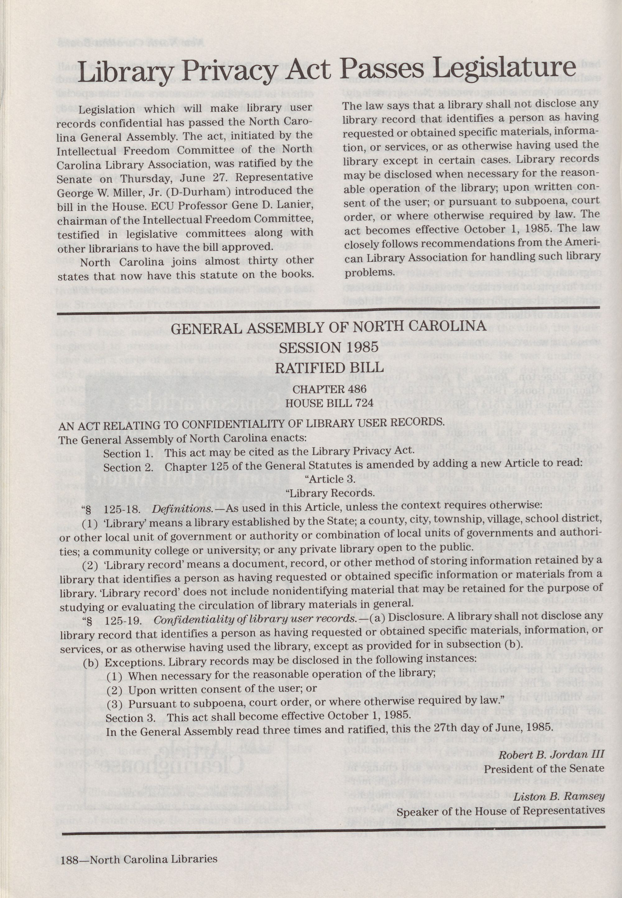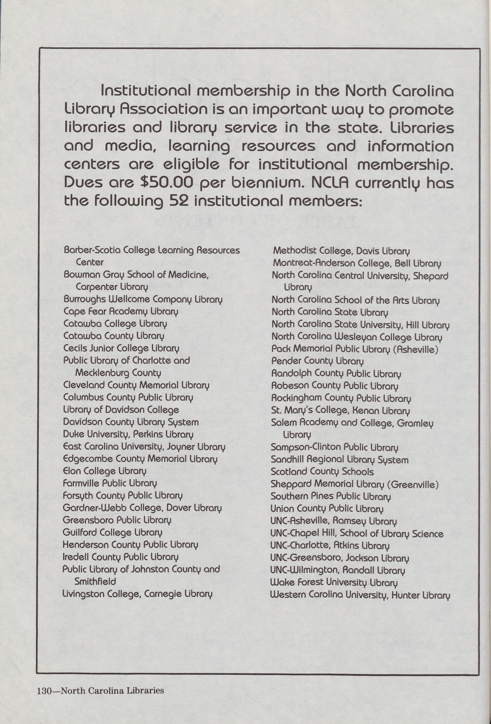 North Carolina Libraries. Member-