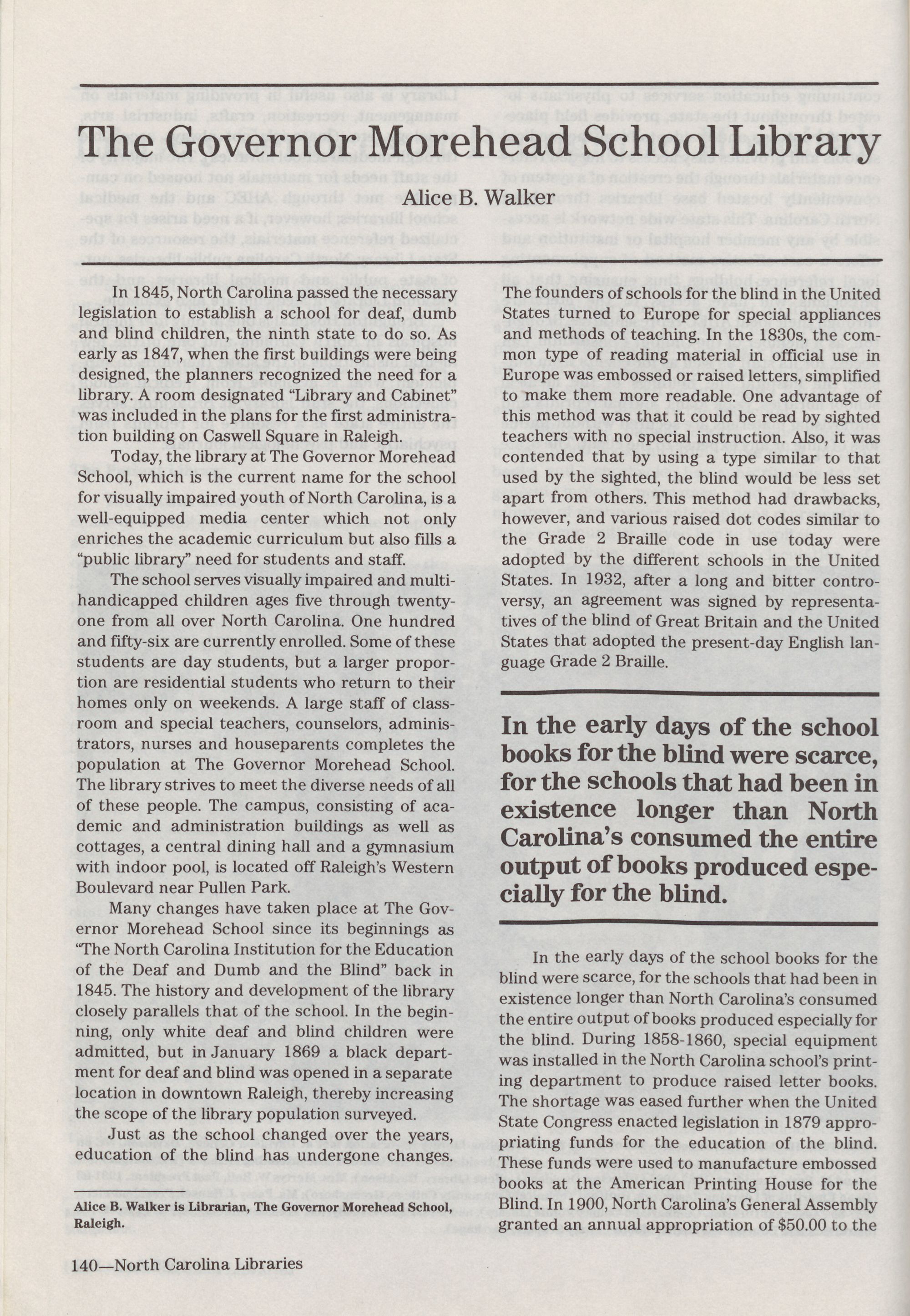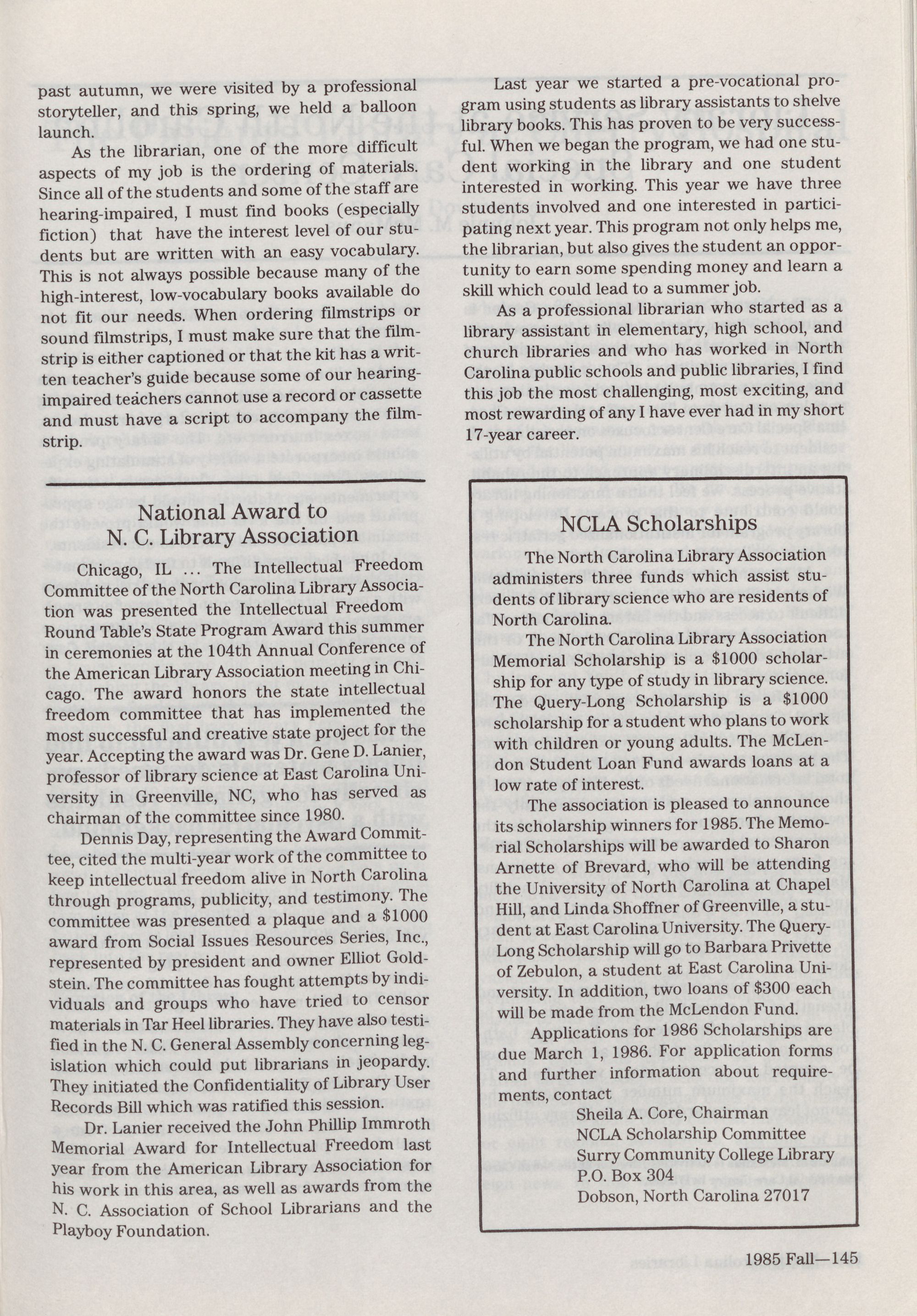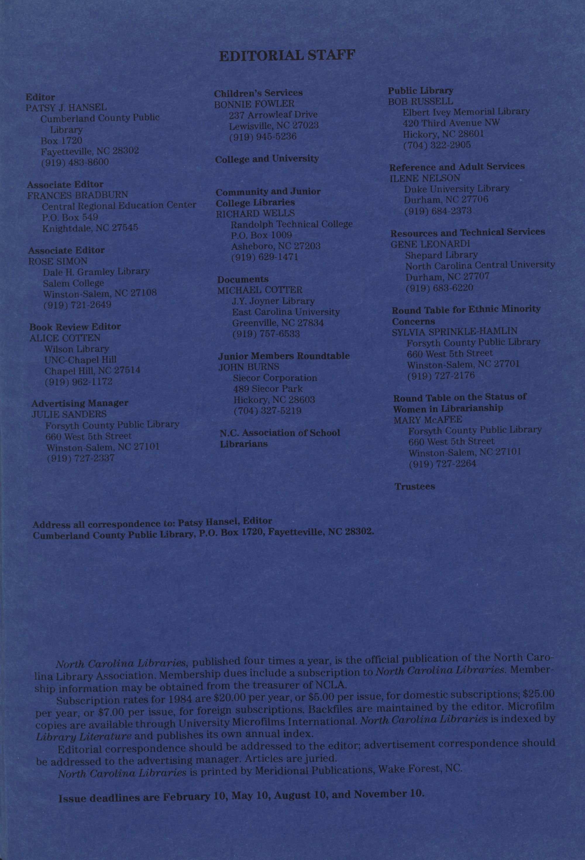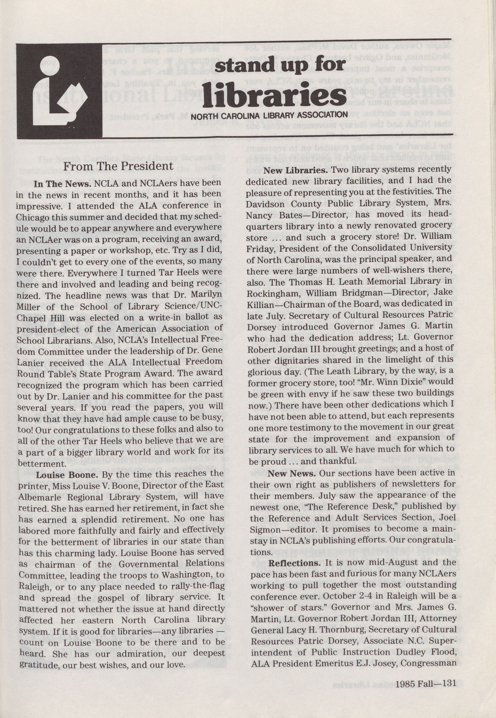 North Carolina Libraries, published four times a year, is the o